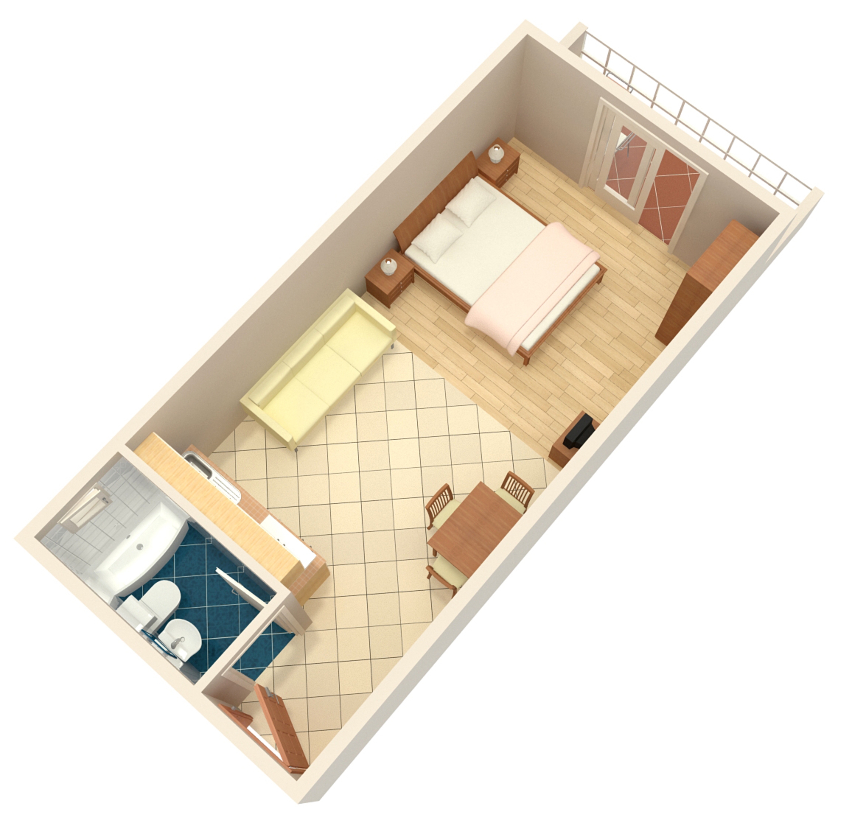Studio może przyjąć 2 gości. Łóżka znajdują się w sypialniach, których jest 1, na powierzchni 20m2. Goście mają dostęp do balkonu, by korzystać z ciepłych, letnich wieczorów. Z apartamentu typu studio roztacza się widok na morze. Możliwość przygotowywania posiłków poprzez korzystanie ze wspólnego grilla. WLICZONE W CENĘ: taksa pobytowa, sprzątanie końcowe, klimatyzacja, parking, internet, łóżeczko dziecięce, żelazko, deska do prasowania, suszarka do włosów, przenośny grill, 1 łóżeczko dziecięce (zawarte w cenie). OBOWIĄZKOWE KOSZTY DODATKOWE: dopłata za krótki termin (procent dopłaty w zalezności od liczby noclegów: 30% - 1, 20% - 2, 10% - 3). NIEOBOWIĄZKOWE KOSZTY DODATKOWE: pranie bielizny (5,00 € pranie). Dostępność dodatkowych usług w rezerwowanym terminie oraz ich cenę (jeśli nie jest podana) należy sprawdzić wcześniej. Za dodatowe usługi, które nie zostały uwzględnione w kalkulacji ceny, płaci się bezpośrednio właścicielowi obiektu, pod warunkiem śe gość korzysta z tych usług.