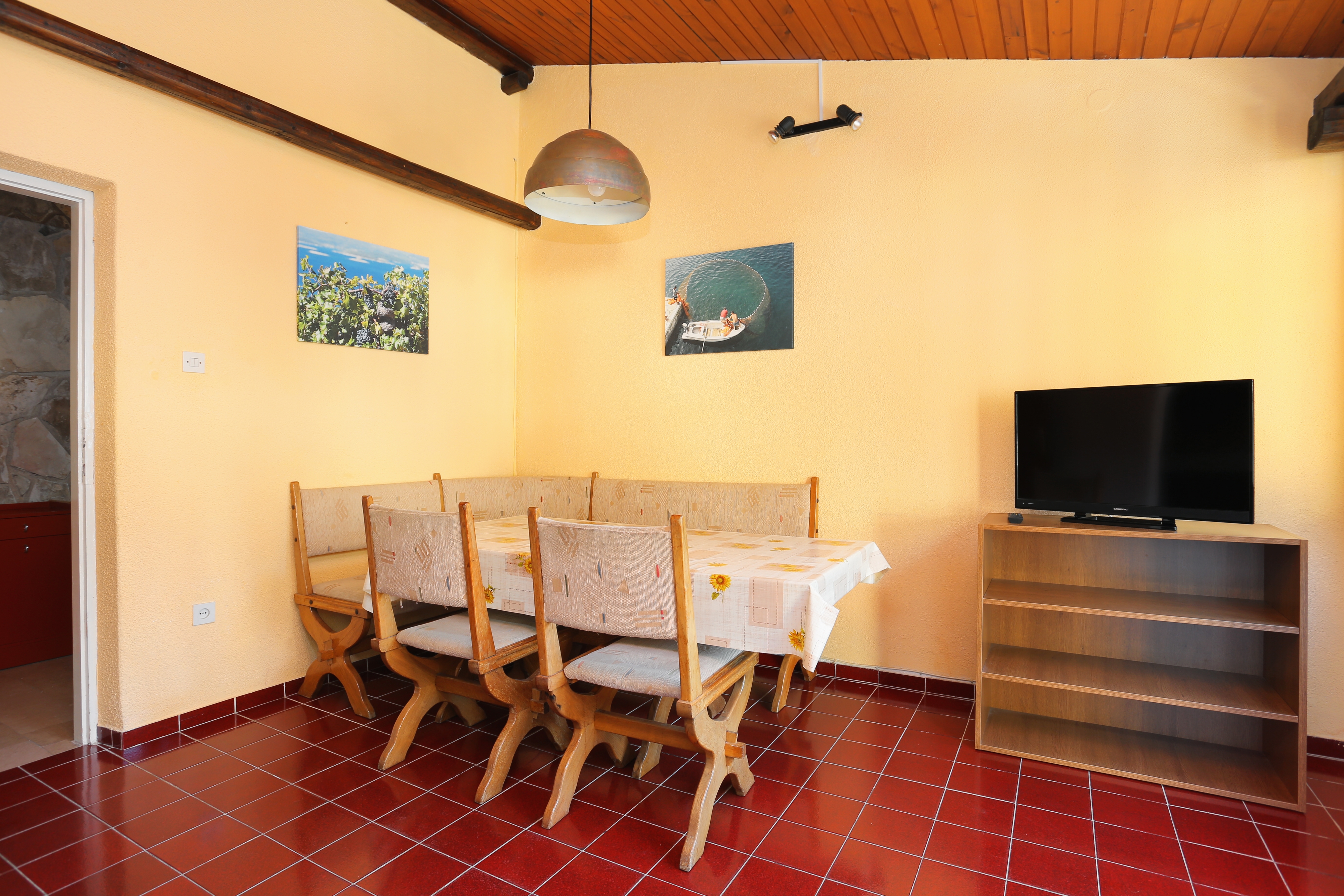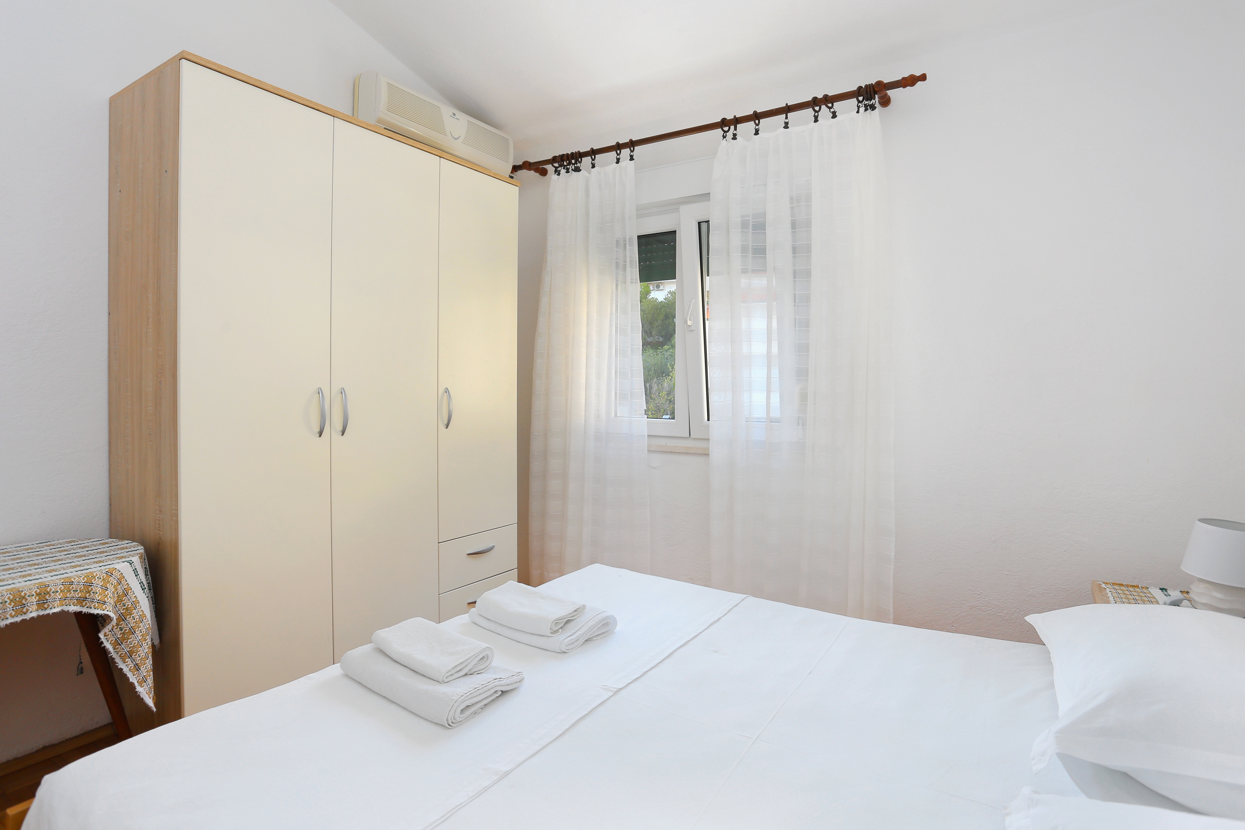 Apartament może przyjąć 9 gości. Łóżka znajdują się w sypialniach, których jest 3, na powierzchni 77m2. Goście mają dostęp do balkonu, by korzystać z ciepłych, letnich wieczorów. Z apartamentu roztacza się widok na morze. Możliwość przygotowywania posiłków poprzez korzystanie ze wspólnego grilla. WLICZONE W CENĘ: taksa pobytowa, sprzątanie końcowe, klimatyzacja, parking, internet, łóżeczko dziecięce. OBOWIĄZKOWE KOSZTY DODATKOWE: dopłata za krótki termin (procent dopłaty w zalezności od liczby noclegów: 30% - 1, 20% - 2, 10% - 3). NIEOBOWIĄZKOWE KOSZTY DODATKOWE: dostawka (8,00 € za nocleg). Dostępność dodatkowych usług w rezerwowanym terminie oraz ich cenę (jeśli nie jest podana) należy sprawdzić wcześniej. Za dodatowe usługi, które nie zostały uwzględnione w kalkulacji ceny, płaci się bezpośrednio właścicielowi obiektu, pod warunkiem śe gość korzysta z tych usług.
