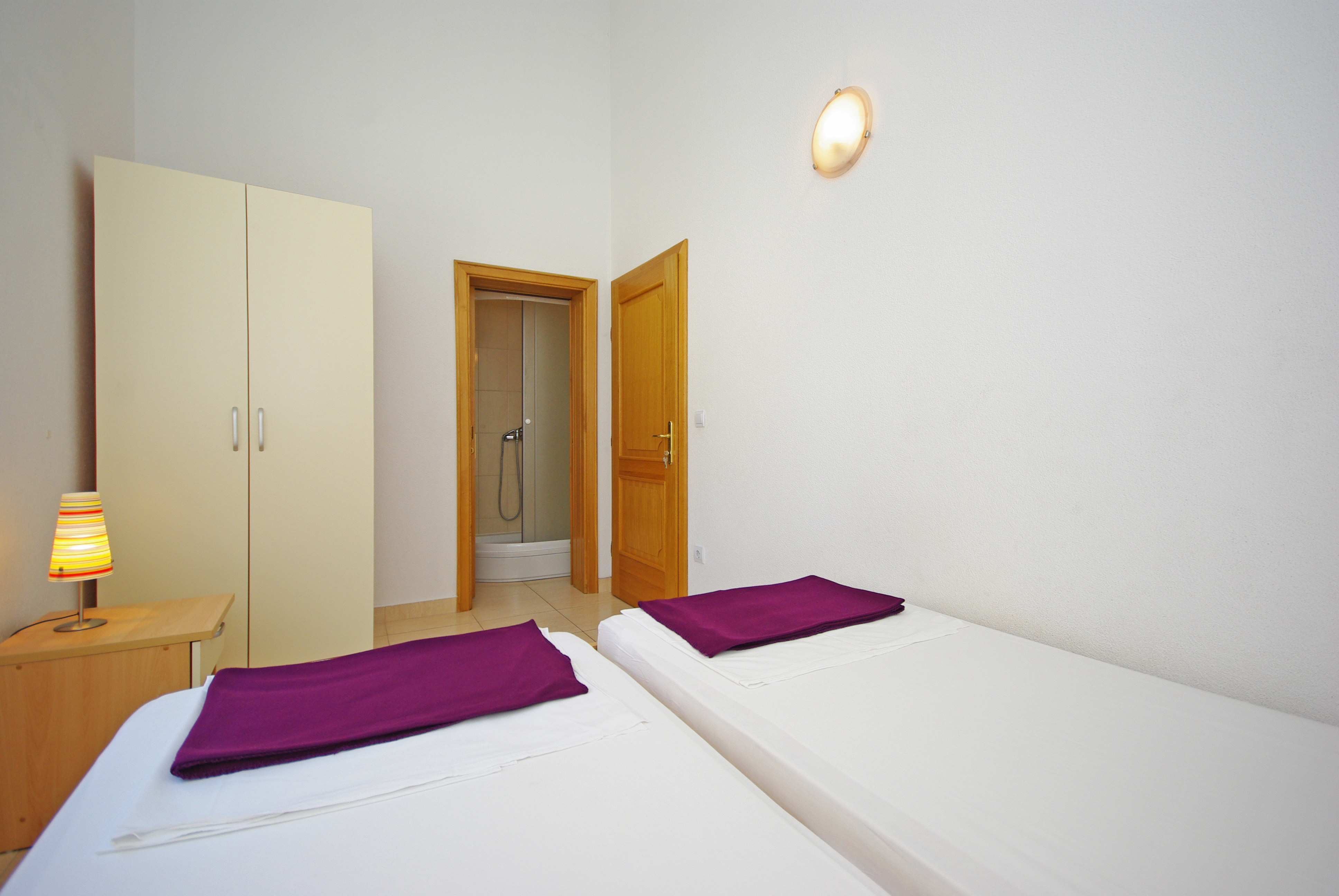 Apartament może przyjąć 5 gości. Łóżka znajdują się w sypialniach, których jest 3, na powierzchni 60m2. Goście mają dostęp do balkonu, by korzystać z ciepłych, letnich wieczorów. Z apartamentu roztacza się widok na morze. Możliwość przygotowywania posiłków poprzez korzystanie ze wspólnego grilla. WLICZONE W CENĘ: taksa pobytowa, sprzątanie końcowe, klimatyzacja, parking, internet, żelazko, deska do prasowania. Dostępność dodatkowych usług w rezerwowanym terminie oraz ich cenę (jeśli nie jest podana) należy sprawdzić wcześniej. Za dodatowe usługi, które nie zostały uwzględnione w kalkulacji ceny, płaci się bezpośrednio właścicielowi obiektu, pod warunkiem śe gość korzysta z tych usług.