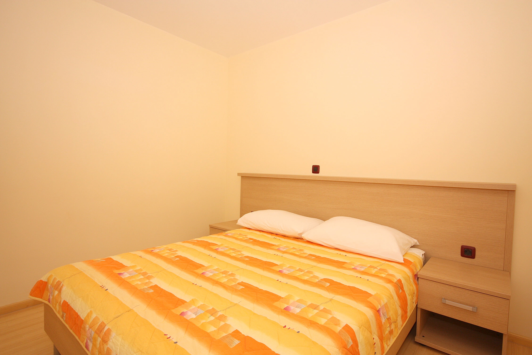 Apartament może przyjąć 5 gości. Łóżka znajdują się w sypialniach, których jest 2, oraz w pokoju dziennym, na powierzchni 52m2. Goście mają dostęp do balkonu, by korzystać z ciepłych, letnich wieczorów. Z apartamentu roztacza się widok na morze. WLICZONE W CENĘ: taksa pobytowa, sprzątanie końcowe, klimatyzacja, parking, garaż, internet, żelazko, deska do prasowania, suszarka do włosów. NIEOBOWIĄZKOWE KOSZTY DODATKOWE: pranie bielizny (10,00 € pranie). Dostępność dodatkowych usług w rezerwowanym terminie oraz ich cenę (jeśli nie jest podana) należy sprawdzić wcześniej. Za dodatowe usługi, które nie zostały uwzględnione w kalkulacji ceny, płaci się bezpośrednio właścicielowi obiektu, pod warunkiem śe gość korzysta z tych usług.