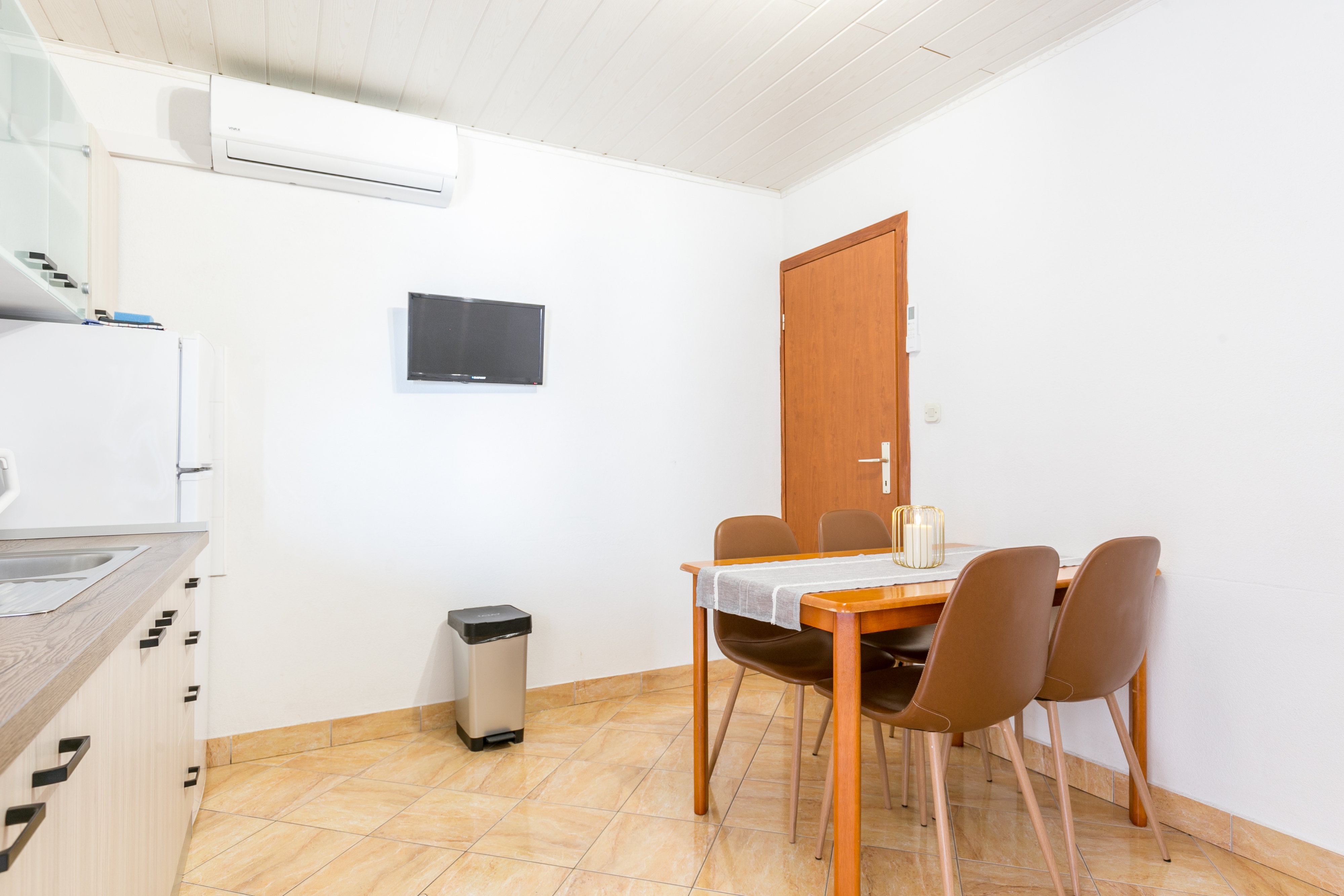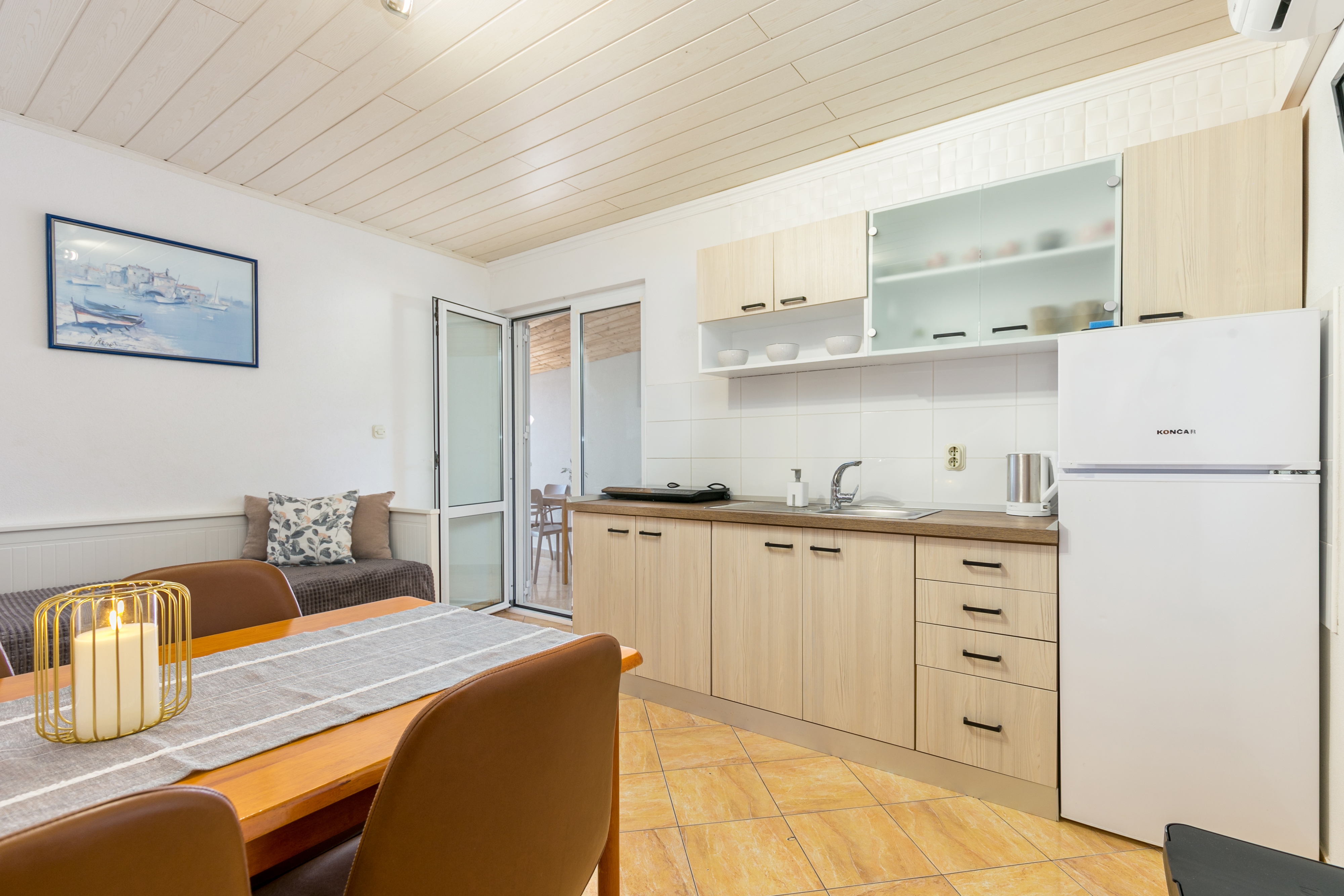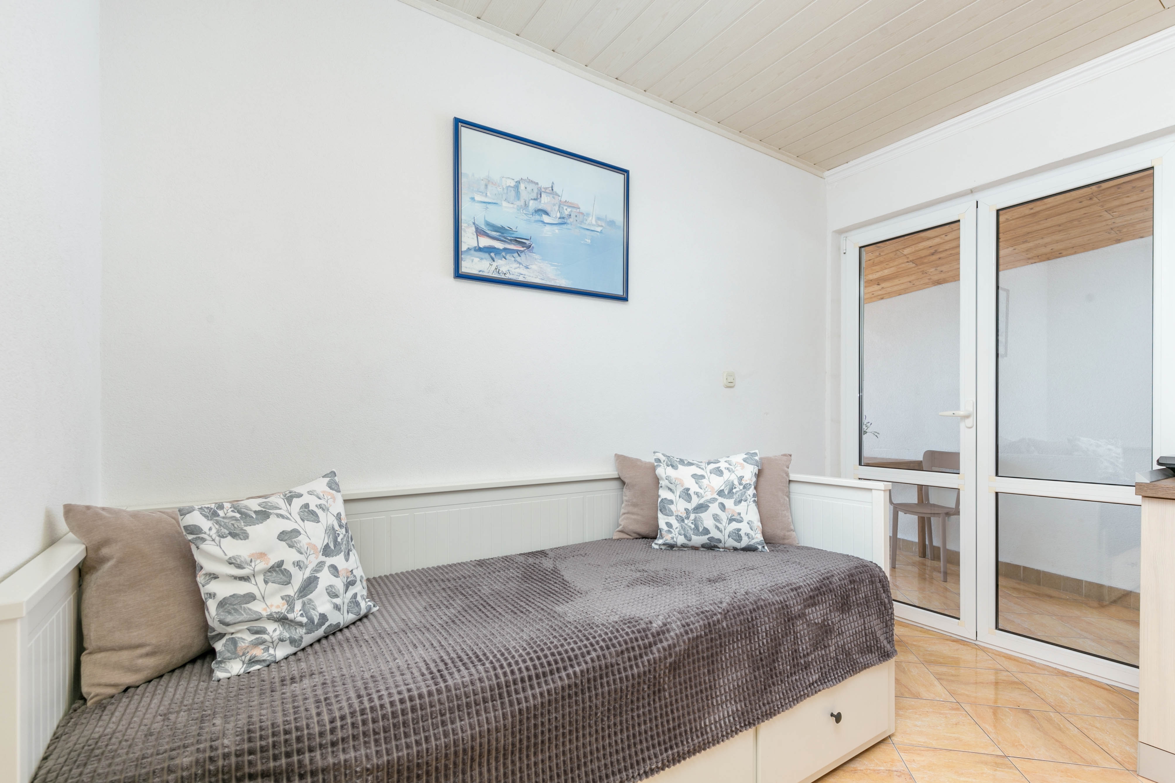Apartament może przyjąć 4 gości. Łóżka znajdują się w sypialniach, których jest 1, oraz w jadalni, na powierzchni 27m2. Goście mają dostęp do tarasu, by korzystać z ciepłych, letnich wieczorów. Z apartamentu roztacza się widok na morze. Możliwość przygotowywania posiłków poprzez korzystanie ze wspólnego grilla. WLICZONE W CENĘ: taksa pobytowa, sprzątanie końcowe, klimatyzacja, parking, internet, pranie bielizny, łóżeczko dziecięce, żelazko, deska do prasowania. OBOWIĄZKOWE KOSZTY DODATKOWE: dopłata za krótki termin (procent dopłaty w zalezności od liczby noclegów: 30% - 1, 20% - 2, 10% - 3). Dostępność dodatkowych usług w rezerwowanym terminie oraz ich cenę (jeśli nie jest podana) należy sprawdzić wcześniej. Za dodatowe usługi, które nie zostały uwzględnione w kalkulacji ceny, płaci się bezpośrednio właścicielowi obiektu, pod warunkiem śe gość korzysta z tych usług. Zniżki od ceny podstawowej: bezpłatny dzień 14=13 (przy pobycie, trwającym co najmniej 14 dni, otrzymujecie jeden bezpłatny dzień na pobyt do 31.12.2026).