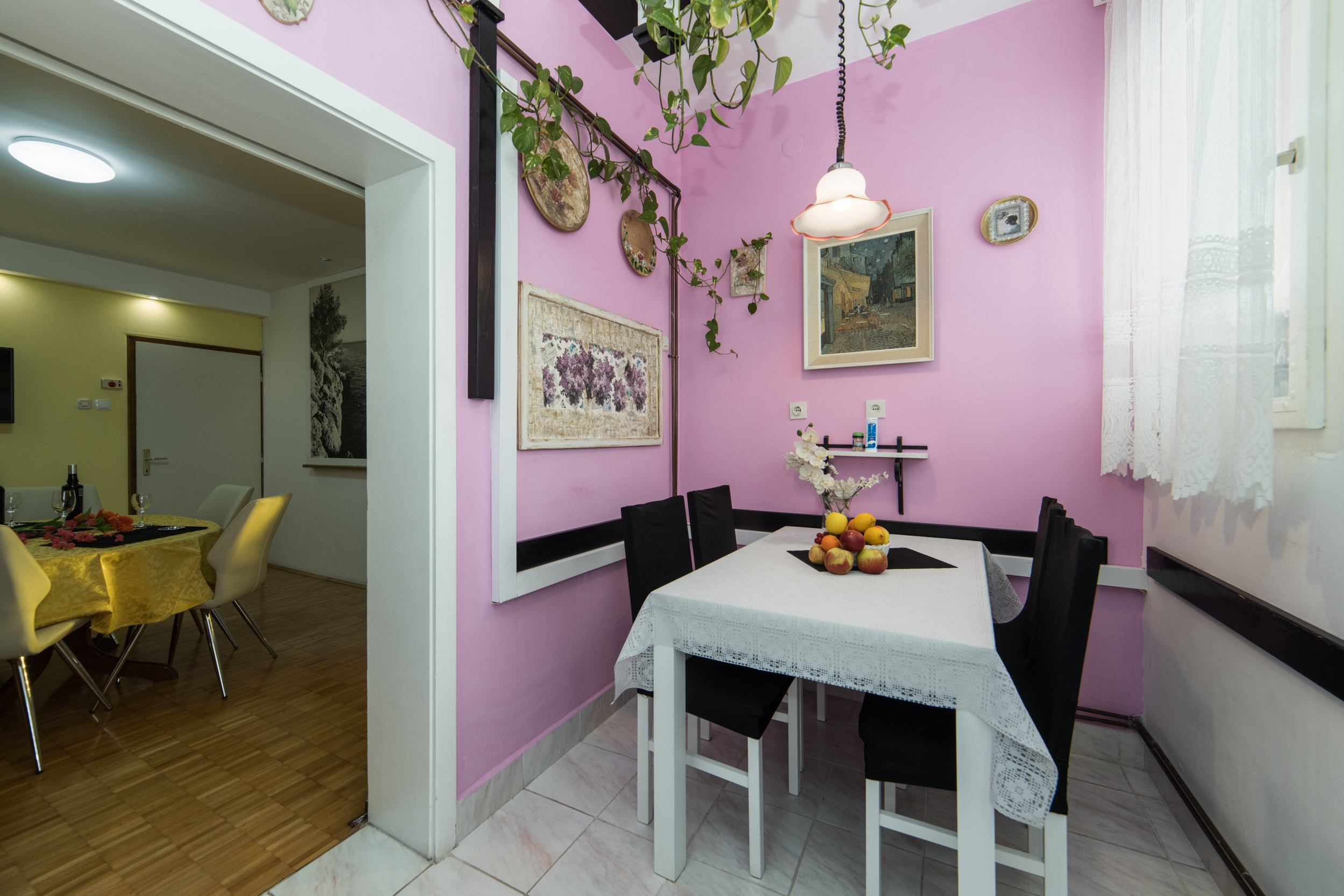 Apartament może przyjąć 6 gości. Łóżka znajdują się w sypialniach, których jest 2, oraz w pokoju dziennym, na powierzchni 93m2. Goście mają dostęp do balkonu, by korzystać z ciepłych, letnich wieczorów. Z apartamentu roztacza się widok na morze. Możliwość przygotowywania posiłków poprzez korzystanie ze wspólnego grilla. W kwaterze dozwolony jest pobyt zwierzęcia domowego, za dopłatą. WLICZONE W CENĘ: taksa pobytowa, sprzątanie końcowe, klimatyzacja, parking, internet, łóżeczko dziecięce, żelazko, deska do prasowania, suszarka do włosów, przenośny grill. OBOWIĄZKOWE KOSZTY DODATKOWE: dopłata za krótki termin (procent dopłaty w zalezności od liczby noclegów: 30% - 1, 20% - 2, 10% - 3). NIEOBOWIĄZKOWE KOSZTY DODATKOWE: zwierzęta domowe (5,00 € za nocleg), dostawka (15,00 € za nocleg). Dostępność dodatkowych usług w rezerwowanym terminie oraz ich cenę (jeśli nie jest podana) należy sprawdzić wcześniej. Za dodatowe usługi, które nie zostały uwzględnione w kalkulacji ceny, płaci się bezpośrednio właścicielowi obiektu, pod warunkiem śe gość korzysta z tych usług.