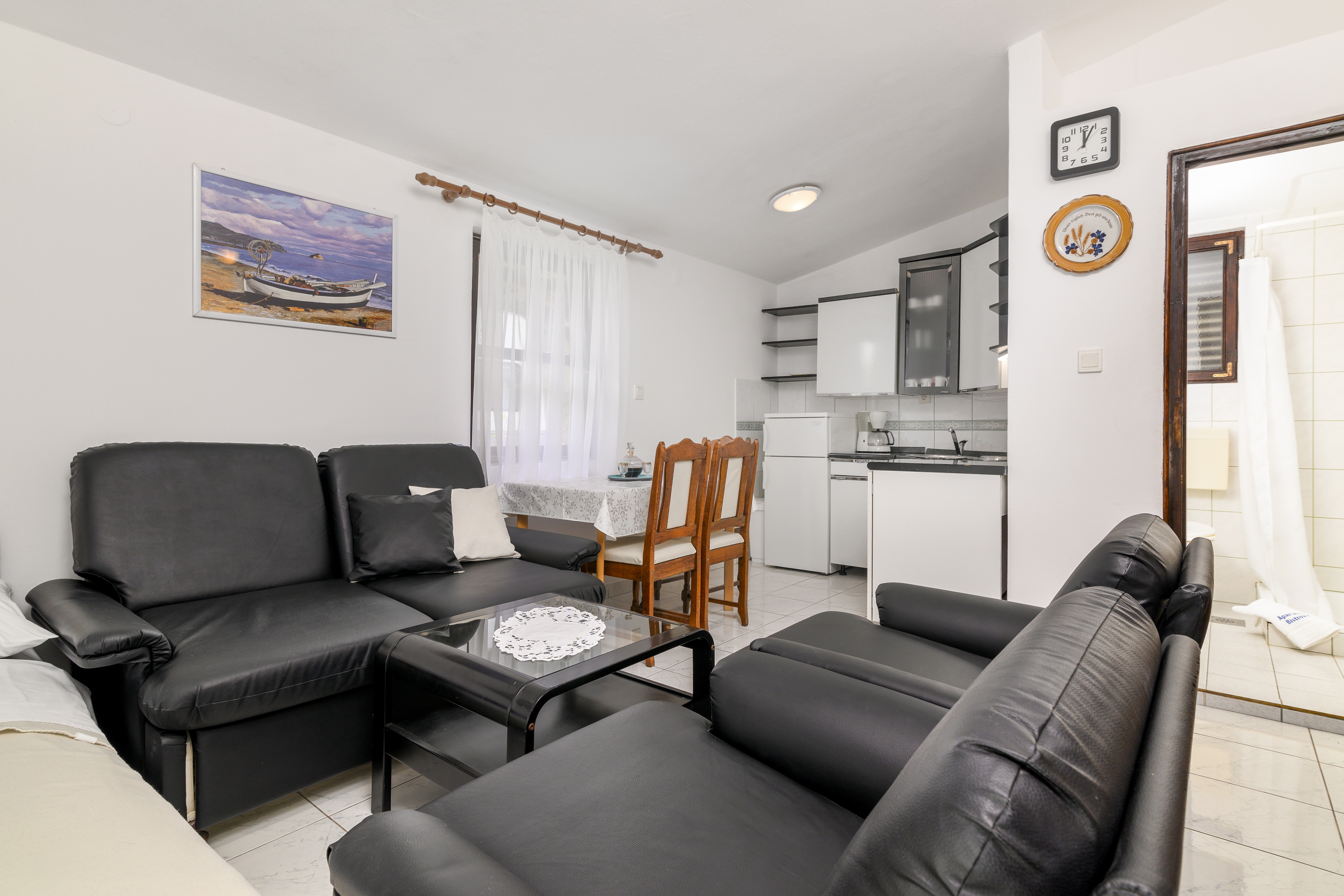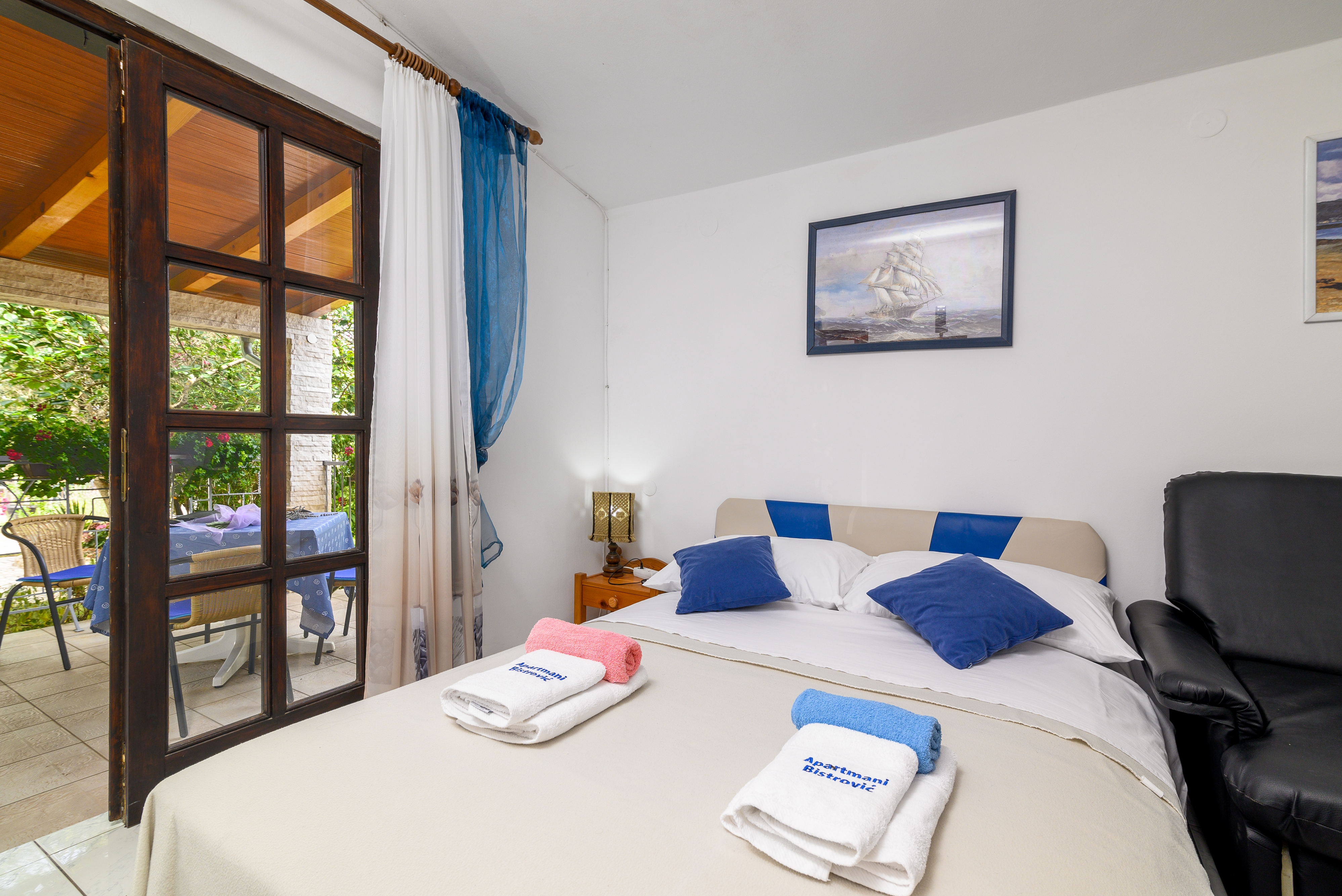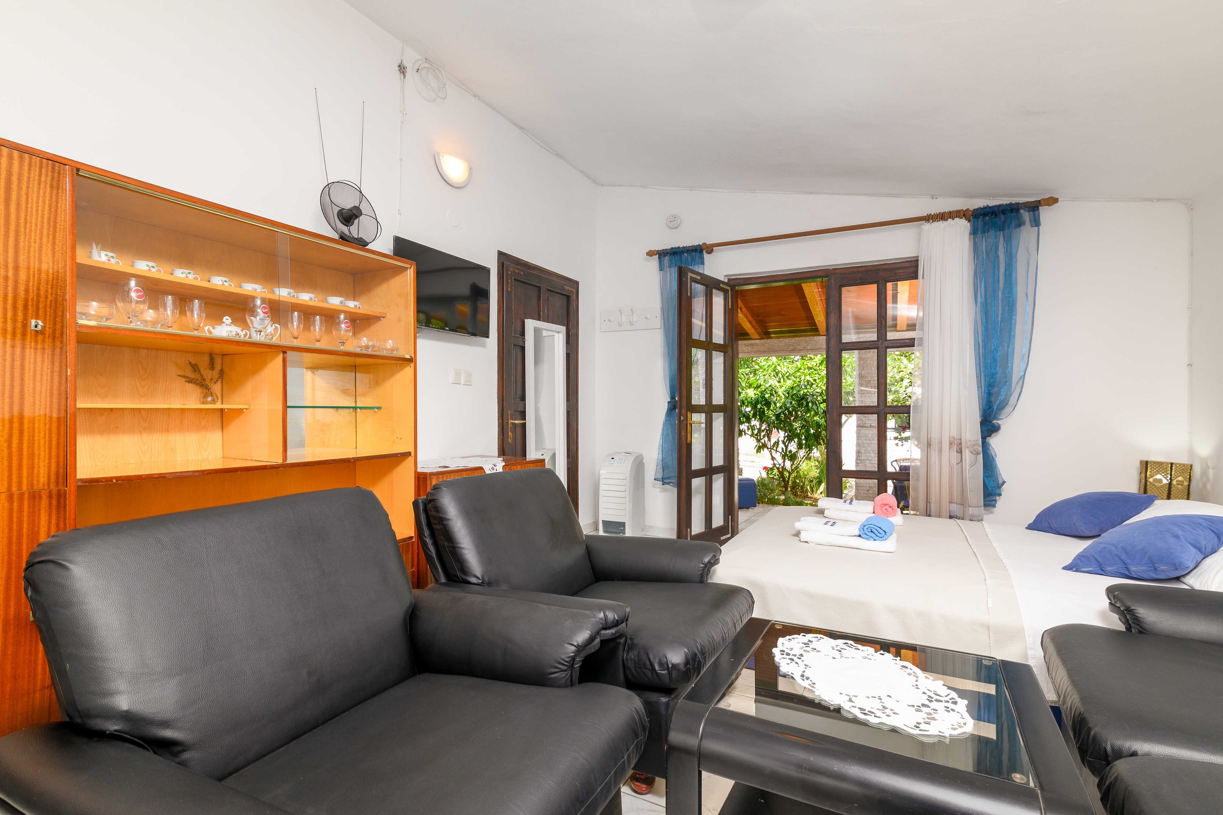 Studio może przyjąć 3 gości. Łóżka znajdują się w sypialniach, których jest 1, na powierzchni 23m2. Goście mają dostęp do tarasu, by korzystać z ciepłych, letnich wieczorów. Możliwość przygotowywania posiłków poprzez korzystanie ze wspólnego grilla. WLICZONE W CENĘ: taksa pobytowa, sprzątanie końcowe, parking, internet, żelazko, deska do prasowania, suszarka do włosów. OBOWIĄZKOWE KOSZTY DODATKOWE: dopłata za krótki termin (procent dopłaty w zalezności od liczby noclegów: 30% - 1, 20% - 2, 10% - 3). NIEOBOWIĄZKOWE KOSZTY DODATKOWE: klimatyzacja (5,00 € za nocleg), pranie bielizny (5,00 € pranie), łódź (10,00 € za nocleg). Dostępność dodatkowych usług w rezerwowanym terminie oraz ich cenę (jeśli nie jest podana) należy sprawdzić wcześniej. Za dodatowe usługi, które nie zostały uwzględnione w kalkulacji ceny, płaci się bezpośrednio właścicielowi obiektu, pod warunkiem śe gość korzysta z tych usług.