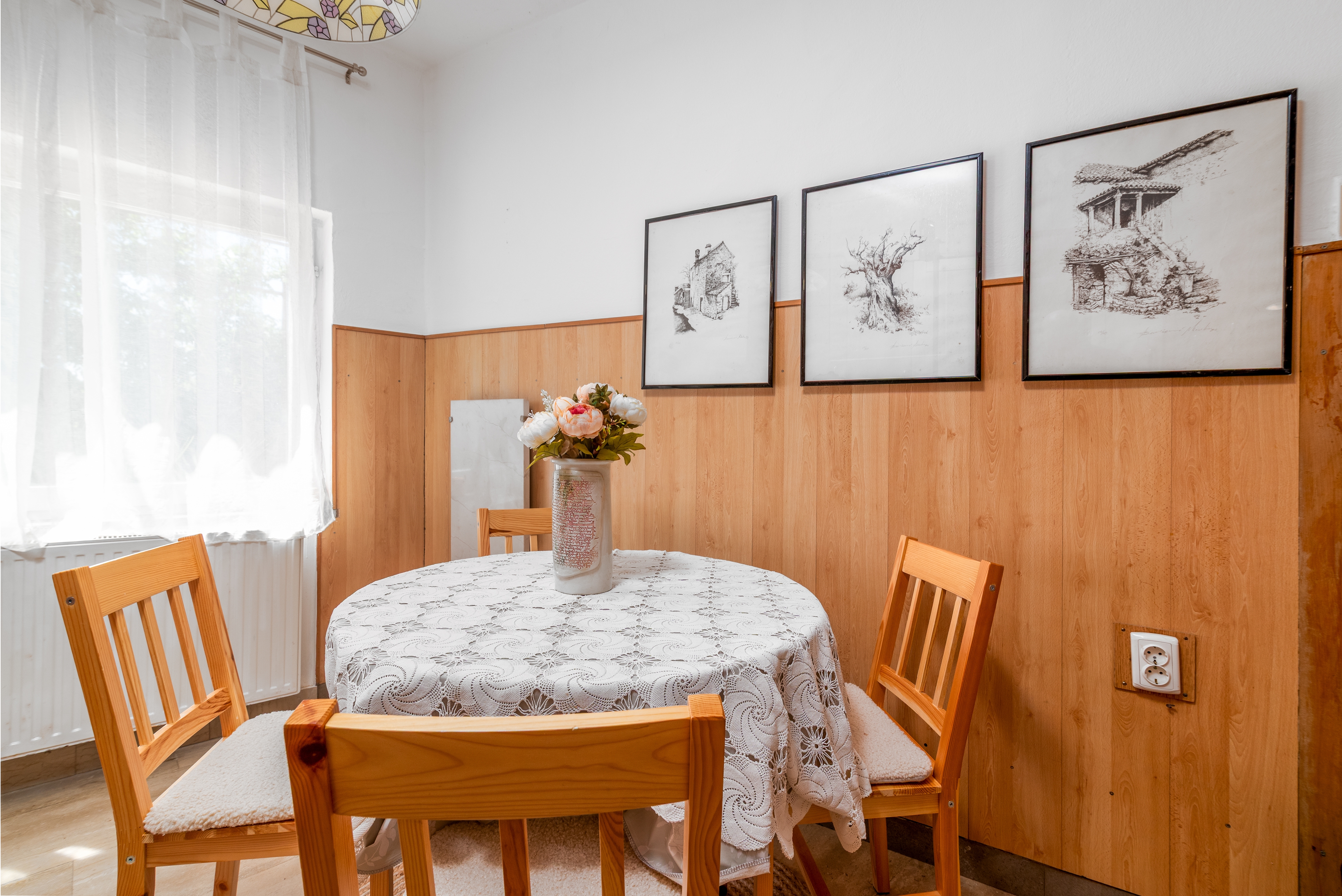 Dom może przyjąć 10 gości. Łóżka znajdują się w sypialniach, których jest 4, oraz w pokoju dziennym, na powierzchni 135m2. Goście mają dostęp do tarasu, by korzystać z ciepłych, letnich wieczorów. Grill jest dostępny tylko do użytku gości z tej kwatery. W trakcie swojego pobytu goście mogą zrelakswować się w prywatnym basenie. WLICZONE W CENĘ: taksa pobytowa, sprzątanie końcowe, klimatyzacja, centralne ogrzewanie, basen, parking, internet, łóżeczko dziecięce, żelazko, deska do prasowania, suszarka do włosów. Dostępność dodatkowych usług w rezerwowanym terminie oraz ich cenę (jeśli nie jest podana) należy sprawdzić wcześniej. Za dodatowe usługi, które nie zostały uwzględnione w kalkulacji ceny, płaci się bezpośrednio właścicielowi obiektu, pod warunkiem śe gość korzysta z tych usług.