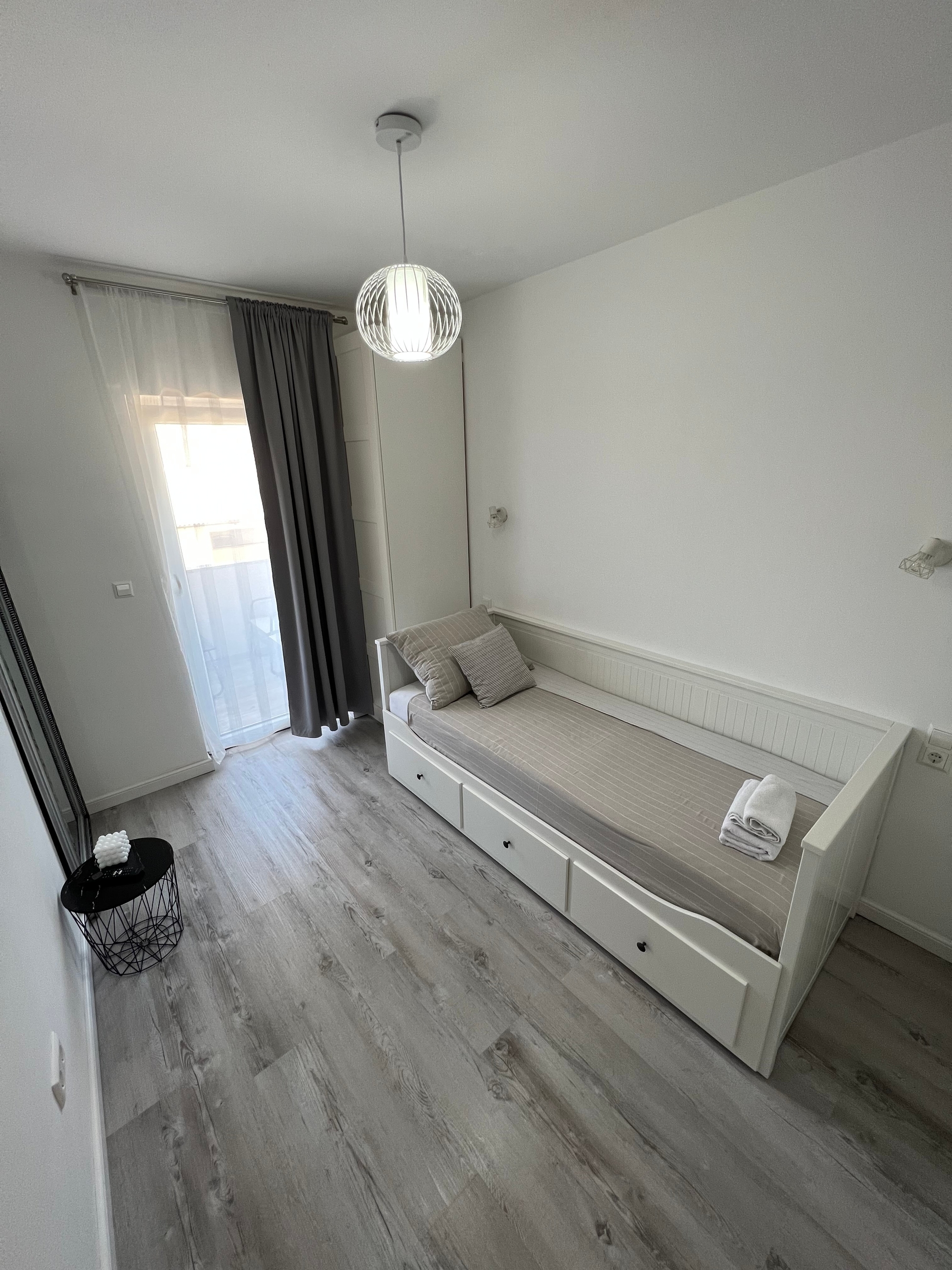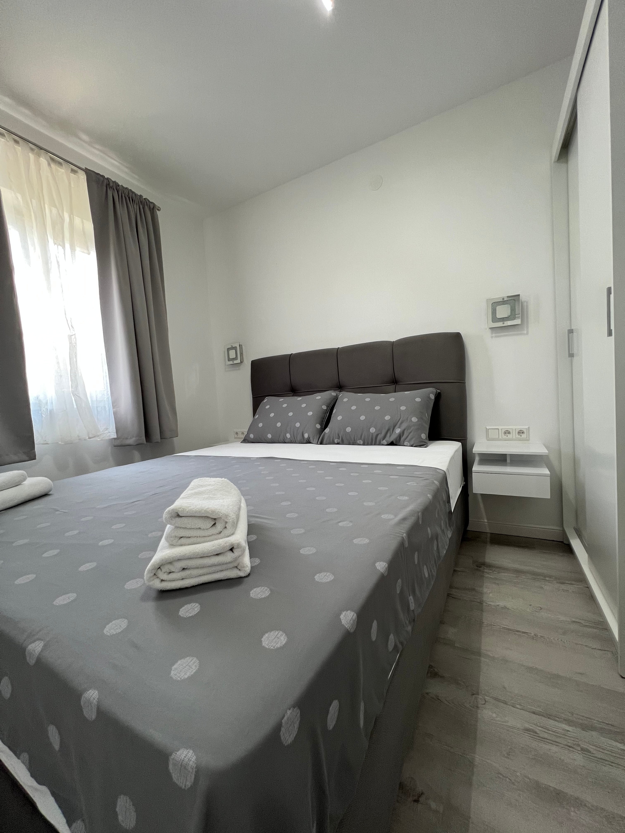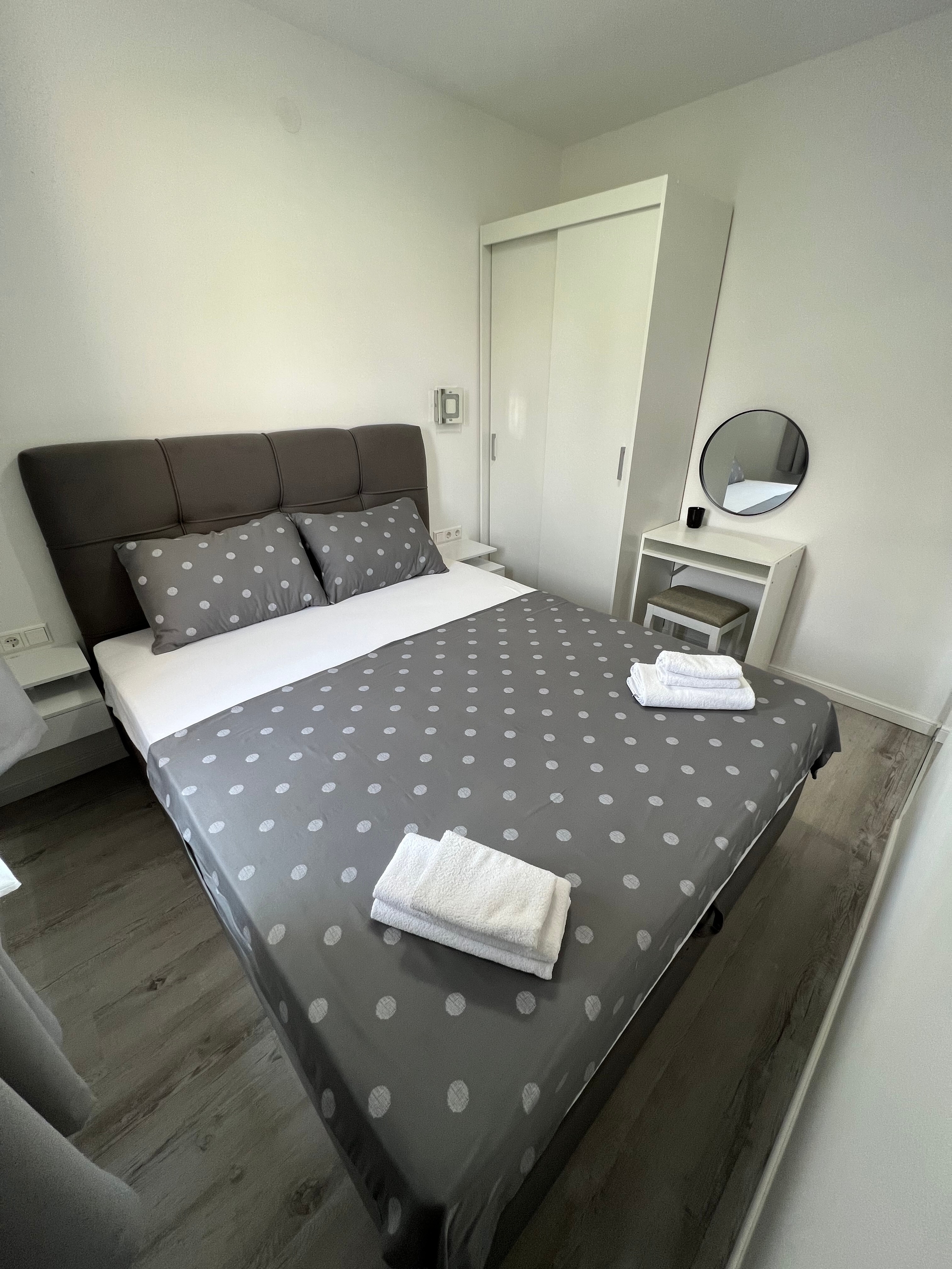 Apartament może przyjąć 3 gości. Łóżka znajdują się w sypialniach, których jest 2, na powierzchni 37m2. Goście mają dostęp do balkonu, by korzystać z ciepłych, letnich wieczorów. W kwaterze dozwolony jest pobyt zwierzęcia domowego, za dopłatą. WLICZONE W CENĘ: taksa pobytowa, sprzątanie końcowe, klimatyzacja, parking, internet, łóżeczko dziecięce, suszarka do włosów. NIEOBOWIĄZKOWE KOSZTY DODATKOWE: zwierzęta domowe (5,00 € za nocleg). Dostępność dodatkowych usług w rezerwowanym terminie oraz ich cenę (jeśli nie jest podana) należy sprawdzić wcześniej. Za dodatowe usługi, które nie zostały uwzględnione w kalkulacji ceny, płaci się bezpośrednio właścicielowi obiektu, pod warunkiem śe gość korzysta z tych usług.