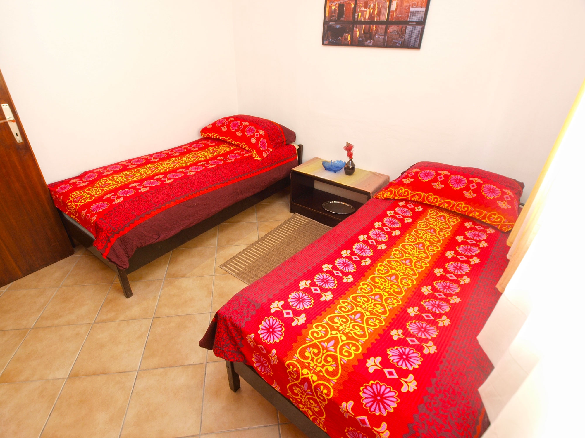 Apartament może przyjąć 4 gości. Łóżka znajdują się w sypialniach, których jest 2, na powierzchni 38m2. Goście mają dostęp do tarasu, by korzystać z ciepłych, letnich wieczorów. Możliwość przygotowywania posiłków poprzez korzystanie ze wspólnego grilla. W kwaterze dozwolony jest pobyt zwierzęcia domowego, za dopłatą. WLICZONE W CENĘ: taksa pobytowa, sprzątanie końcowe, parking, internet. NIEOBOWIĄZKOWE KOSZTY DODATKOWE: klimatyzacja (5,00 € za nocleg), zwierzęta domowe (10,00 € za nocleg). Dostępność dodatkowych usług w rezerwowanym terminie oraz ich cenę (jeśli nie jest podana) należy sprawdzić wcześniej. Za dodatowe usługi, które nie zostały uwzględnione w kalkulacji ceny, płaci się bezpośrednio właścicielowi obiektu, pod warunkiem śe gość korzysta z tych usług.