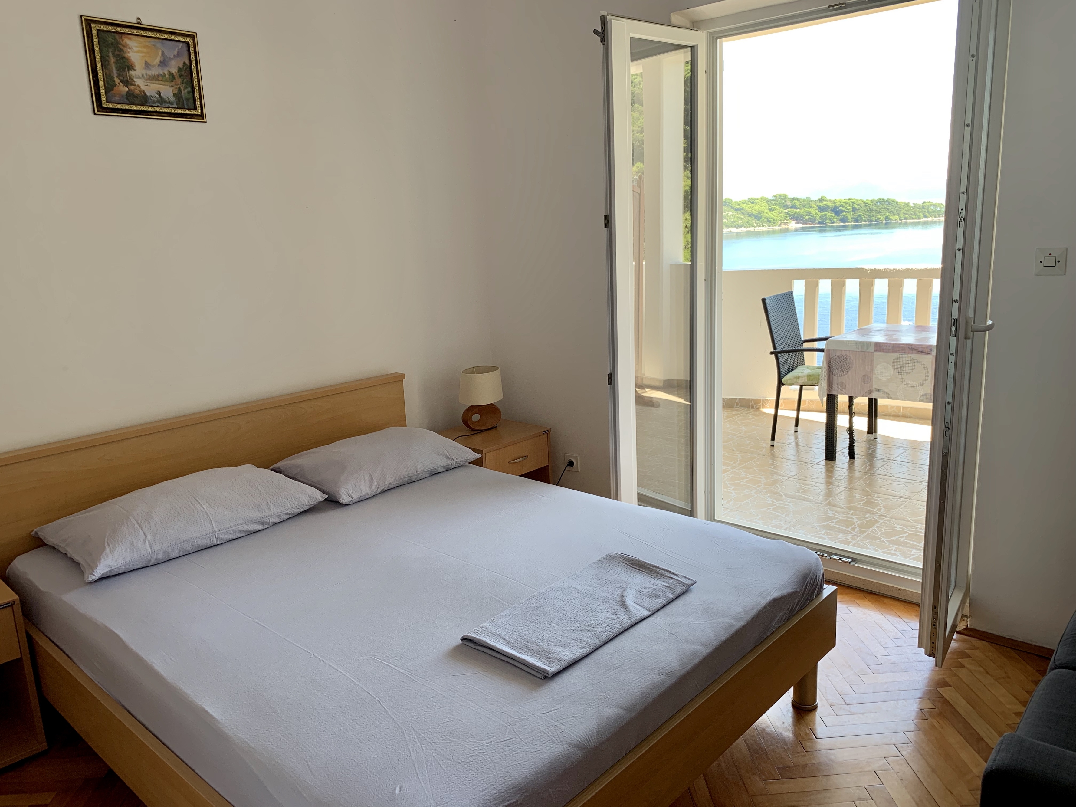 Apartament może przyjąć 7 gości. Łóżka znajdują się w sypialniach, których jest 3, na powierzchni 70m2. Goście mają dostęp do tarasu, by korzystać z ciepłych, letnich wieczorów. Z apartamentu roztacza się widok na morze. Możliwość przygotowywania posiłków poprzez korzystanie ze wspólnego grilla. WLICZONE W CENĘ: taksa pobytowa, sprzątanie końcowe, klimatyzacja, centralne ogrzewanie, parking, internet, łóżeczko dziecięce, suszarka do włosów. NIEOBOWIĄZKOWE KOSZTY DODATKOWE: pranie bielizny (7,00 € pranie), dostawka (10,00 € za nocleg). Dostępność dodatkowych usług w rezerwowanym terminie oraz ich cenę (jeśli nie jest podana) należy sprawdzić wcześniej. Za dodatowe usługi, które nie zostały uwzględnione w kalkulacji ceny, płaci się bezpośrednio właścicielowi obiektu, pod warunkiem śe gość korzysta z tych usług. Zniżki od ceny podstawowej: bezpłatny dzień 14=13 (przy pobycie, trwającym co najmniej 14 dni, otrzymujecie jeden bezpłatny dzień na pobyt do 31.12.2026).