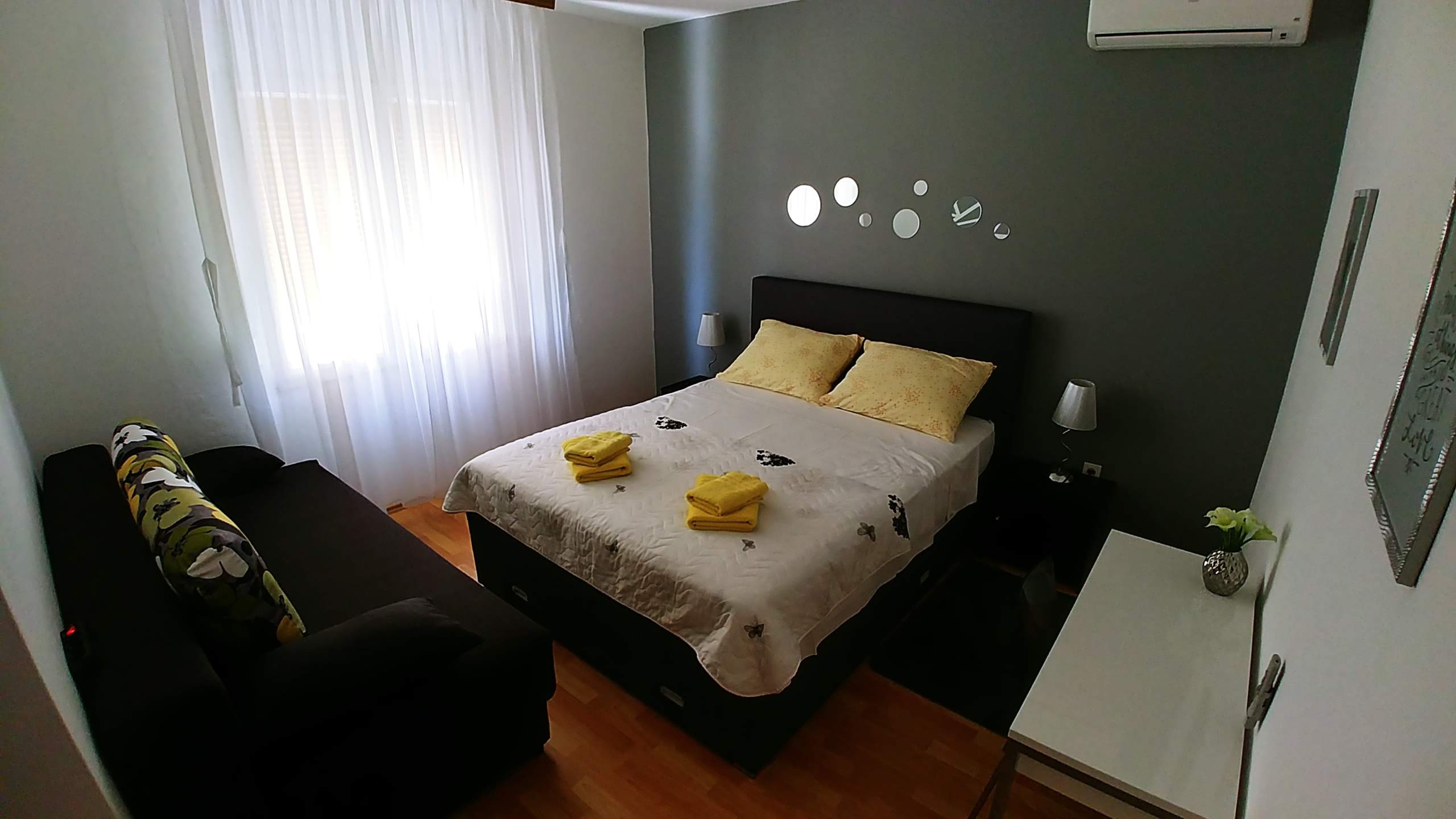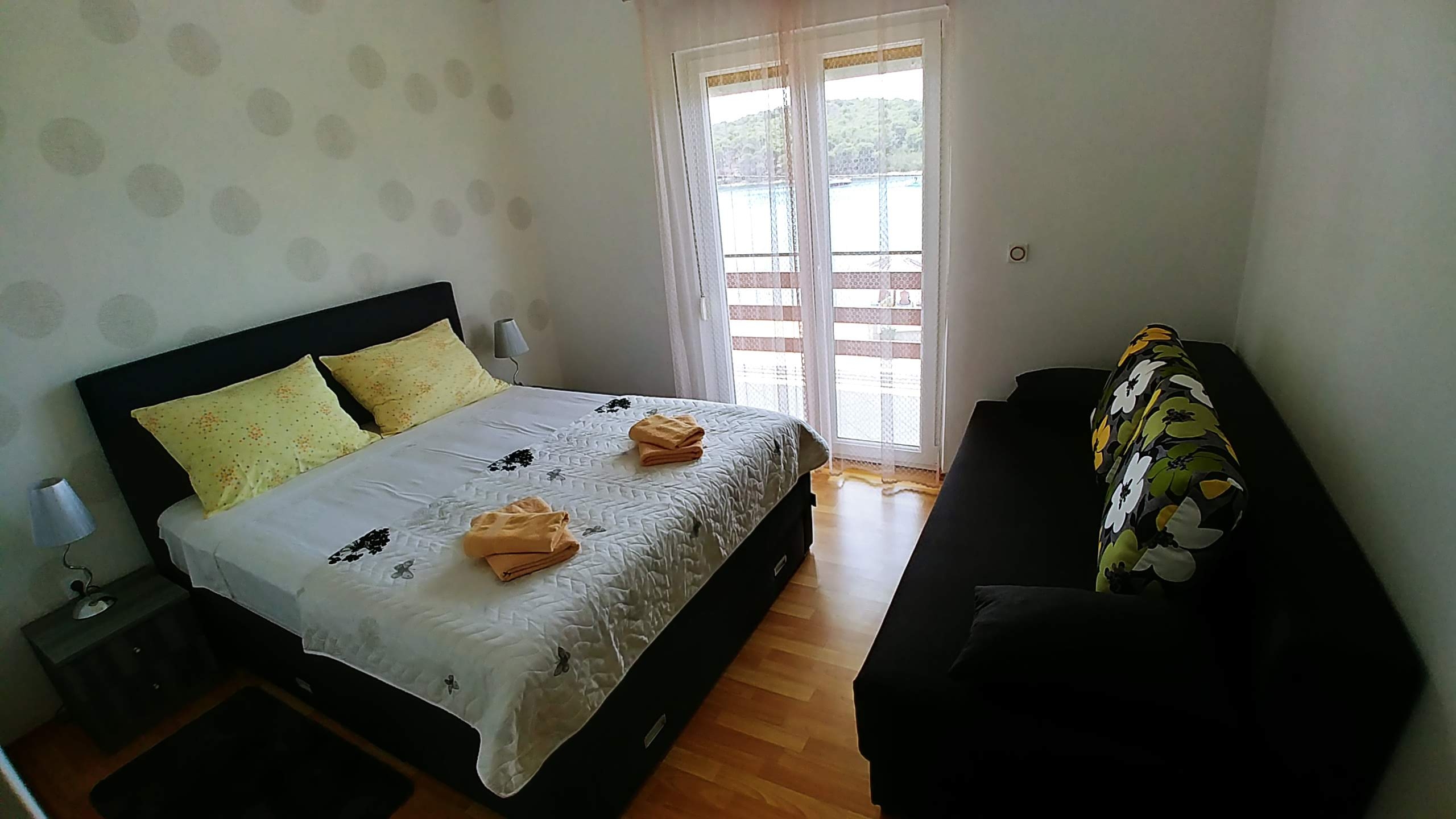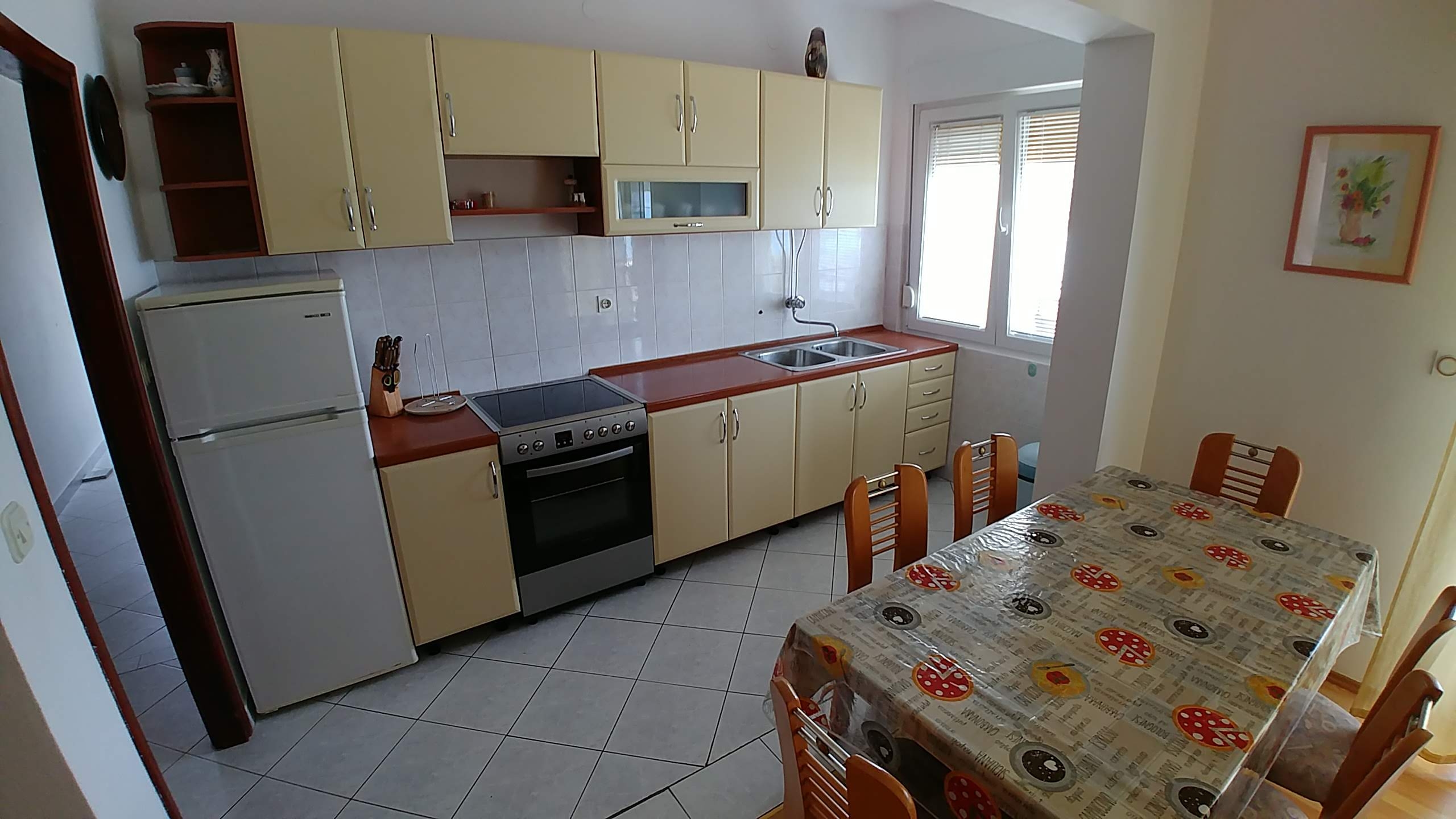 Apartament może przyjąć 9 gości. Łóżka znajdują się w sypialniach, których jest 3, na powierzchni 84m2. Goście mają dostęp do tarasu, by korzystać z ciepłych, letnich wieczorów. Z apartamentu roztacza się widok na morze. Możliwość przygotowywania posiłków poprzez korzystanie ze wspólnego grilla. W kwaterze dozwolony jest pobyt zwierzęcia domowego, za dopłatą. WLICZONE W CENĘ: taksa pobytowa, sprzątanie końcowe, klimatyzacja, parking, internet, miejsce do cumowania łodzi, łóżeczko dziecięce, suszarka do włosów, parasol, leżaki. NIEOBOWIĄZKOWE KOSZTY DODATKOWE: pranie bielizny (10,00 € pranie), zwierzęta domowe (10,00 € za nocleg). Dostępność dodatkowych usług w rezerwowanym terminie oraz ich cenę (jeśli nie jest podana) należy sprawdzić wcześniej. Za dodatowe usługi, które nie zostały uwzględnione w kalkulacji ceny, płaci się bezpośrednio właścicielowi obiektu, pod warunkiem śe gość korzysta z tych usług.