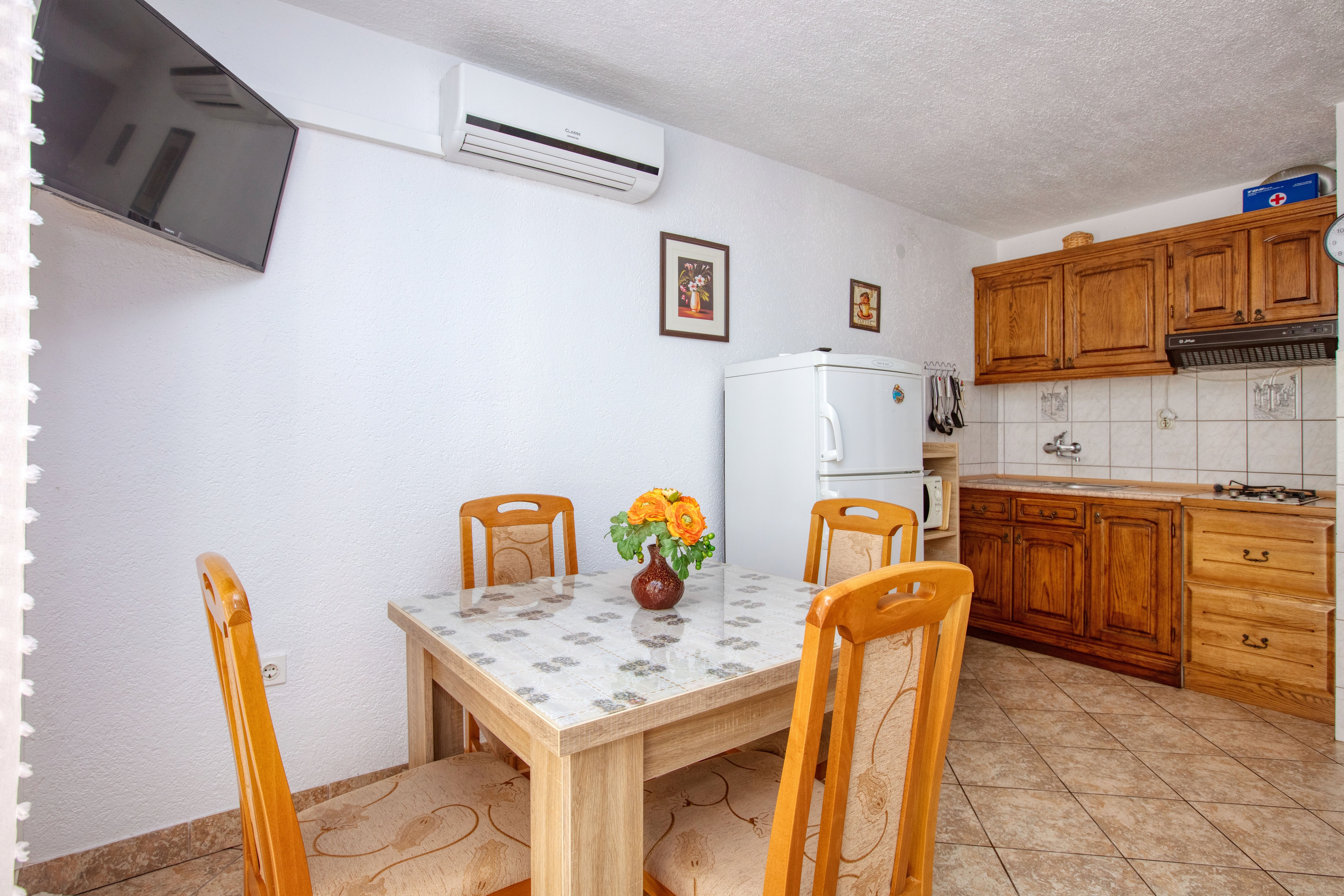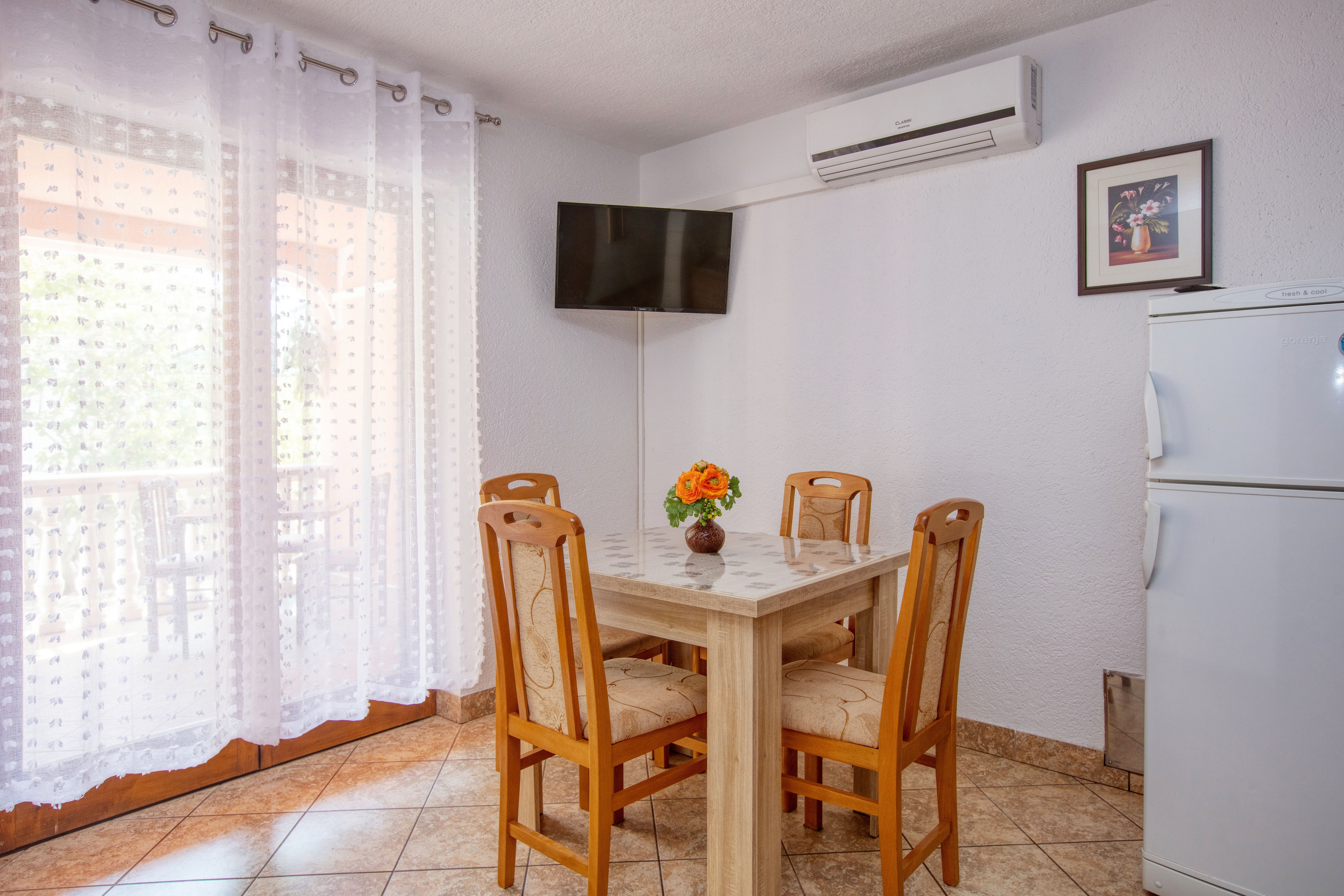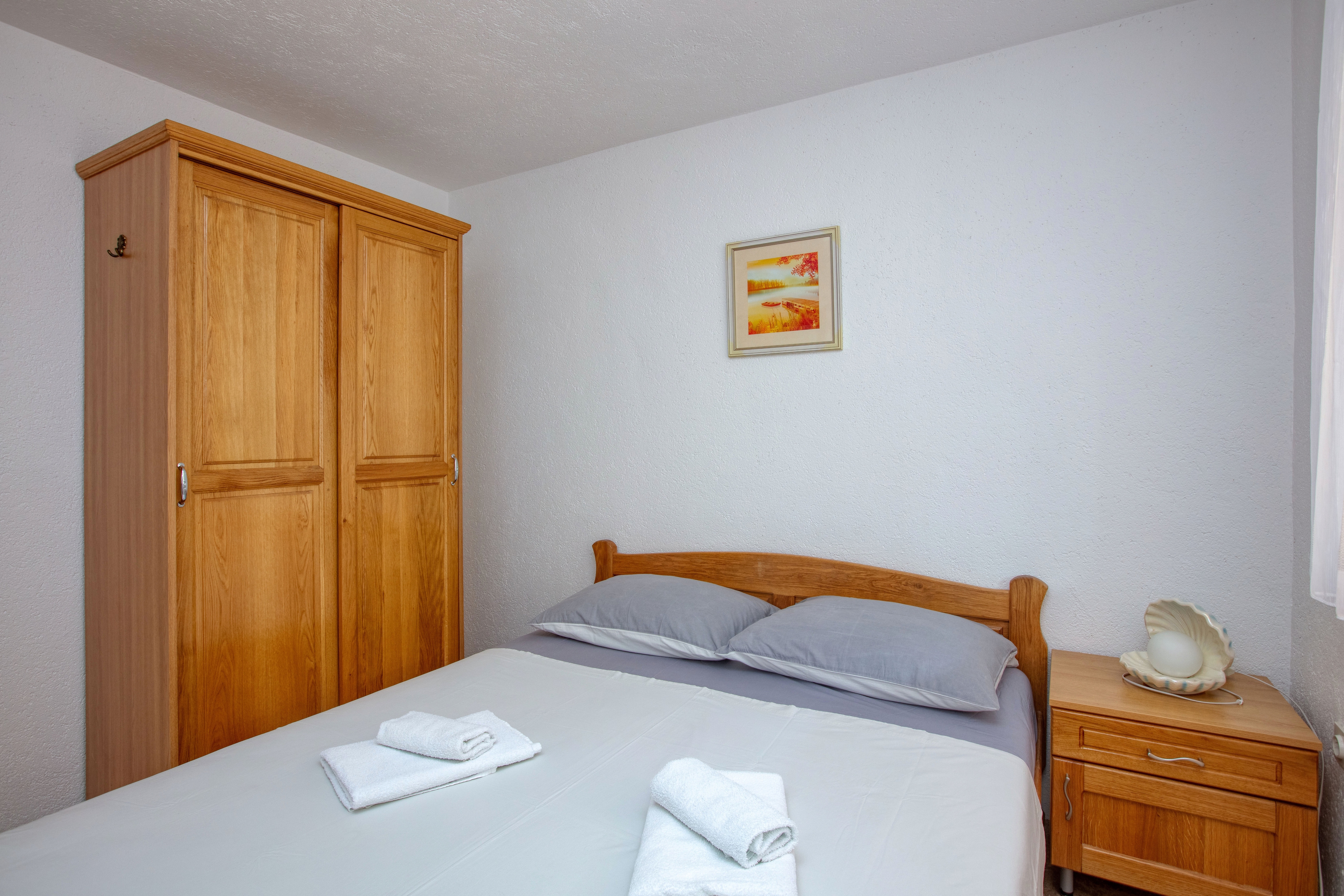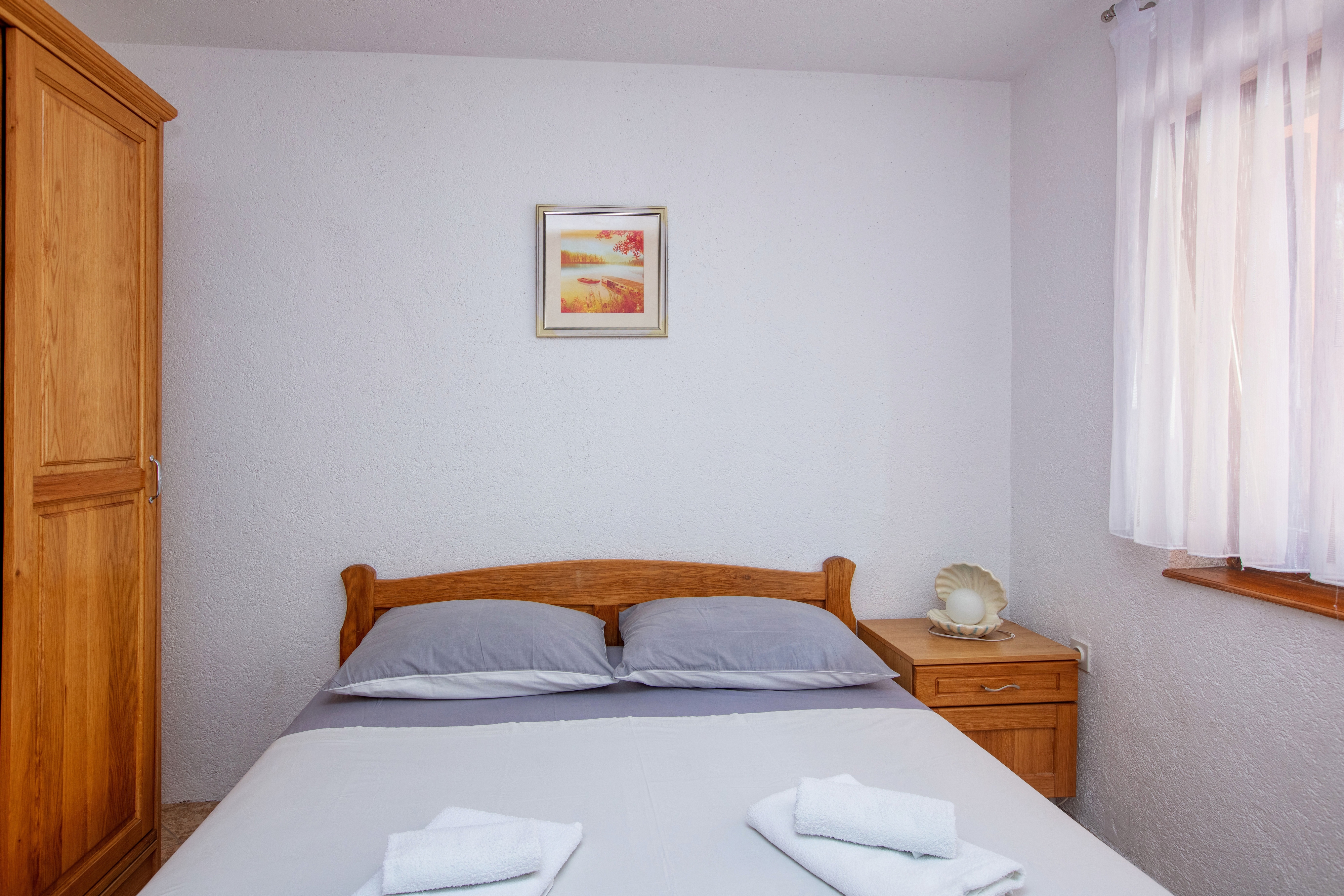 Apartament może przyjąć 5 gości. Łóżka znajdują się w sypialniach, których jest 2, na powierzchni 37m2. Goście mają dostęp do tarasu, by korzystać z ciepłych, letnich wieczorów. Możliwość przygotowywania posiłków poprzez korzystanie ze wspólnego grilla. W kwaterze dozwolony jest pobyt zwierzęcia domowego, za dopłatą. WLICZONE W CENĘ: taksa pobytowa, sprzątanie końcowe, klimatyzacja, parking, internet, pranie bielizny, rower, łóżeczko dziecięce, żelazko. OBOWIĄZKOWE KOSZTY DODATKOWE: dopłata za krótki termin (procent dopłaty w zalezności od liczby noclegów: 30% - 1, 20% - 2, 10% - 3). NIEOBOWIĄZKOWE KOSZTY DODATKOWE: zwierzęta domowe (5,00 € za nocleg). Dostępność dodatkowych usług w rezerwowanym terminie oraz ich cenę (jeśli nie jest podana) należy sprawdzić wcześniej. Za dodatowe usługi, które nie zostały uwzględnione w kalkulacji ceny, płaci się bezpośrednio właścicielowi obiektu, pod warunkiem śe gość korzysta z tych usług. Zniżki od ceny podstawowej: bezpłatny dzień 14=13 (przy pobycie, trwającym co najmniej 14 dni, otrzymujecie jeden bezpłatny dzień na pobyt do 31.12.2026).