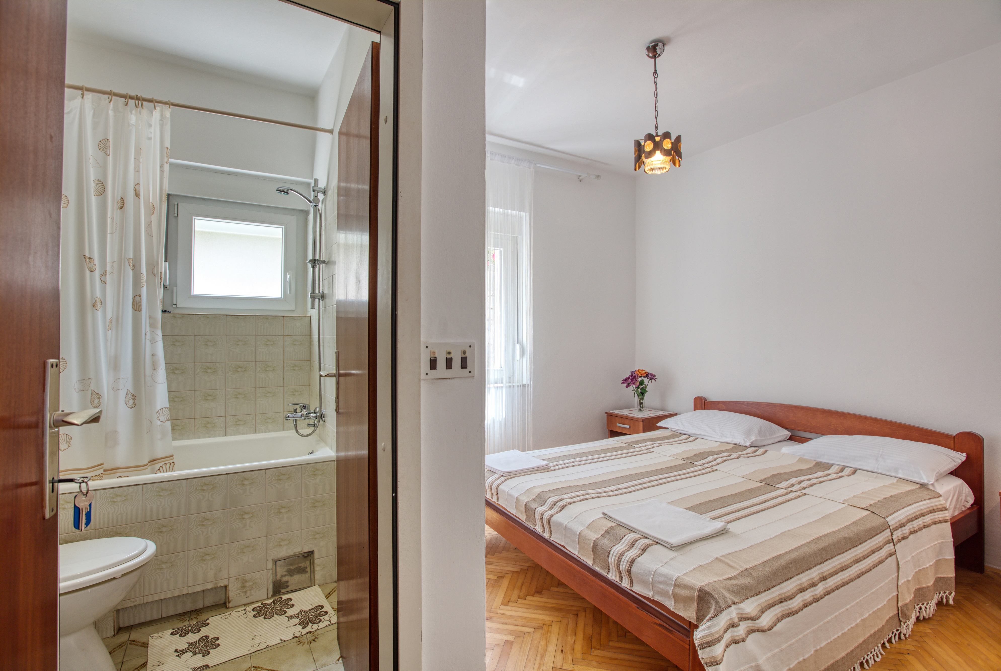 Pokój może przyjąć 2 gości. Łóżka znajdują się w sypialniach, których jest 1, na powierzchni 11m2. Możliwe jest korzystanie ze wspólnej kuchni. Możliwość przygotowywania posiłków poprzez korzystanie ze wspólnego grilla. W kwaterze dozwolony jest pobyt zwierzęcia domowego, za dopłatą. Rezerwowana kwatera nie ma balkonu ani tarasu. Rezerwowana kwatera to pokój z własną łazienką, z możliwością korzystania ze wspólnej kuchni bez dopłaty. WLICZONE W CENĘ: taksa pobytowa, sprzątanie końcowe, wspólna kuchnia, parking, internet, pranie bielizny, żelazko, deska do prasowania, suszarka do włosów. OBOWIĄZKOWE KOSZTY DODATKOWE: dopłata za krótki termin (procent dopłaty w zalezności od liczby noclegów: 30% - 1, 20% - 2, 10% - 3). NIEOBOWIĄZKOWE KOSZTY DODATKOWE: zwierzęta domowe (5,00 € za nocleg). Dostępność dodatkowych usług w rezerwowanym terminie oraz ich cenę (jeśli nie jest podana) należy sprawdzić wcześniej. Za dodatowe usługi, które nie zostały uwzględnione w kalkulacji ceny, płaci się bezpośrednio właścicielowi obiektu, pod warunkiem śe gość korzysta z tych usług.