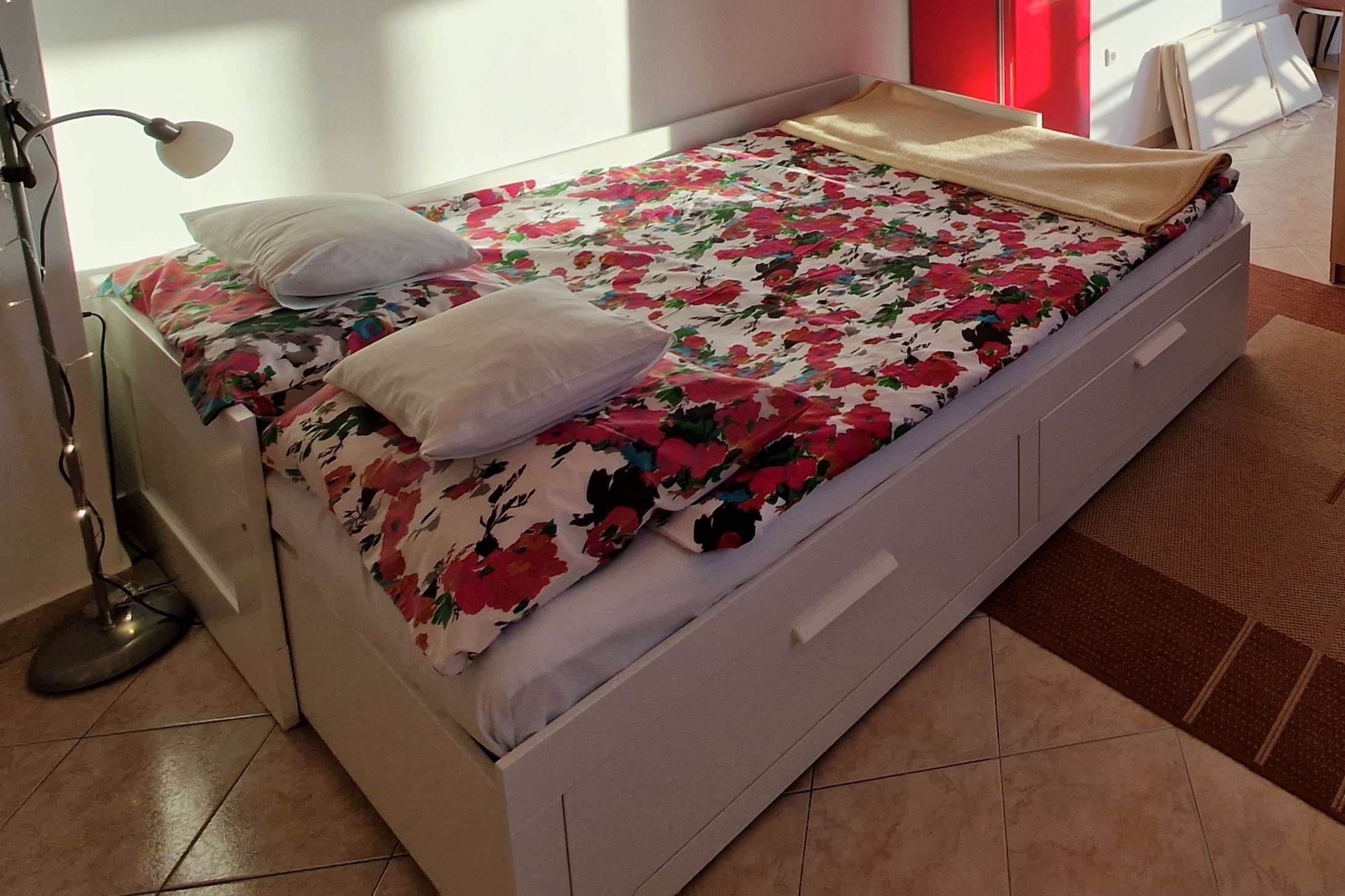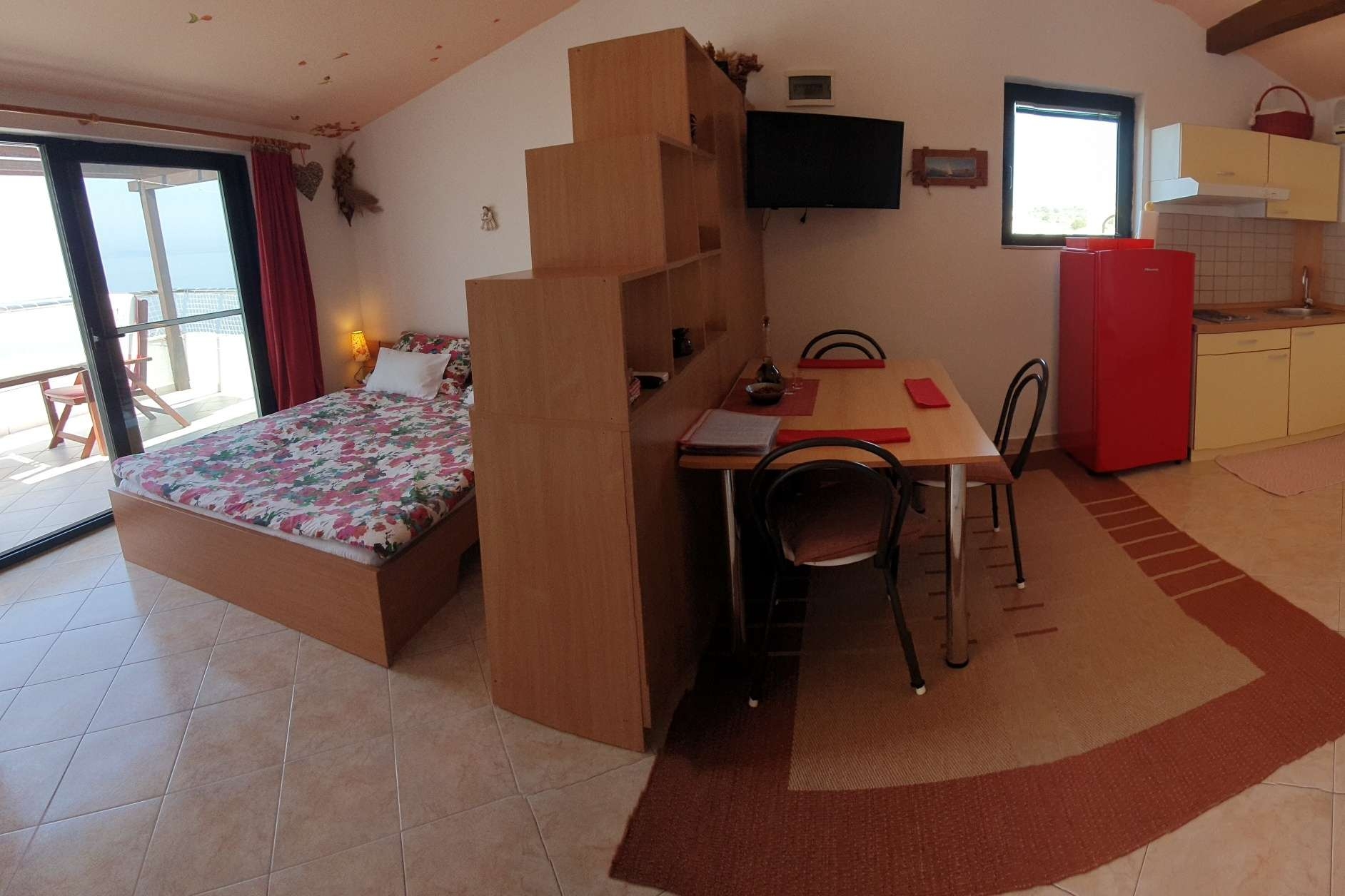 Studio może przyjąć 3 gości. Łóżka znajdują się w sypialniach, których jest 1, oraz w pokoju dziennym, na powierzchni 40m2. Goście mają dostęp do tarasu, by korzystać z ciepłych, letnich wieczorów. Z apartamentu typu studio roztacza się widok na morze. Możliwość przygotowywania posiłków poprzez korzystanie ze wspólnego grilla. WLICZONE W CENĘ: taksa pobytowa, sprzątanie końcowe, klimatyzacja, parking, internet, łóżeczko dziecięce, żelazko, deska do prasowania, suszarka do włosów, parasol. OBOWIĄZKOWE KOSZTY DODATKOWE: dopłata za krótki termin (procent dopłaty w zalezności od liczby noclegów: 30% - 1, 20% - 2, 10% - 3). Dostępność dodatkowych usług w rezerwowanym terminie oraz ich cenę (jeśli nie jest podana) należy sprawdzić wcześniej. Za dodatowe usługi, które nie zostały uwzględnione w kalkulacji ceny, płaci się bezpośrednio właścicielowi obiektu, pod warunkiem śe gość korzysta z tych usług.