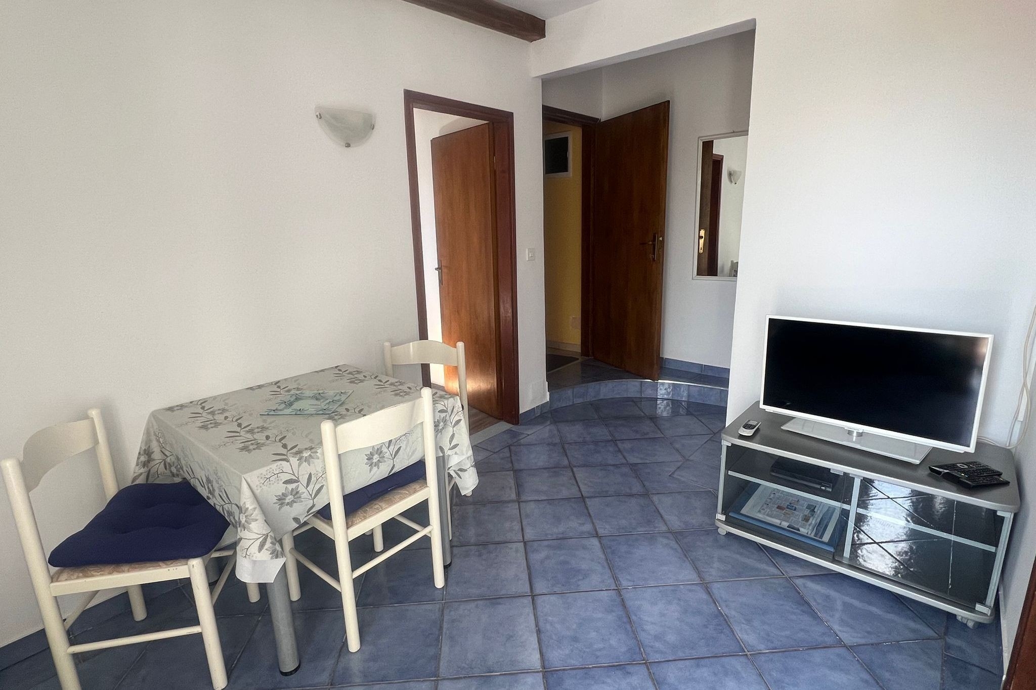 Apartament może przyjąć 3 gości. Łóżka znajdują się w sypialniach, których jest 1, na powierzchni 28m2. Goście mają dostęp do balkonu, by korzystać z ciepłych, letnich wieczorów. Możliwość przygotowywania posiłków poprzez korzystanie ze wspólnego grilla. W kwaterze dozwolony jest pobyt zwierzęcia domowego, za dopłatą. WLICZONE W CENĘ: taksa pobytowa, sprzątanie końcowe, klimatyzacja, parking, internet, suszarka do włosów. OBOWIĄZKOWE KOSZTY DODATKOWE: dopłata za krótki termin (procent dopłaty w zalezności od liczby noclegów: 30% - 1, 20% - 2, 10% - 3). NIEOBOWIĄZKOWE KOSZTY DODATKOWE: zwierzęta domowe (10,00 € za nocleg). Dostępność dodatkowych usług w rezerwowanym terminie oraz ich cenę (jeśli nie jest podana) należy sprawdzić wcześniej. Za dodatowe usługi, które nie zostały uwzględnione w kalkulacji ceny, płaci się bezpośrednio właścicielowi obiektu, pod warunkiem śe gość korzysta z tych usług.