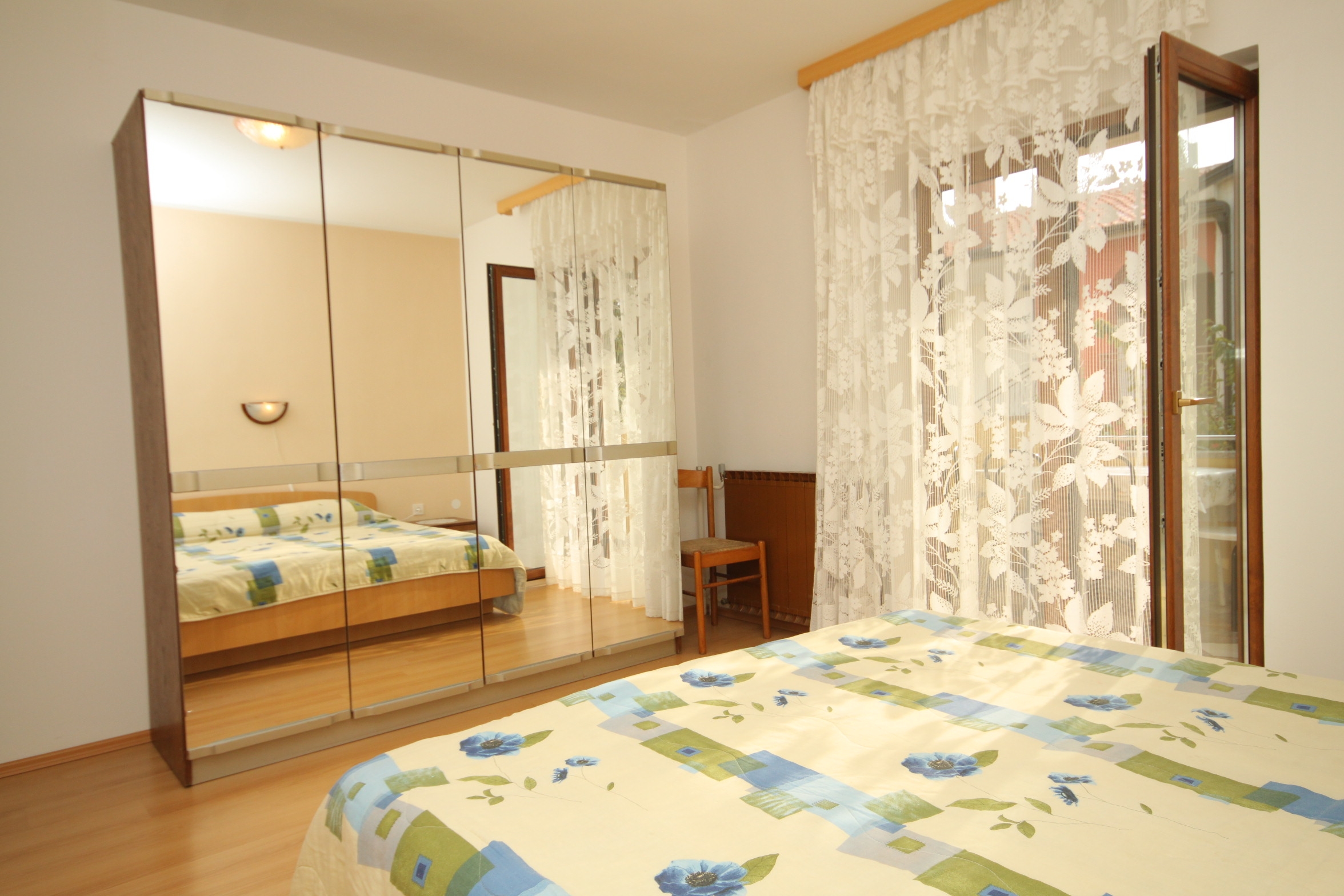 Apartament może przyjąć 4 gości. Łóżka znajdują się w sypialniach, których jest 2, na powierzchni 34m2. Goście mają dostęp do tarasu, by korzystać z ciepłych, letnich wieczorów. Możliwość przygotowywania posiłków poprzez korzystanie ze wspólnego grilla. WLICZONE W CENĘ: taksa pobytowa, sprzątanie końcowe, parking, internet, łóżeczko dziecięce, żelazko, deska do prasowania, suszarka do włosów. OBOWIĄZKOWE KOSZTY DODATKOWE: dopłata za krótki termin (procent dopłaty w zalezności od liczby noclegów: 30% - 1, 20% - 2, 10% - 3). NIEOBOWIĄZKOWE KOSZTY DODATKOWE: klimatyzacja (5,00 € za nocleg), pranie bielizny (5,00 € pranie), dostawka (10,00 € za nocleg). Dostępność dodatkowych usług w rezerwowanym terminie oraz ich cenę (jeśli nie jest podana) należy sprawdzić wcześniej. Za dodatowe usługi, które nie zostały uwzględnione w kalkulacji ceny, płaci się bezpośrednio właścicielowi obiektu, pod warunkiem śe gość korzysta z tych usług.
