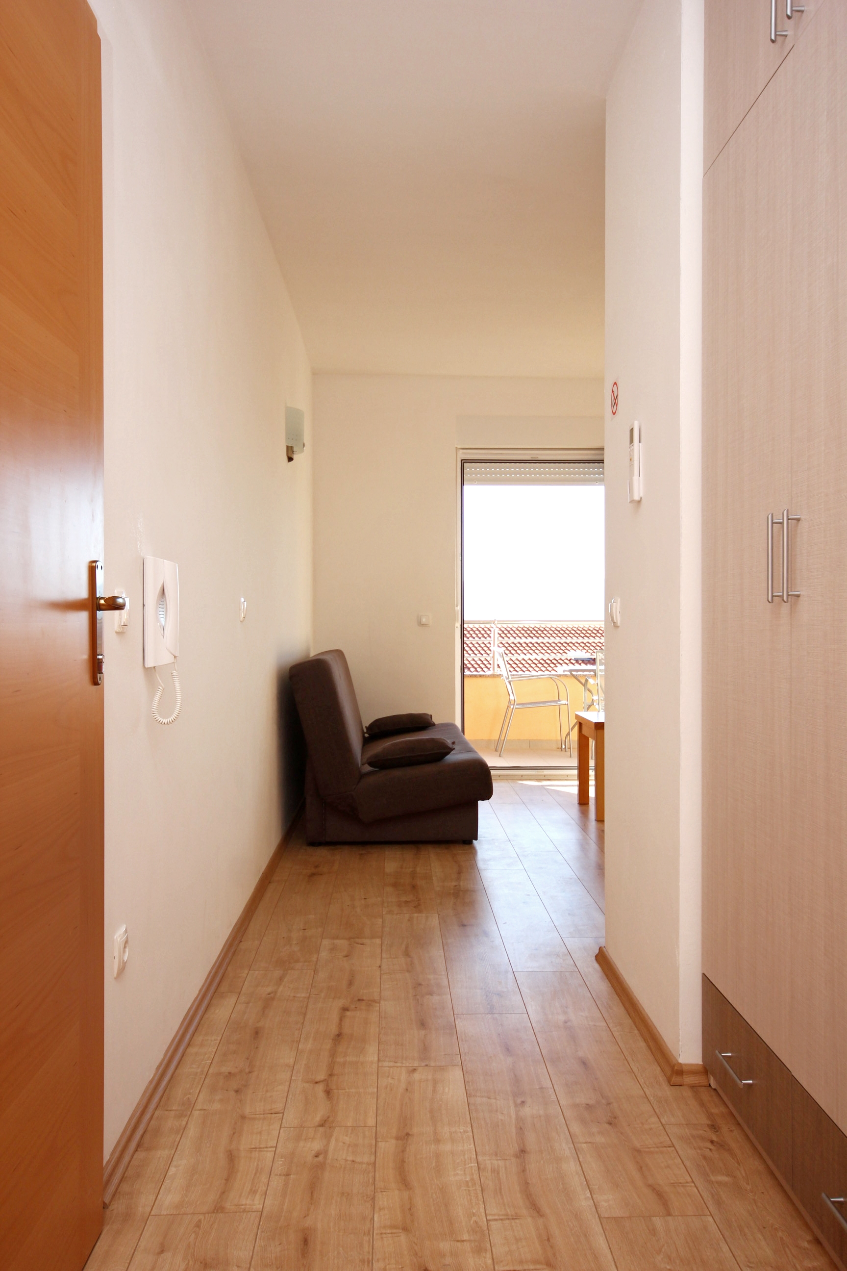 Apartament może przyjąć 4 gości. Łóżka znajdują się w sypialniach, których jest 1, oraz w pokoju dziennym, na powierzchni 38m2. Goście mają dostęp do tarasu, by korzystać z ciepłych, letnich wieczorów. Z apartamentu roztacza się widok na morze. Możliwość przygotowywania posiłków poprzez korzystanie ze wspólnego grilla. WLICZONE W CENĘ: taksa pobytowa, sprzątanie końcowe, klimatyzacja, parking, internet, pranie bielizny, żelazko, deska do prasowania, suszarka do włosów. Dostępność dodatkowych usług w rezerwowanym terminie oraz ich cenę (jeśli nie jest podana) należy sprawdzić wcześniej. Za dodatowe usługi, które nie zostały uwzględnione w kalkulacji ceny, płaci się bezpośrednio właścicielowi obiektu, pod warunkiem śe gość korzysta z tych usług.