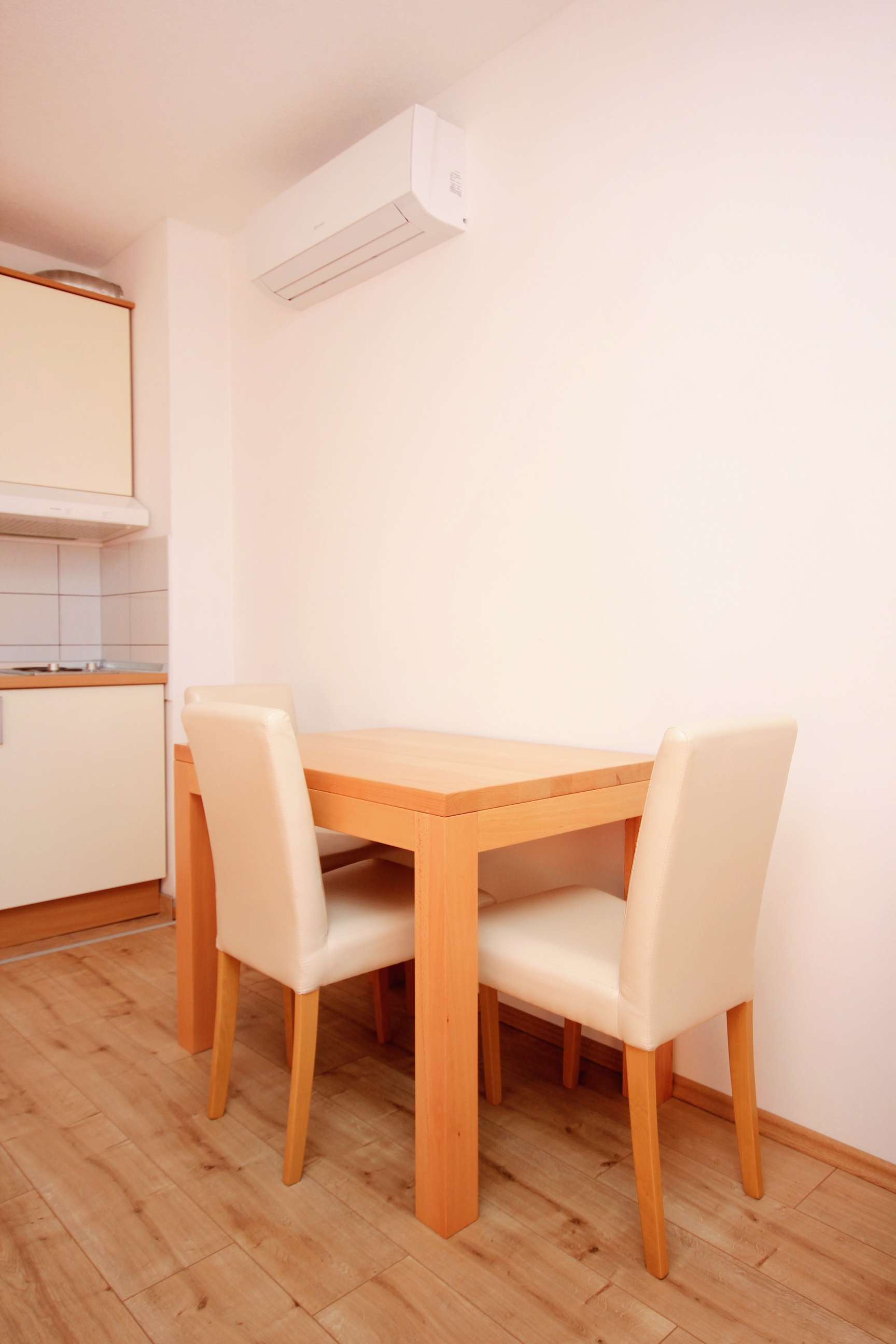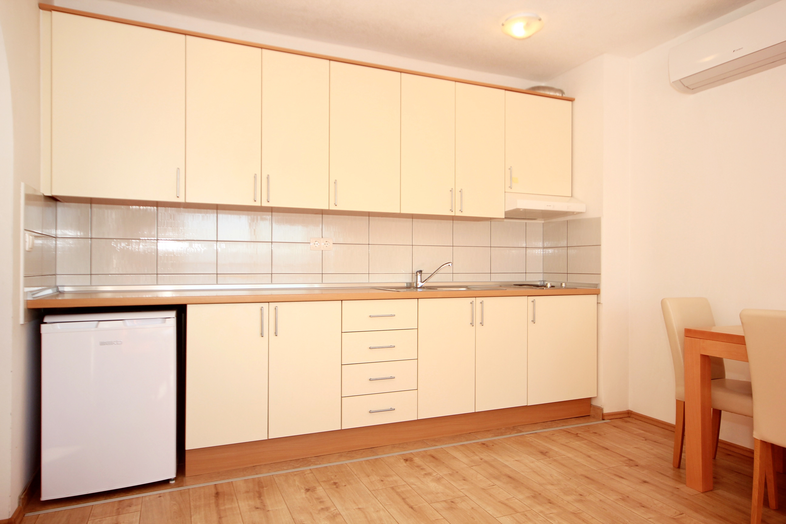 Apartament może przyjąć 4 gości. Łóżka znajdują się w sypialniach, których jest 1, oraz w pokoju dziennym, na powierzchni 38m2. Goście mają dostęp do tarasu, by korzystać z ciepłych, letnich wieczorów. Z apartamentu roztacza się widok na morze. Możliwość przygotowywania posiłków poprzez korzystanie ze wspólnego grilla. WLICZONE W CENĘ: taksa pobytowa, sprzątanie końcowe, klimatyzacja, parking, internet, pranie bielizny, żelazko, deska do prasowania, suszarka do włosów. Dostępność dodatkowych usług w rezerwowanym terminie oraz ich cenę (jeśli nie jest podana) należy sprawdzić wcześniej. Za dodatowe usługi, które nie zostały uwzględnione w kalkulacji ceny, płaci się bezpośrednio właścicielowi obiektu, pod warunkiem śe gość korzysta z tych usług.