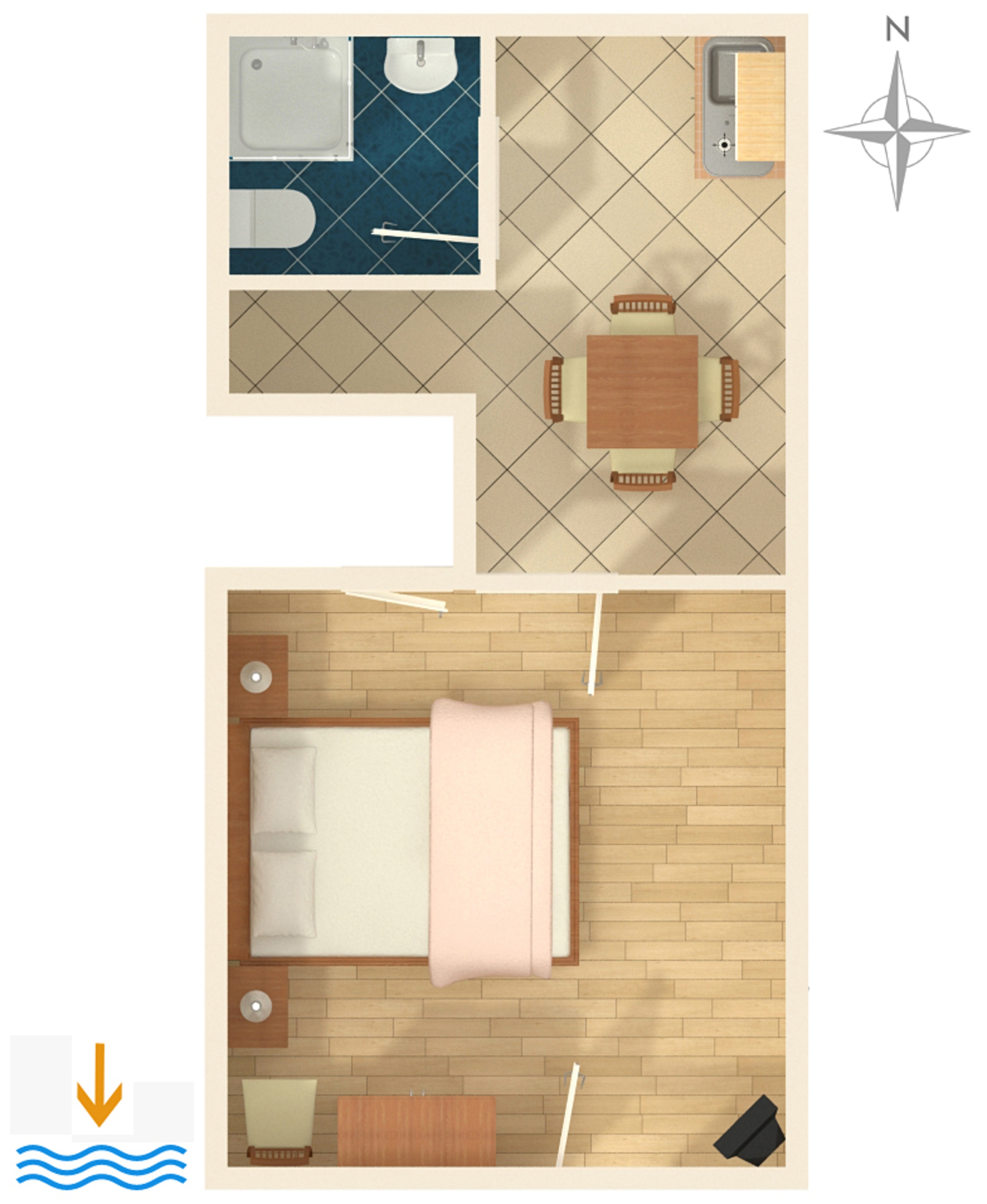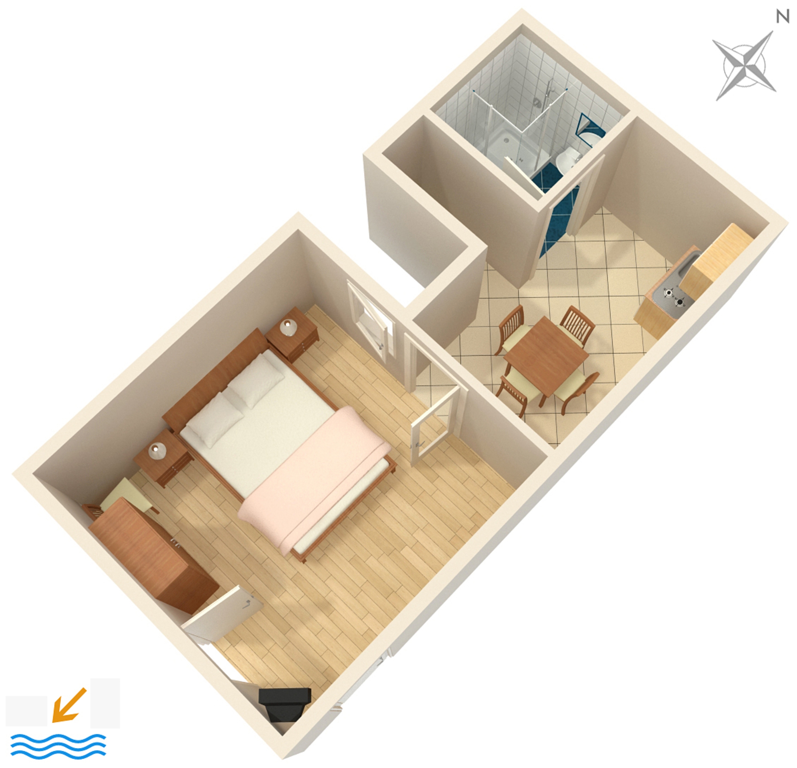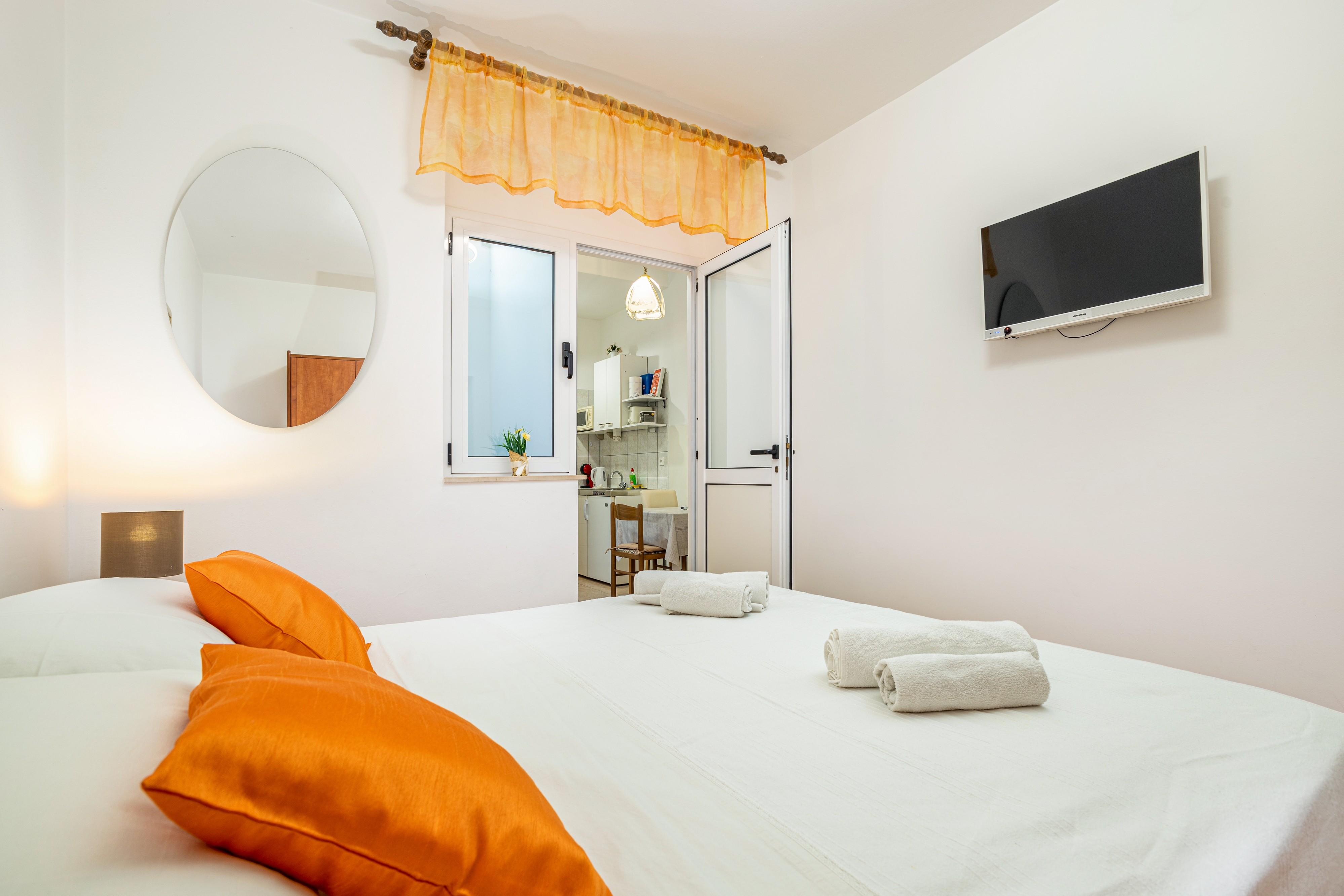 Studio może przyjąć 2 gości. Łóżka znajdują się w sypialniach, których jest 1, na powierzchni 23m2. Możliwość przygotowywania posiłków poprzez korzystanie ze wspólnego grilla. Rezerwowana kwatera nie ma balkonu ani tarasu. W rezerwowanej kwaterze na miejscu jest pobierana kaucja (jej wysokość jest podana na stronie). WLICZONE W CENĘ: taksa pobytowa, sprzątanie końcowe, klimatyzacja, parking, internet, suszarka do włosów. OBOWIĄZKOWE KOSZTY DODATKOWE: depozyt (100,00 € jednorazowo), dopłata za krótki termin (procent dopłaty w zalezności od liczby noclegów: 30% - 1, 20% - 2, 10% - 3). Dostępność dodatkowych usług w rezerwowanym terminie oraz ich cenę (jeśli nie jest podana) należy sprawdzić wcześniej. Za dodatowe usługi, które nie zostały uwzględnione w kalkulacji ceny, płaci się bezpośrednio właścicielowi obiektu, pod warunkiem śe gość korzysta z tych usług.