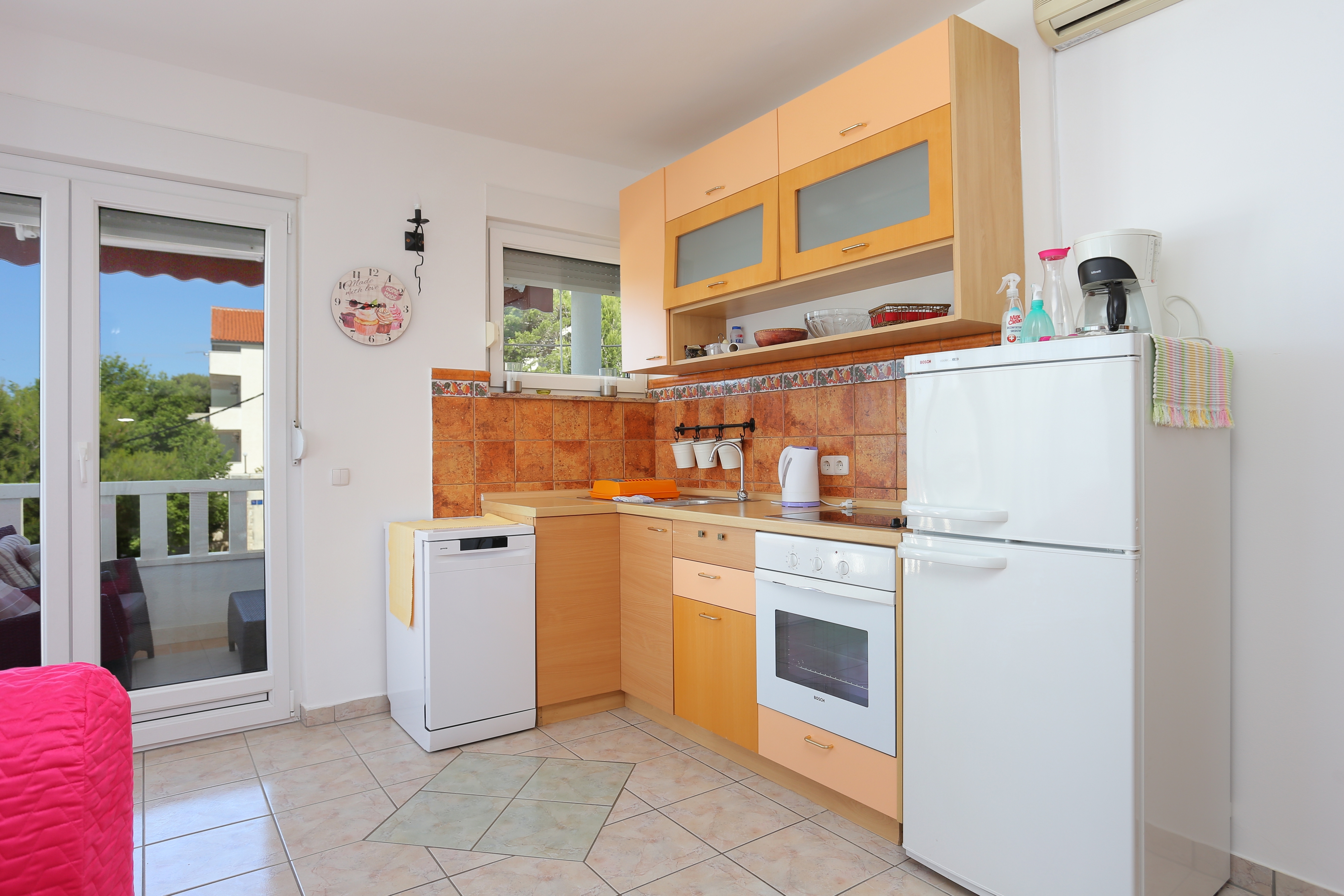 Apartament może przyjąć 4 gości. Łóżka znajdują się w sypialniach, których jest 1, oraz w pokoju dziennym, na powierzchni 35m2. Goście mają dostęp do tarasu, by korzystać z ciepłych, letnich wieczorów. Z apartamentu roztacza się widok na morze. Możliwość przygotowywania posiłków poprzez korzystanie ze wspólnego grilla. W kwaterze dozwolony jest pobyt zwierzęcia domowego, za dopłatą. WLICZONE W CENĘ: taksa pobytowa, sprzątanie końcowe, klimatyzacja, parking, internet, łóżeczko dziecięce, żelazko, deska do prasowania, suszarka do włosów. OBOWIĄZKOWE KOSZTY DODATKOWE: dopłata za krótki termin (procent dopłaty w zalezności od liczby noclegów: 30% - 1, 20% - 2, 10% - 3). NIEOBOWIĄZKOWE KOSZTY DODATKOWE: zwierzęta domowe (5,00 € za nocleg). Dostępność dodatkowych usług w rezerwowanym terminie oraz ich cenę (jeśli nie jest podana) należy sprawdzić wcześniej. Za dodatowe usługi, które nie zostały uwzględnione w kalkulacji ceny, płaci się bezpośrednio właścicielowi obiektu, pod warunkiem śe gość korzysta z tych usług.