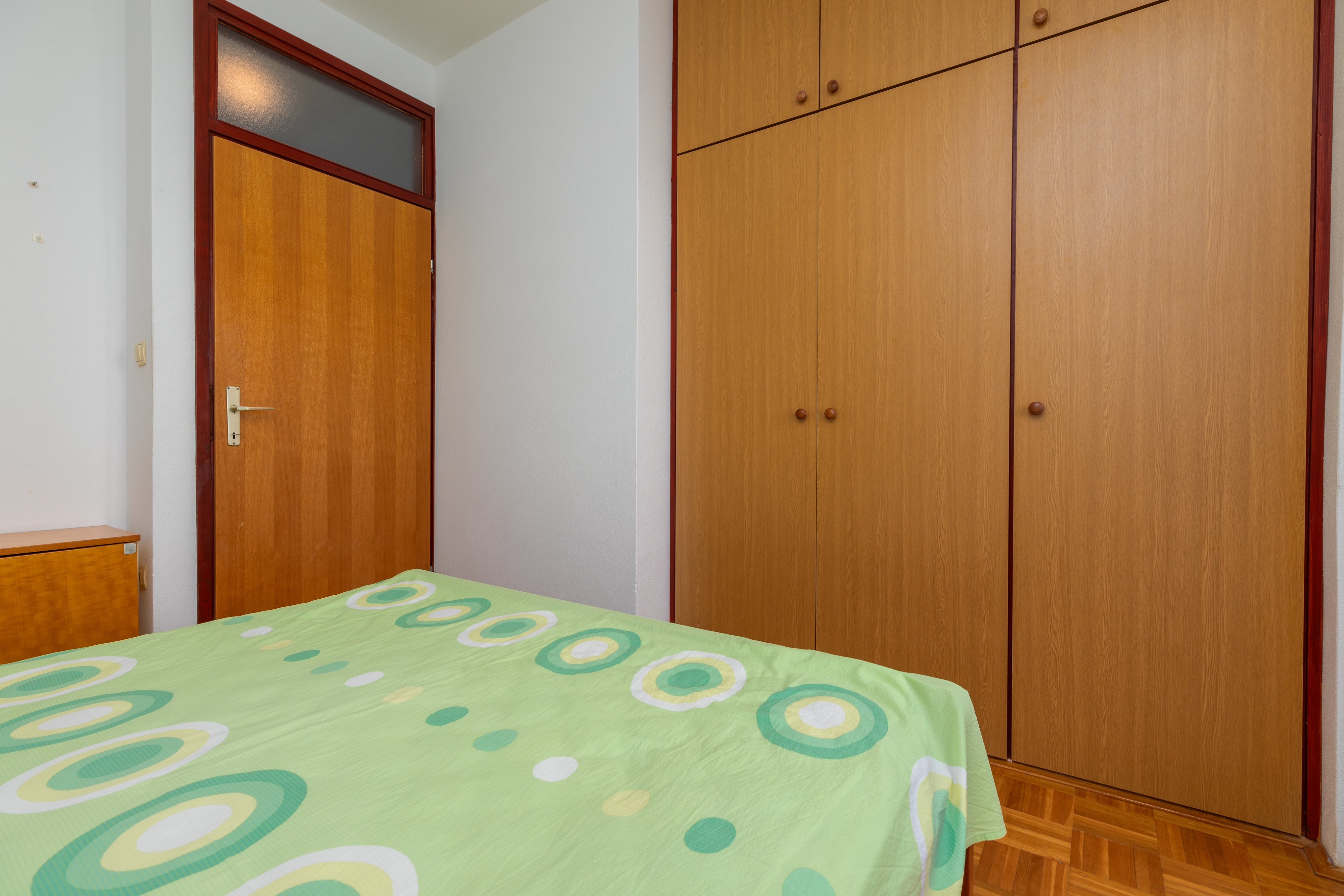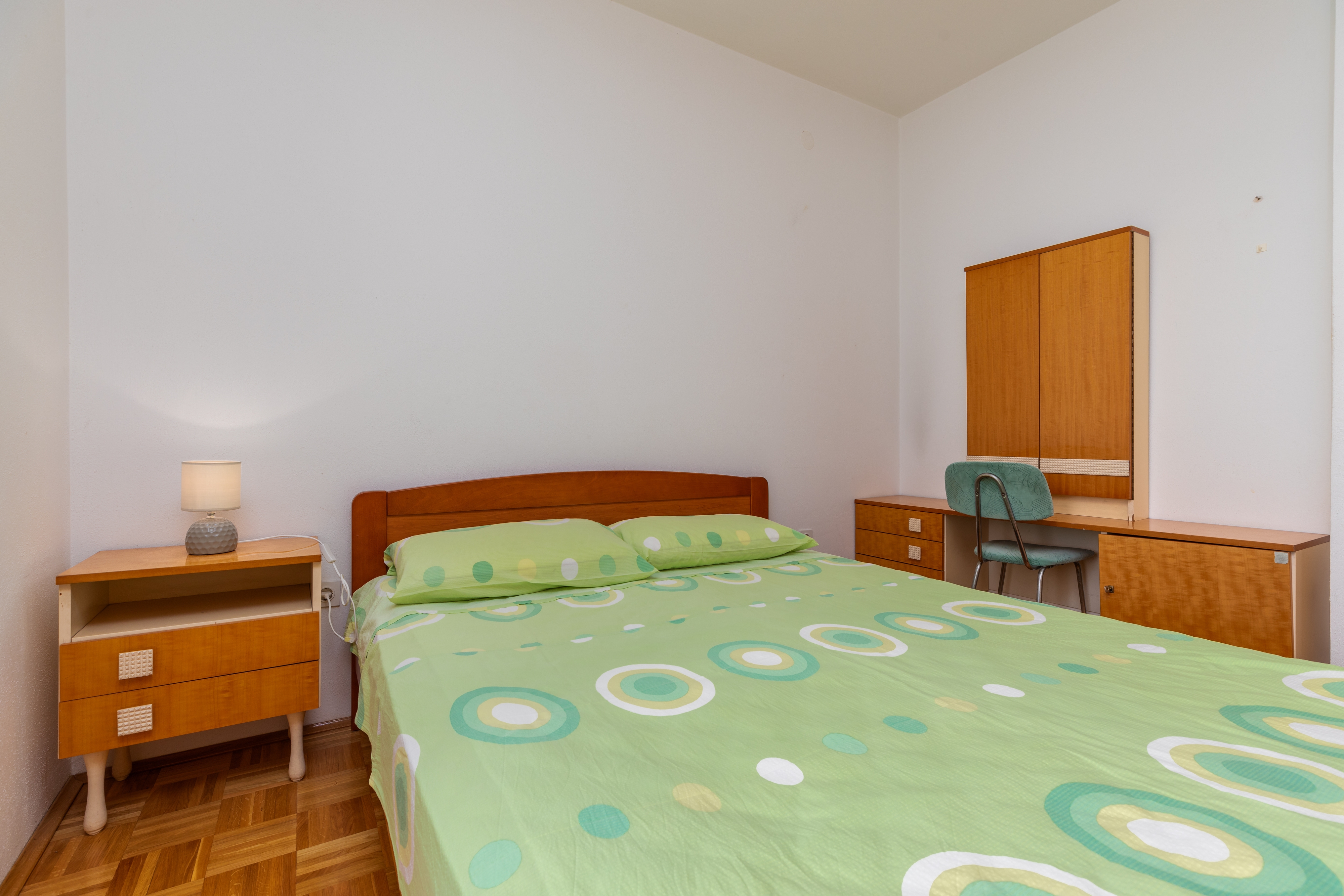 Apartament może przyjąć 4 gości. Łóżka znajdują się w sypialniach, których jest 1, oraz w pokoju dziennym, na powierzchni 43m2. Goście mają dostęp do balkonu, by korzystać z ciepłych, letnich wieczorów. Z apartamentu roztacza się widok na morze. Możliwość przygotowywania posiłków poprzez korzystanie ze wspólnego grilla. WLICZONE W CENĘ: taksa pobytowa, sprzątanie końcowe, klimatyzacja, parking, internet. OBOWIĄZKOWE KOSZTY DODATKOWE: dopłata za krótki termin (procent dopłaty w zalezności od liczby noclegów: 30% - 1, 20% - 2, 10% - 3). Dostępność dodatkowych usług w rezerwowanym terminie oraz ich cenę (jeśli nie jest podana) należy sprawdzić wcześniej. Za dodatowe usługi, które nie zostały uwzględnione w kalkulacji ceny, płaci się bezpośrednio właścicielowi obiektu, pod warunkiem śe gość korzysta z tych usług. Zniżki od ceny podstawowej: bezpłatny dzień 14=13 (przy pobycie, trwającym co najmniej 14 dni, otrzymujecie jeden bezpłatny dzień na pobyt do 31.12.2026).