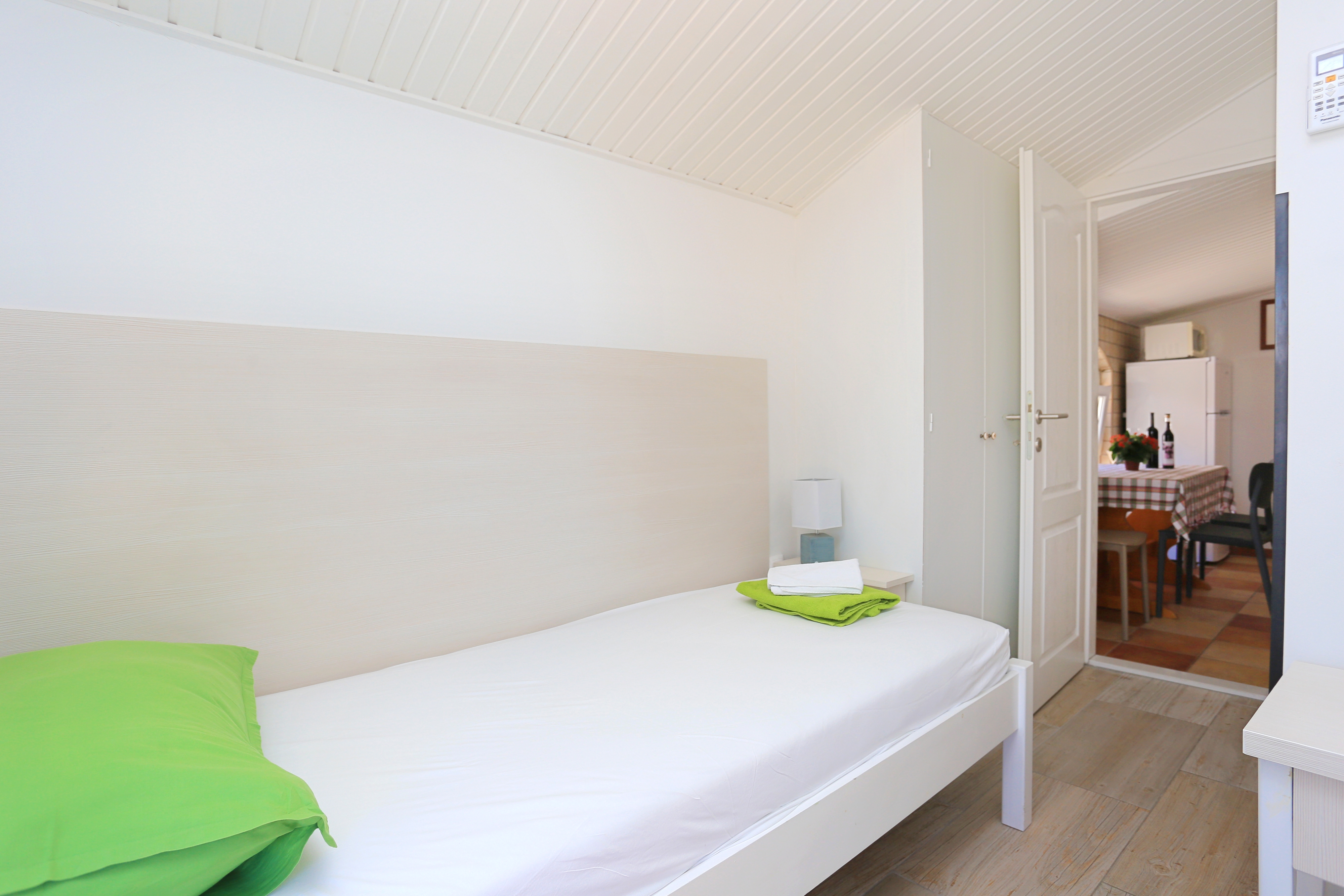 Apartament może przyjąć 4 gości. Łóżka znajdują się w sypialniach, których jest 2, na powierzchni 33m2. Goście mają dostęp do tarasu, by korzystać z ciepłych, letnich wieczorów. Z apartamentu roztacza się widok na morze. WLICZONE W CENĘ: taksa pobytowa, sprzątanie końcowe, klimatyzacja, parking, internet, miejsce do cumowania łodzi, łóżeczko dziecięce, żelazko, deska do prasowania, suszarka do włosów, parasol, leżaki. OBOWIĄZKOWE KOSZTY DODATKOWE: dopłata za krótki termin (procent dopłaty w zalezności od liczby noclegów: 30% - 1, 20% - 2, 10% - 3). Dostępność dodatkowych usług w rezerwowanym terminie oraz ich cenę (jeśli nie jest podana) należy sprawdzić wcześniej. Za dodatowe usługi, które nie zostały uwzględnione w kalkulacji ceny, płaci się bezpośrednio właścicielowi obiektu, pod warunkiem śe gość korzysta z tych usług. Zniżki od ceny podstawowej: bezpłatny dzień 28=25 (na pobyt na 28 dni lub więcej otrzymują Państwo 3 dni gratis na pobyt do 31.12.2026).