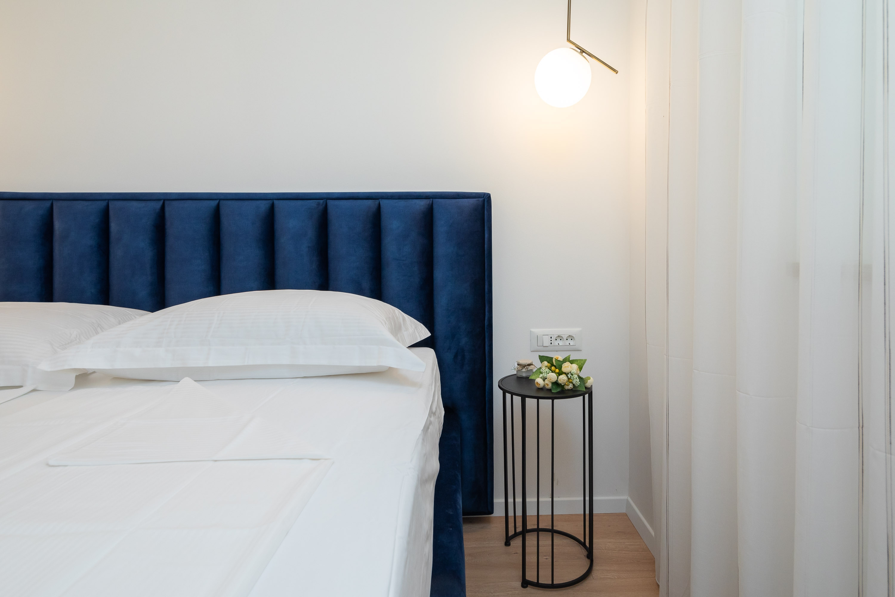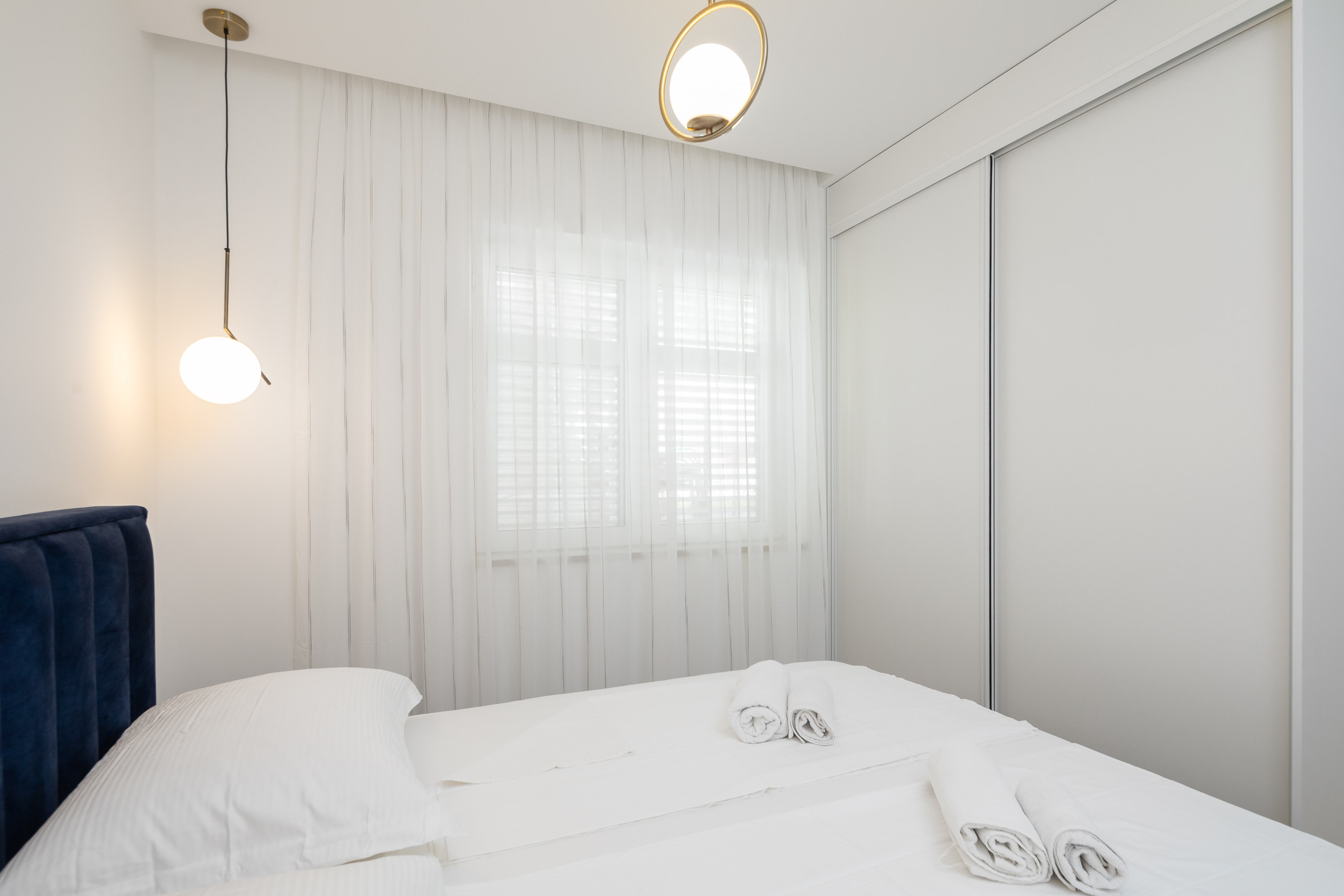 Apartament może przyjąć 4 gości. Łóżka znajdują się w sypialniach, których jest 1, oraz w pokoju dziennym, na powierzchni 40m2. Z apartamentu roztacza się widok na morze. Możliwość przygotowywania posiłków poprzez korzystanie ze wspólnego grilla. Rezerwowana kwatera ma taras wspólny z inną kwaterą. WLICZONE W CENĘ: taksa pobytowa, sprzątanie końcowe, klimatyzacja, parking, internet, pranie bielizny. OBOWIĄZKOWE KOSZTY DODATKOWE: dopłata za krótki termin (procent dopłaty w zalezności od liczby noclegów: 30% - 1, 20% - 2, 10% - 3). Dostępność dodatkowych usług w rezerwowanym terminie oraz ich cenę (jeśli nie jest podana) należy sprawdzić wcześniej. Za dodatowe usługi, które nie zostały uwzględnione w kalkulacji ceny, płaci się bezpośrednio właścicielowi obiektu, pod warunkiem śe gość korzysta z tych usług.