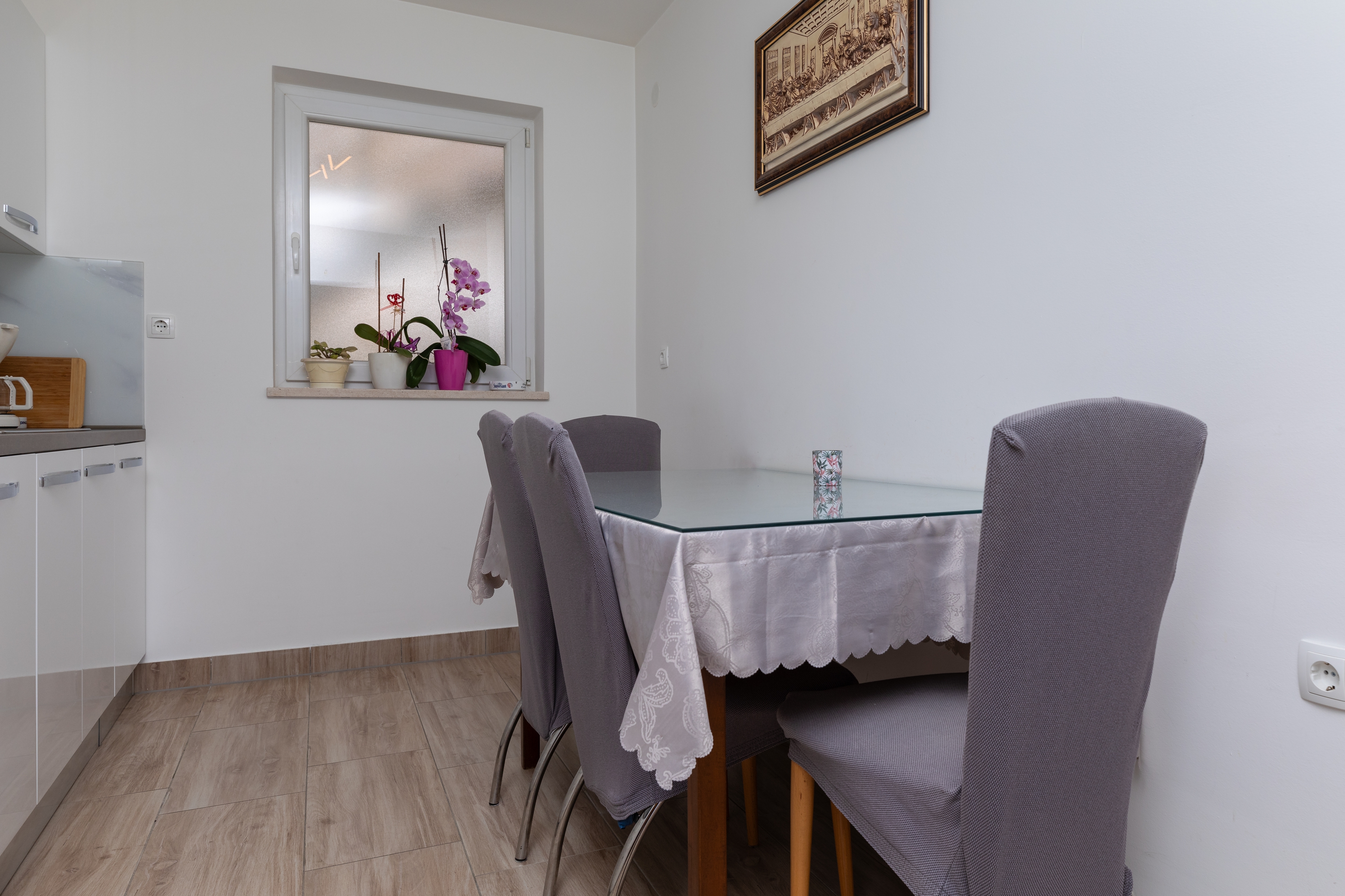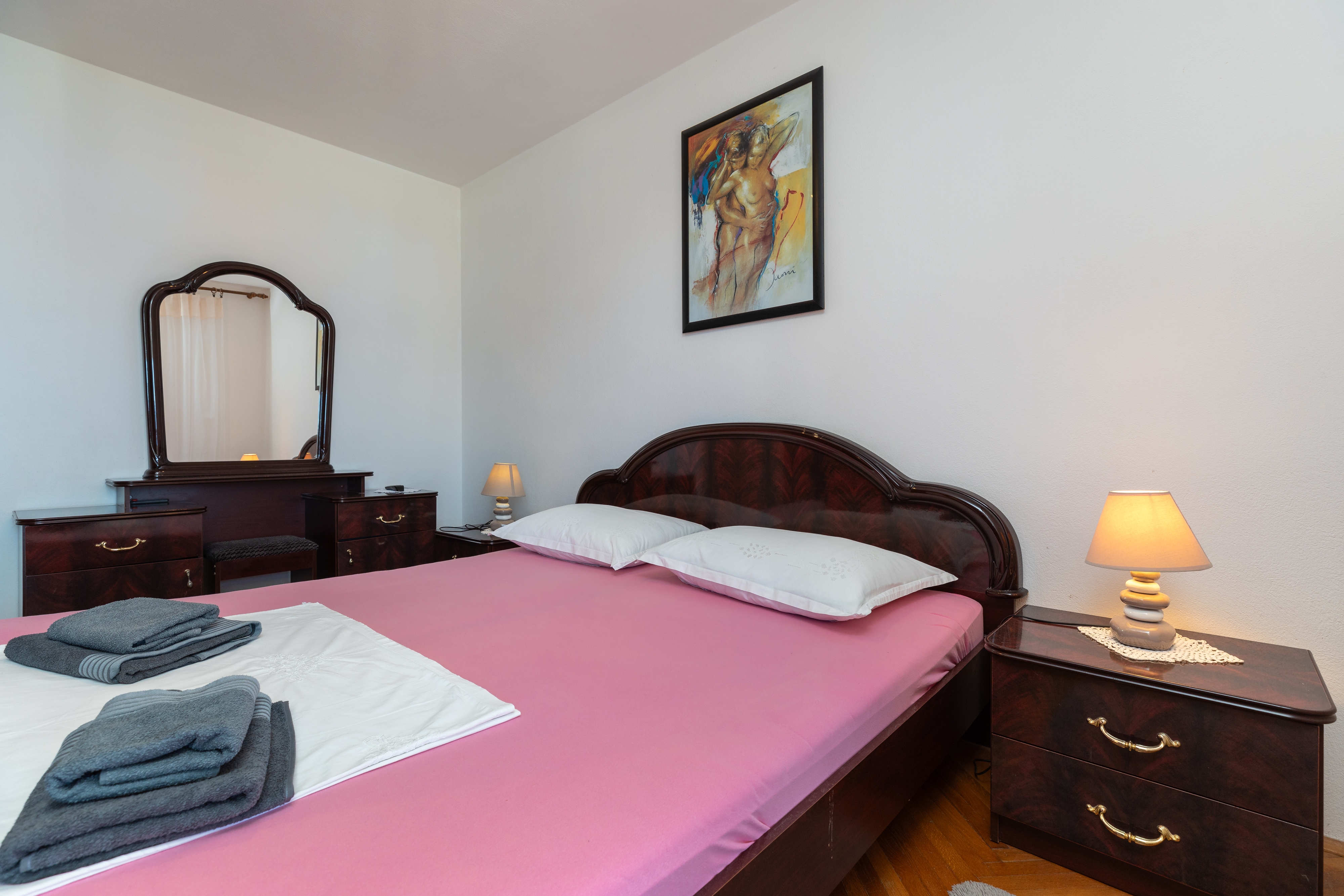 Apartament może przyjąć 6 gości. Łóżka znajdują się w sypialniach, których jest 3, na powierzchni 84m2. Goście mają dostęp do balkonu, by korzystać z ciepłych, letnich wieczorów. Z apartamentu roztacza się widok na morze. Możliwość przygotowywania posiłków poprzez korzystanie ze wspólnego grilla. WLICZONE W CENĘ: taksa pobytowa, sprzątanie końcowe, parking, internet, łóżeczko dziecięce, suszarka do włosów, parasol. OBOWIĄZKOWE KOSZTY DODATKOWE: dopłata za krótki termin (procent dopłaty w zalezności od liczby noclegów: 30% - 1, 20% - 2, 10% - 3). NIEOBOWIĄZKOWE KOSZTY DODATKOWE: klimatyzacja (5,00 € za nocleg), dostawka (5,00 € za nocleg). Dostępność dodatkowych usług w rezerwowanym terminie oraz ich cenę (jeśli nie jest podana) należy sprawdzić wcześniej. Za dodatowe usługi, które nie zostały uwzględnione w kalkulacji ceny, płaci się bezpośrednio właścicielowi obiektu, pod warunkiem śe gość korzysta z tych usług.