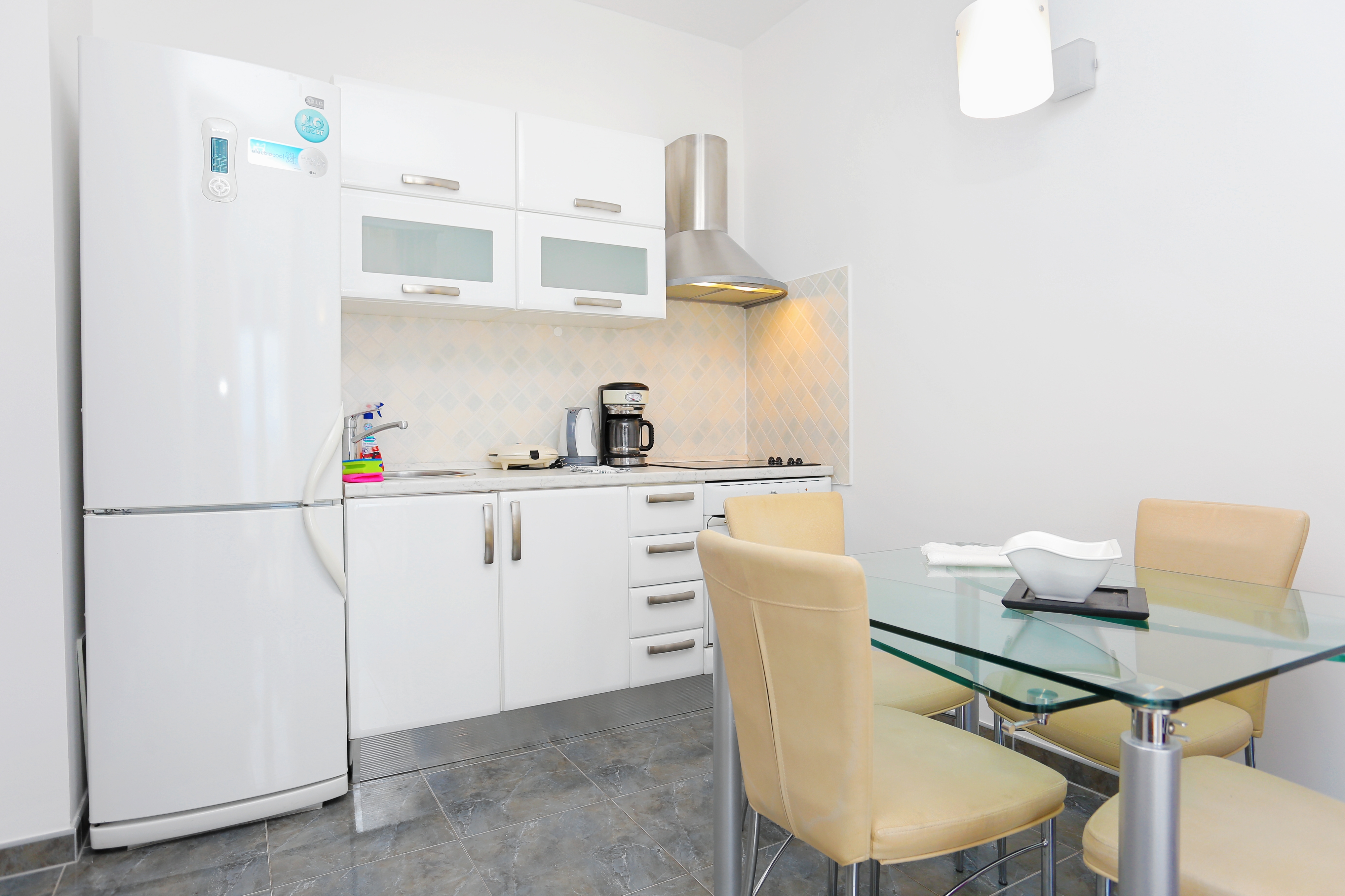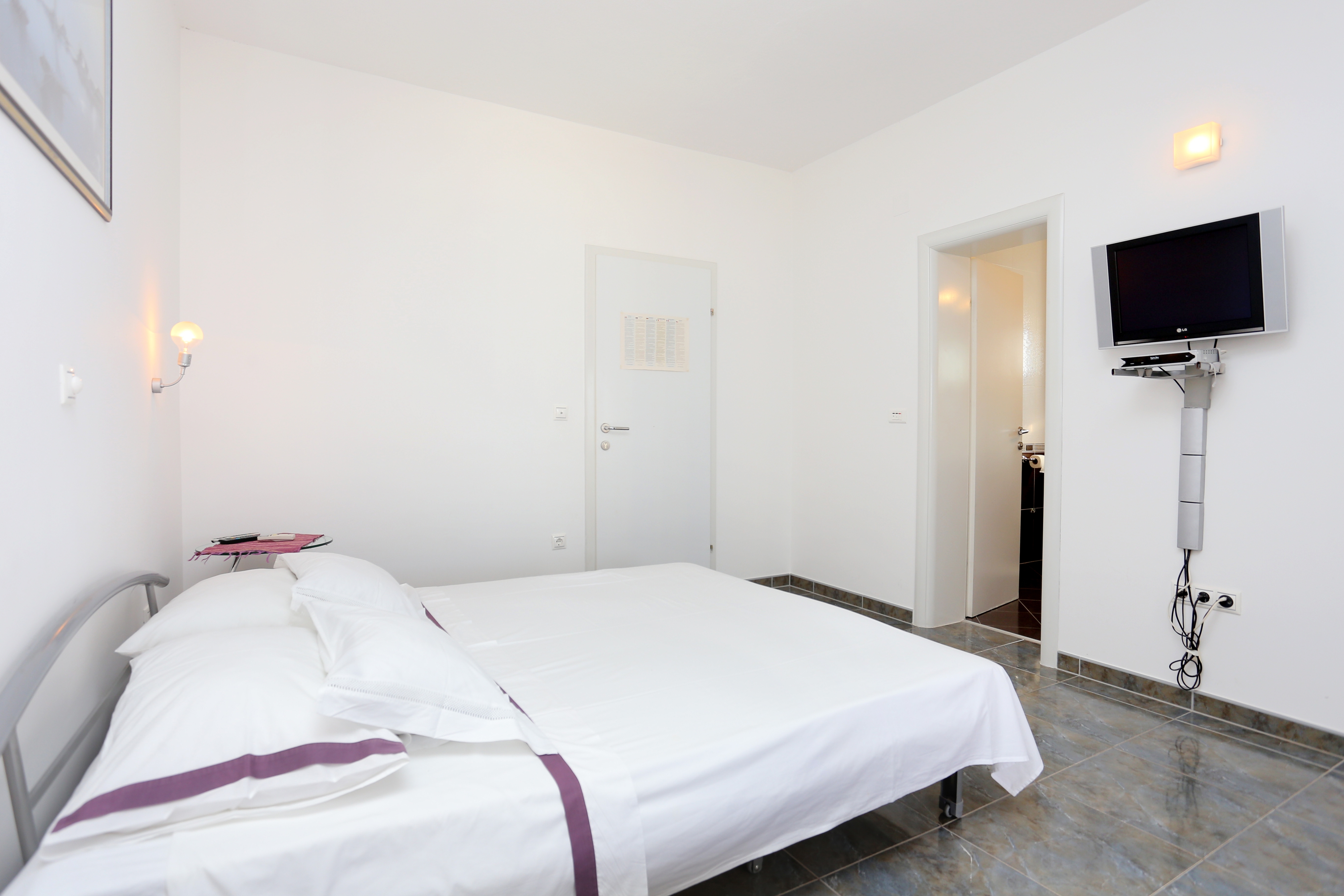 Studio może przyjąć 3 gości. Łóżka znajdują się w sypialniach, których jest 1, na powierzchni 29m2. Goście mają dostęp do tarasu, by korzystać z ciepłych, letnich wieczorów. Z apartamentu typu studio roztacza się widok na morze. Możliwość przygotowywania posiłków poprzez korzystanie ze wspólnego grilla. WLICZONE W CENĘ: taksa pobytowa, sprzątanie końcowe, klimatyzacja, parking, internet, miejsce do cumowania łodzi, łóżeczko dziecięce, przenośny grill. OBOWIĄZKOWE KOSZTY DODATKOWE: dopłata za krótki termin (procent dopłaty w zalezności od liczby noclegów: 30% - 1, 20% - 2, 10% - 3). NIEOBOWIĄZKOWE KOSZTY DODATKOWE: pranie bielizny (5,00 € pranie). Dostępność dodatkowych usług w rezerwowanym terminie oraz ich cenę (jeśli nie jest podana) należy sprawdzić wcześniej. Za dodatowe usługi, które nie zostały uwzględnione w kalkulacji ceny, płaci się bezpośrednio właścicielowi obiektu, pod warunkiem śe gość korzysta z tych usług.