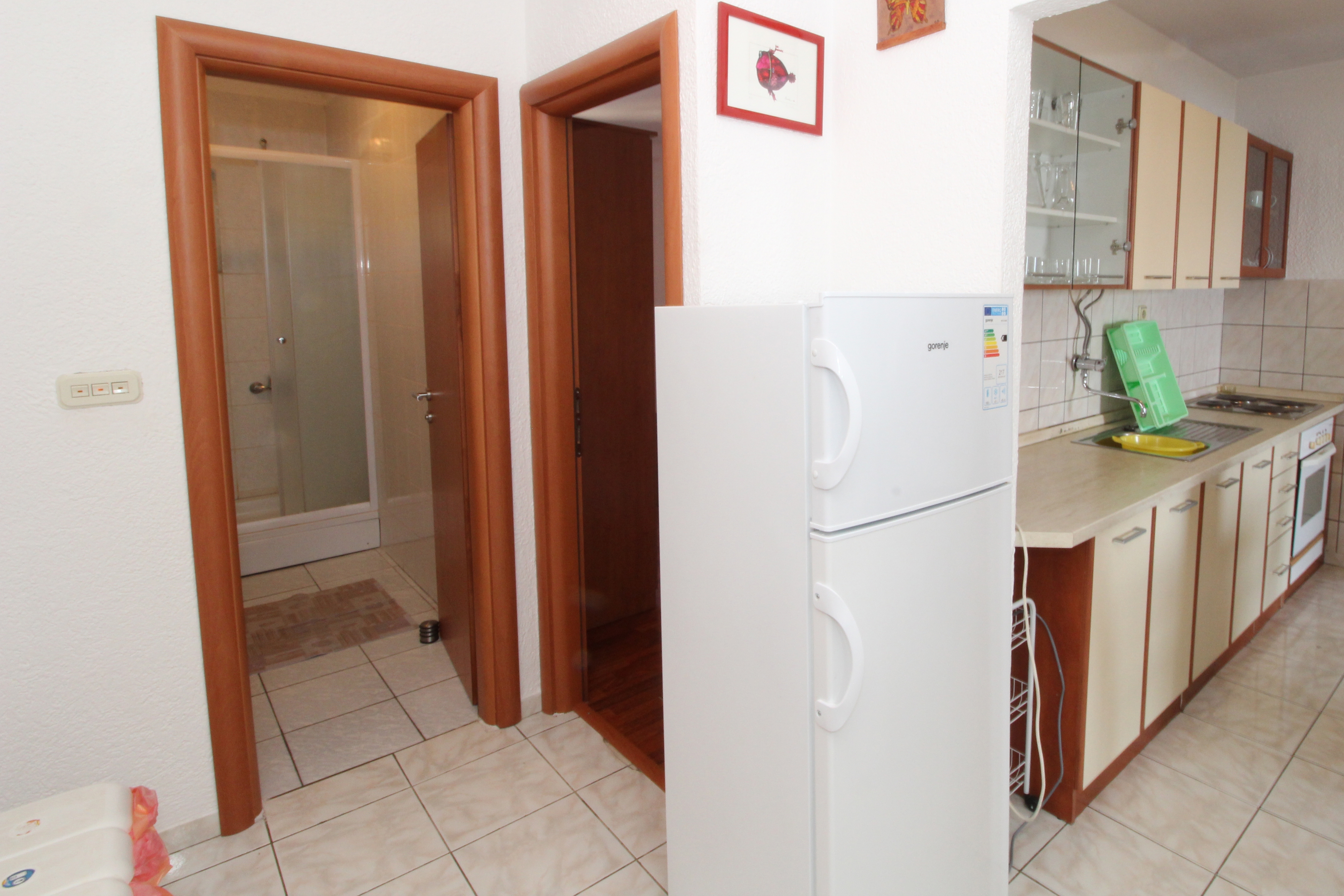 Apartament może przyjąć 6 gości. Łóżka znajdują się w sypialniach, których jest 2, na powierzchni 57m2. Goście mają dostęp do tarasu, by korzystać z ciepłych, letnich wieczorów. Z apartamentu roztacza się widok na morze. Możliwość przygotowywania posiłków poprzez korzystanie ze wspólnego grilla. WLICZONE W CENĘ: taksa pobytowa, sprzątanie końcowe, parking, internet, żelazko, deska do prasowania, suszarka do włosów. OBOWIĄZKOWE KOSZTY DODATKOWE: dopłata za krótki termin (procent dopłaty w zalezności od liczby noclegów: 30% - 1, 20% - 2, 10% - 3). NIEOBOWIĄZKOWE KOSZTY DODATKOWE: klimatyzacja (5,00 € za nocleg). Dostępność dodatkowych usług w rezerwowanym terminie oraz ich cenę (jeśli nie jest podana) należy sprawdzić wcześniej. Za dodatowe usługi, które nie zostały uwzględnione w kalkulacji ceny, płaci się bezpośrednio właścicielowi obiektu, pod warunkiem śe gość korzysta z tych usług.