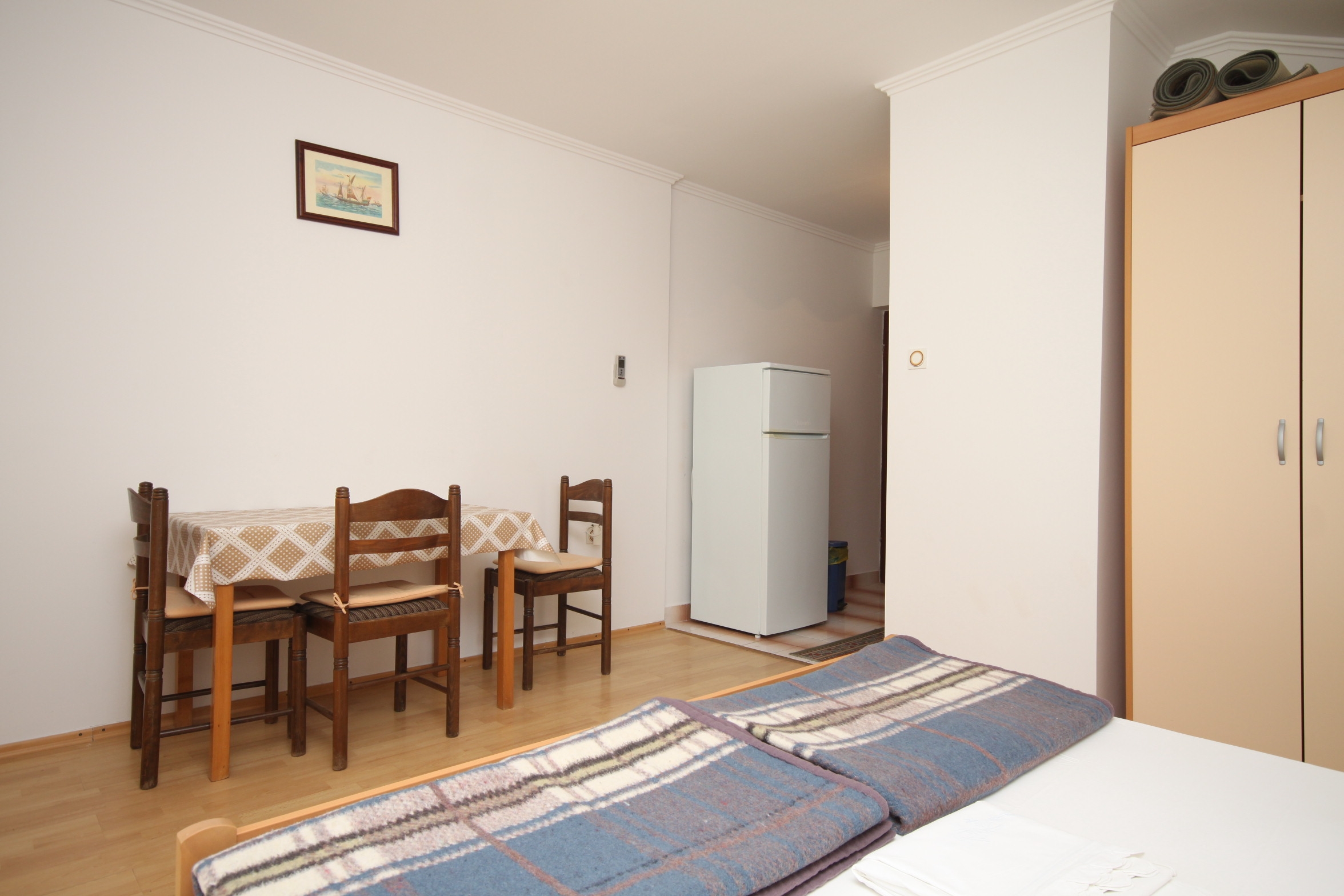Studio może przyjąć 4 gości. Łóżka znajdują się w sypialniach, których jest 1, oraz w pokoju dziennym, na powierzchni 30m2. Goście mają dostęp do tarasu, by korzystać z ciepłych, letnich wieczorów. Z apartamentu typu studio roztacza się widok na morze. Możliwość przygotowywania posiłków poprzez korzystanie ze wspólnego grilla. Kwatera ma pomieszczenia, które są oddzielone od reszty tej kwatery. WLICZONE W CENĘ: taksa pobytowa, sprzątanie końcowe, klimatyzacja, parking, internet, miejsce do cumowania łodzi. OBOWIĄZKOWE KOSZTY DODATKOWE: dopłata za krótki termin (procent dopłaty w zalezności od liczby noclegów: 30% - 1, 20% - 2, 10% - 3). Dostępność dodatkowych usług w rezerwowanym terminie oraz ich cenę (jeśli nie jest podana) należy sprawdzić wcześniej. Za dodatowe usługi, które nie zostały uwzględnione w kalkulacji ceny, płaci się bezpośrednio właścicielowi obiektu, pod warunkiem śe gość korzysta z tych usług. Zniżki od ceny podstawowej: bezpłatny dzień 14=13 (przy pobycie, trwającym co najmniej 14 dni, otrzymujecie jeden bezpłatny dzień na pobyt do 31.12.2026).