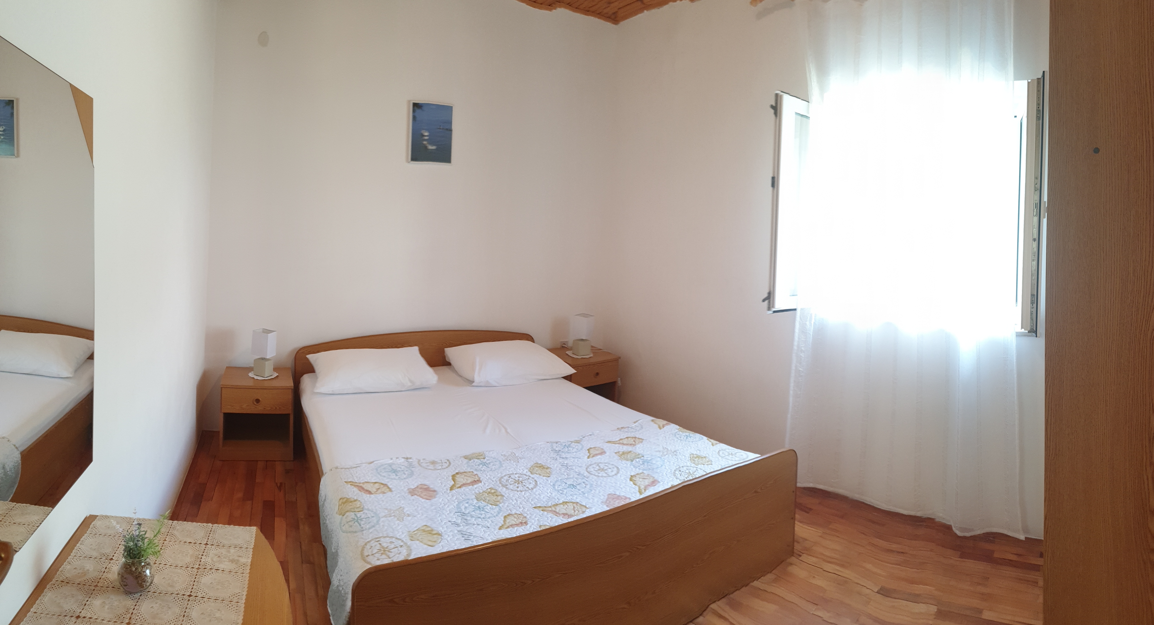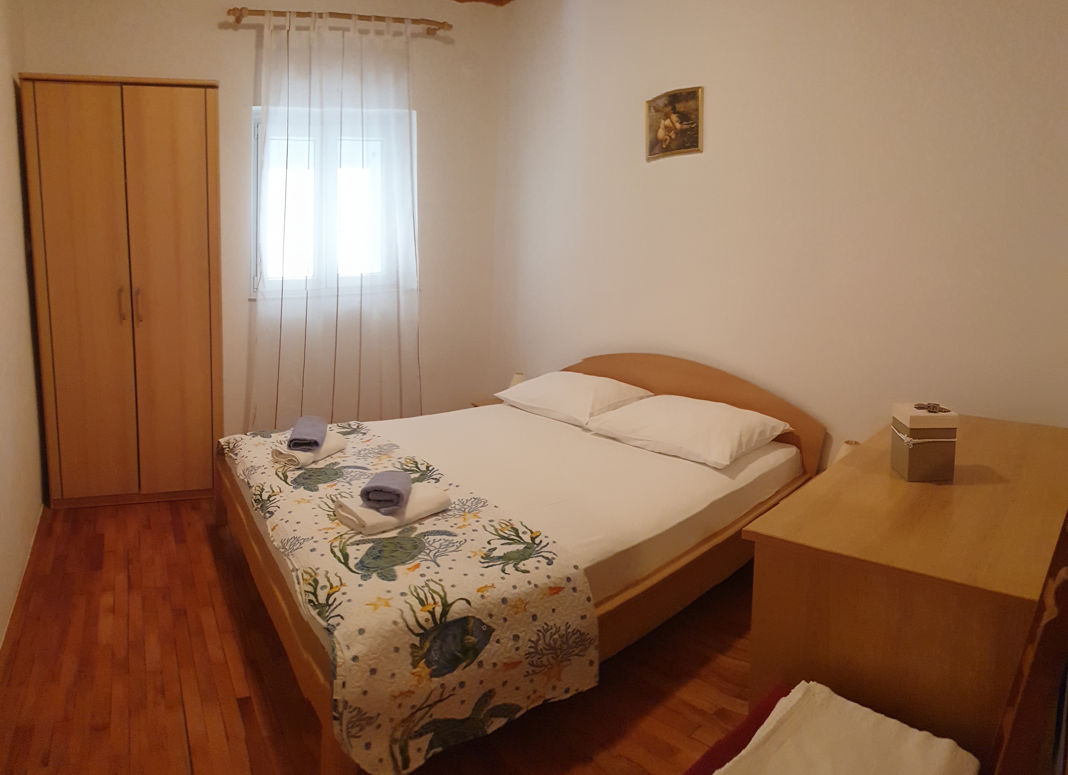 Apartament może przyjąć 6 gości. Łóżka znajdują się w sypialniach, których jest 3, na powierzchni 67m2. Goście mają dostęp do tarasu, by korzystać z ciepłych, letnich wieczorów. Z apartamentu roztacza się widok na morze. Możliwość przygotowywania posiłków poprzez korzystanie ze wspólnego grilla. W kwaterze dozwolony jest pobyt zwierzęcia domowego, za dopłatą. WLICZONE W CENĘ: taksa pobytowa, sprzątanie końcowe, klimatyzacja, parking, internet, miejsce do cumowania łodzi. OBOWIĄZKOWE KOSZTY DODATKOWE: dopłata za krótki termin (procent dopłaty w zalezności od liczby noclegów: 30% - 1, 20% - 2, 10% - 3). NIEOBOWIĄZKOWE KOSZTY DODATKOWE: pranie bielizny (5,00 € pranie), zwierzęta domowe (5,00 € za nocleg). Dostępność dodatkowych usług w rezerwowanym terminie oraz ich cenę (jeśli nie jest podana) należy sprawdzić wcześniej. Za dodatowe usługi, które nie zostały uwzględnione w kalkulacji ceny, płaci się bezpośrednio właścicielowi obiektu, pod warunkiem śe gość korzysta z tych usług. Zniżki od ceny podstawowej: bezpłatny dzień 28=25 (na pobyt na 28 dni lub więcej otrzymują Państwo 3 dni gratis na pobyt do 31.12.2026).