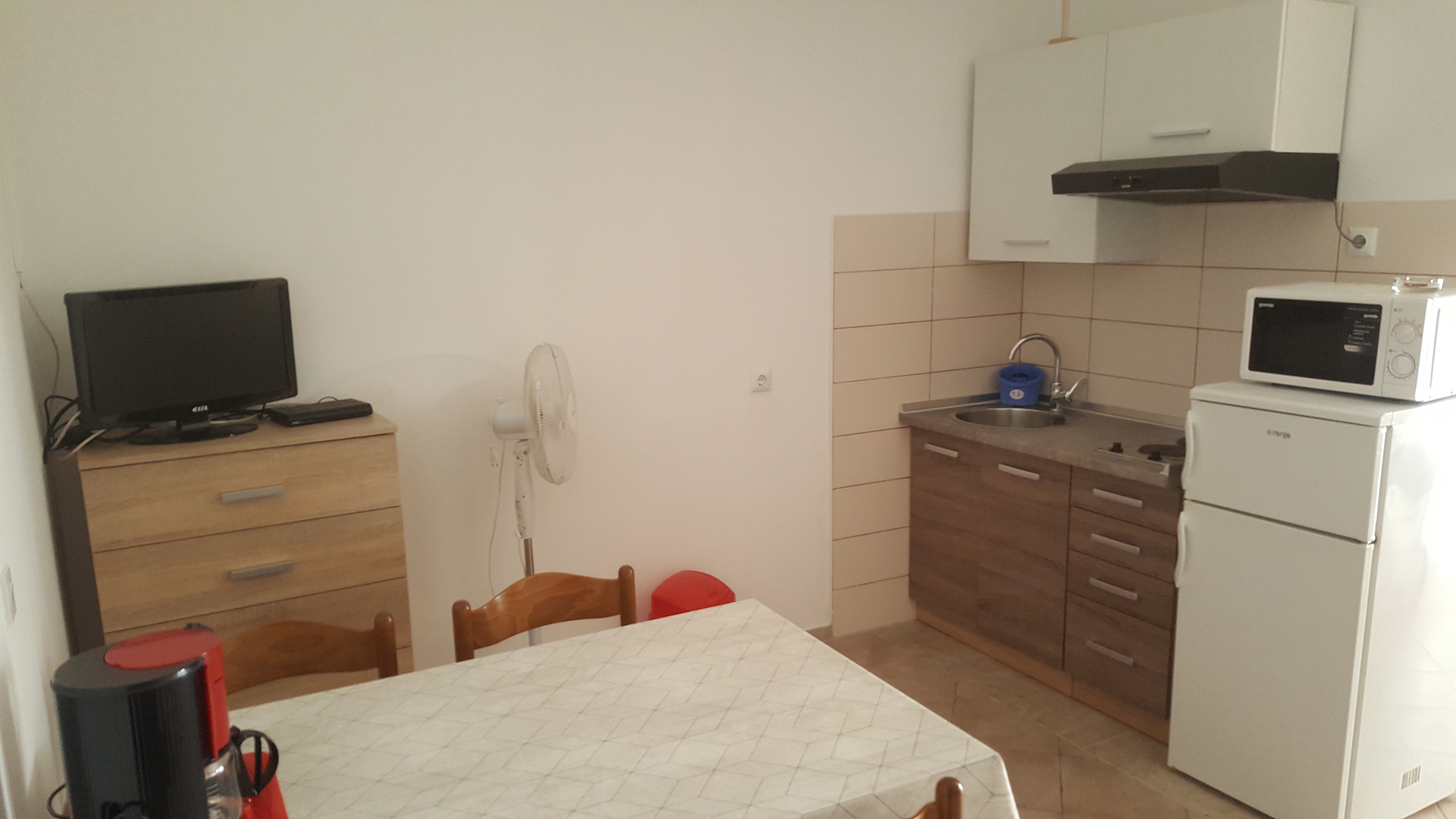 Apartament może przyjąć 4 gości. Łóżka znajdują się w sypialniach, których jest 2, na powierzchni 37m2. Goście mają dostęp do tarasu, by korzystać z ciepłych, letnich wieczorów. Możliwość przygotowywania posiłków poprzez korzystanie ze wspólnego grilla. Kwatera ma pomieszczenia, które są oddzielone od reszty tej kwatery. WLICZONE W CENĘ: taksa pobytowa, sprzątanie końcowe, klimatyzacja, parking, internet, łóżeczko dziecięce, deska do prasowania, suszarka do włosów, przenośny grill. OBOWIĄZKOWE KOSZTY DODATKOWE: dopłata za krótki termin (procent dopłaty w zalezności od liczby noclegów: 30% - 1, 20% - 2, 10% - 3). NIEOBOWIĄZKOWE KOSZTY DODATKOWE: miejsce do cumowania łodzi (5,00 € za nocleg), dostawka (8,00 € za nocleg). Dostępność dodatkowych usług w rezerwowanym terminie oraz ich cenę (jeśli nie jest podana) należy sprawdzić wcześniej. Za dodatowe usługi, które nie zostały uwzględnione w kalkulacji ceny, płaci się bezpośrednio właścicielowi obiektu, pod warunkiem śe gość korzysta z tych usług.