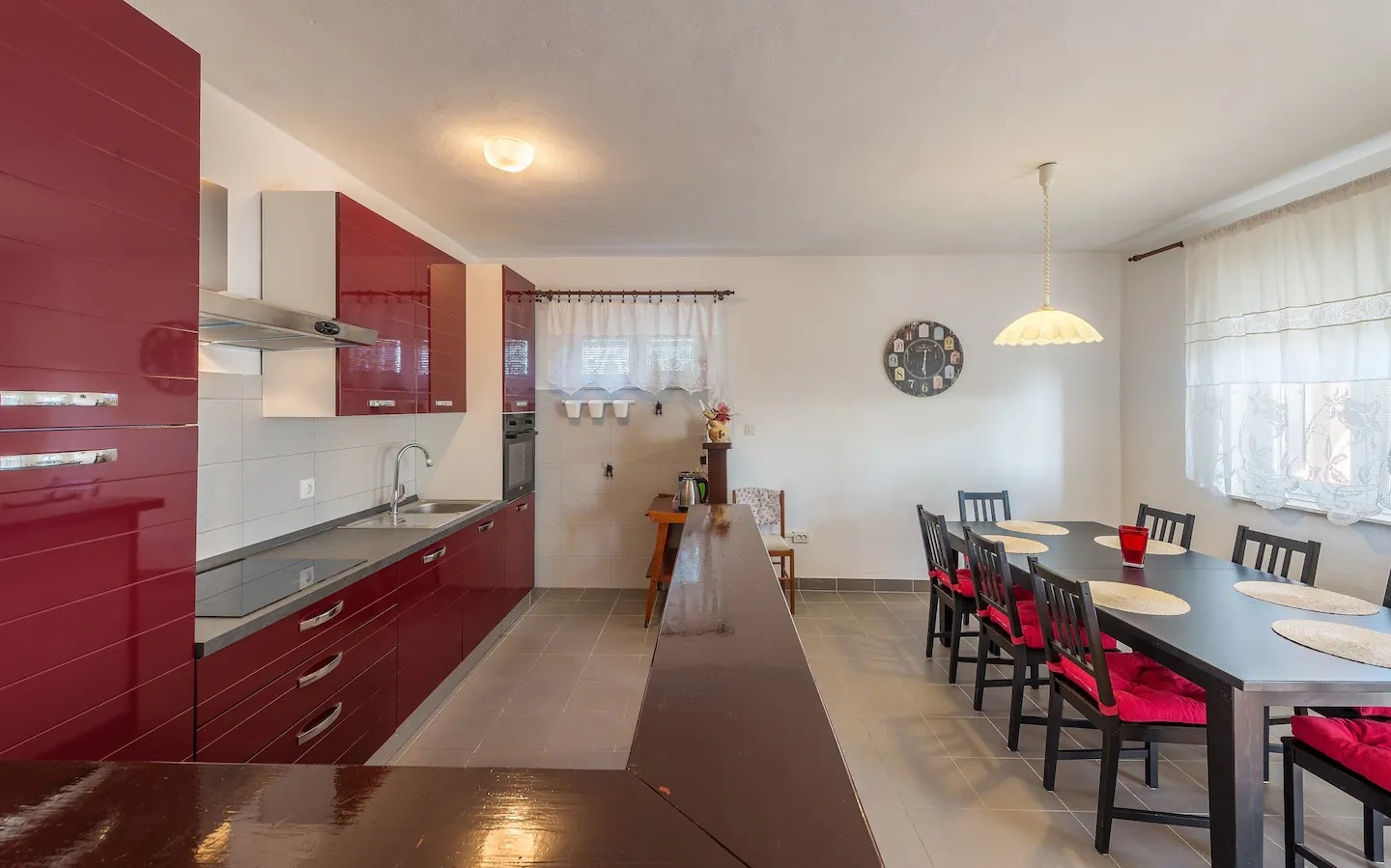 Apartament może przyjąć 10 gości. Łóżka znajdują się w sypialniach, których jest 4, oraz w pokoju dziennym, na powierzchni 97m2. Goście mają dostęp do tarasu, by korzystać z ciepłych, letnich wieczorów. Możliwość przygotowywania posiłków poprzez korzystanie ze wspólnego grilla. W trakcie swojego pobytu goście mogą korzystać ze wspólnego basenu. Do kwatery można przyjechać ze zwierzęciem domowym, a usługa jest wliczona w cenę wynajęcia kwatery. WLICZONE W CENĘ: taksa pobytowa, sprzątanie końcowe, klimatyzacja, basen, parking, internet, zwierzęta domowe, łóżeczko dziecięce, dostawka, żelazko, deska do prasowania, suszarka do włosów. OBOWIĄZKOWE KOSZTY DODATKOWE: dopłata za krótki termin (procent dopłaty w zalezności od liczby noclegów: 30% - 1, 20% - 2, 10% - 3). Dostępność dodatkowych usług w rezerwowanym terminie oraz ich cenę (jeśli nie jest podana) należy sprawdzić wcześniej. Za dodatowe usługi, które nie zostały uwzględnione w kalkulacji ceny, płaci się bezpośrednio właścicielowi obiektu, pod warunkiem śe gość korzysta z tych usług. Zniżki od ceny podstawowej: bezpłatny dzień 14=13 (przy pobycie, trwającym co najmniej 14 dni, otrzymujecie jeden bezpłatny dzień na pobyt do 31.12.2026).