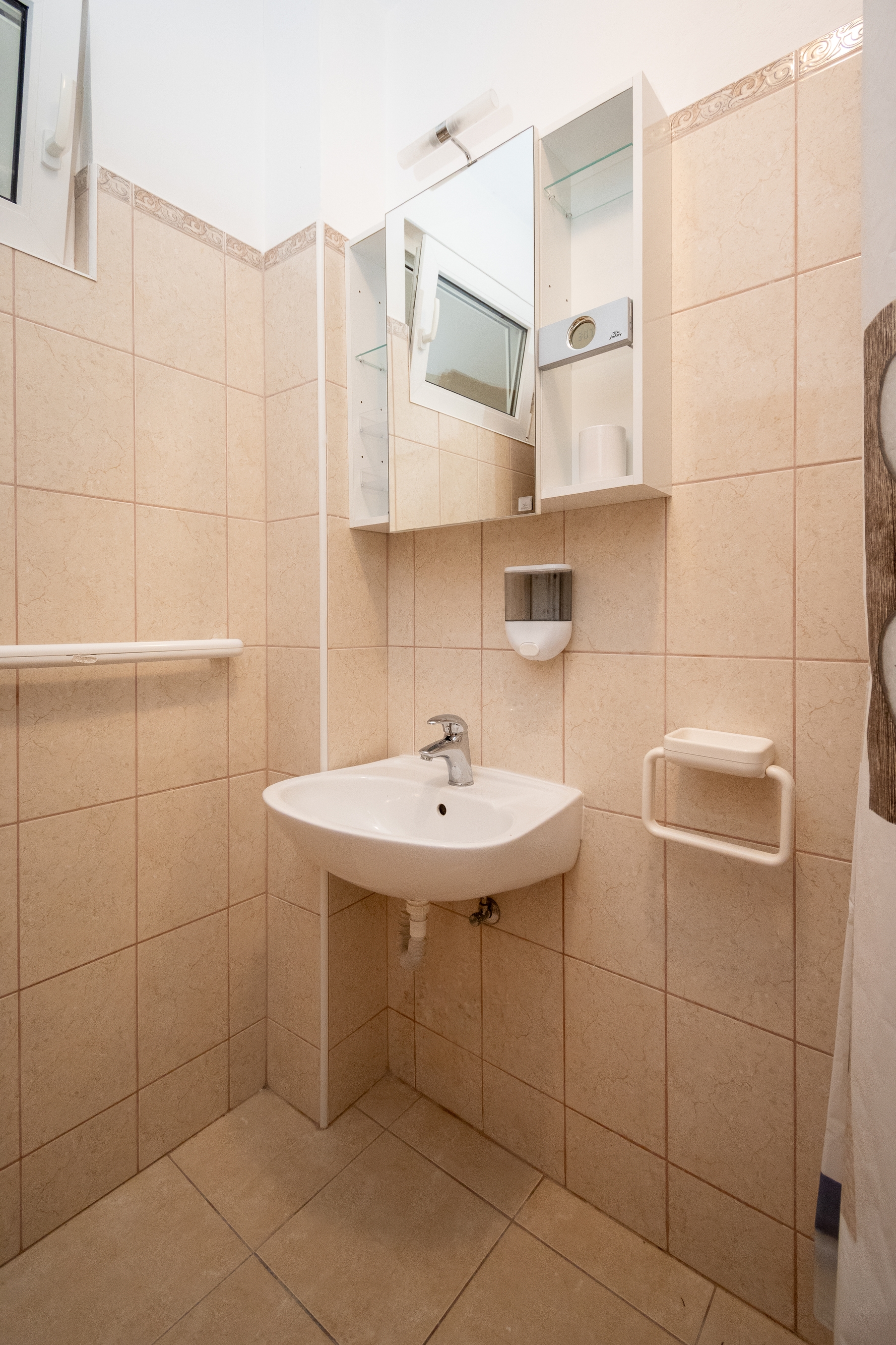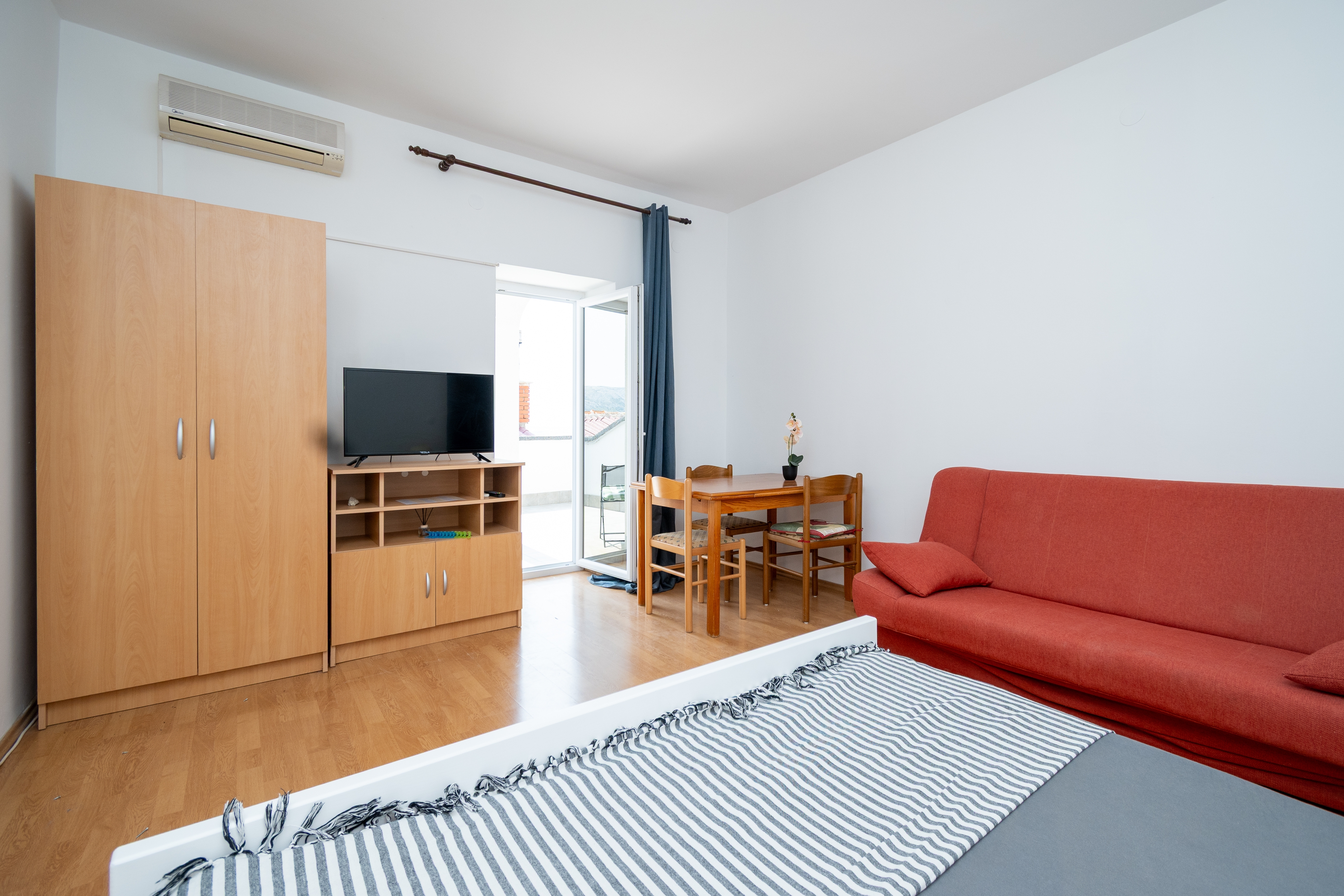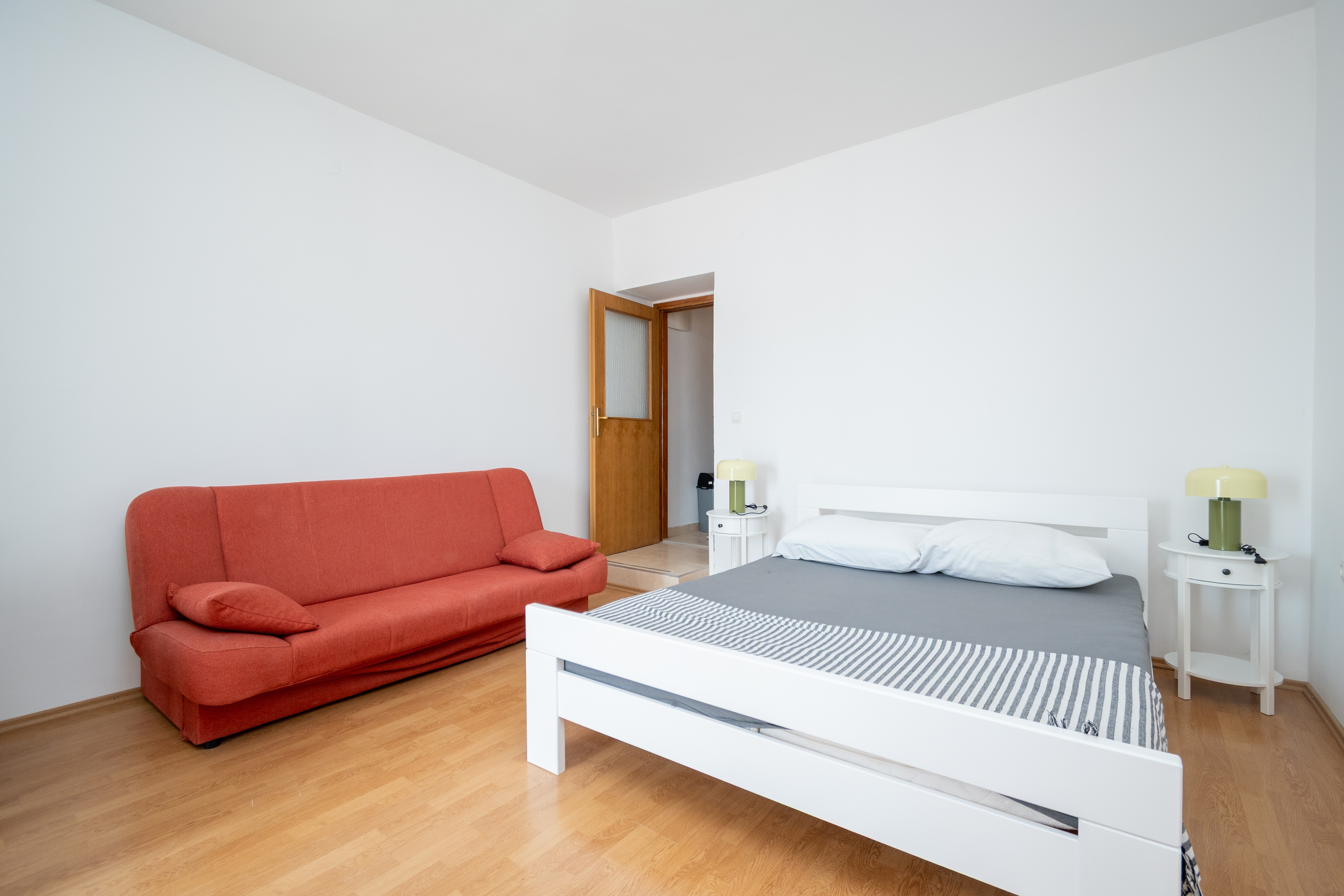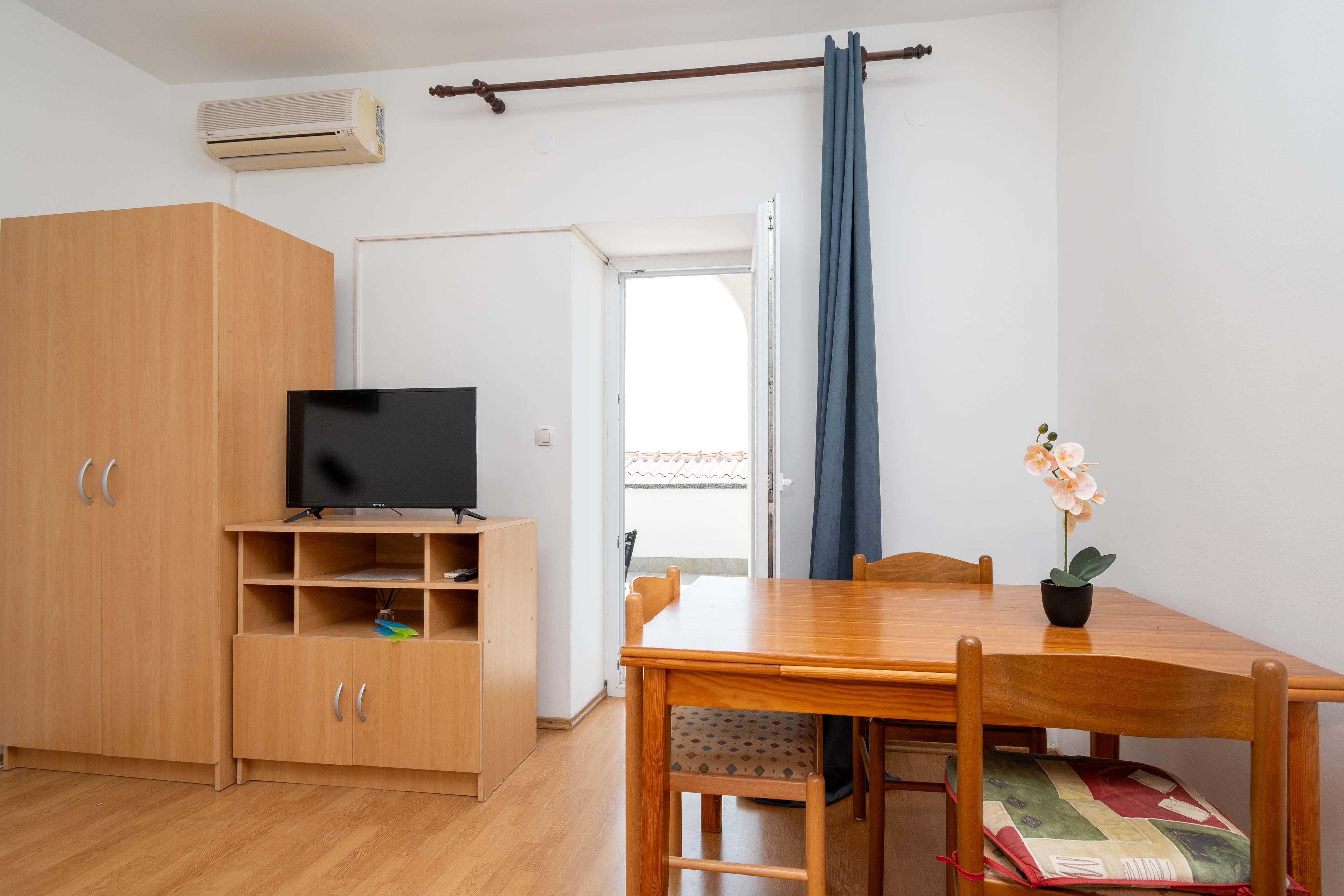 Studio może przyjąć 2 gości. Łóżka znajdują się w sypialniach, których jest 1, na powierzchni 28m2. Goście mają dostęp do tarasu, by korzystać z ciepłych, letnich wieczorów. Z apartamentu typu studio roztacza się widok na morze. Możliwość przygotowywania posiłków poprzez korzystanie ze wspólnego grilla. W trakcie swojego pobytu goście mogą korzystać ze wspólnego basenu. Do kwatery można przyjechać ze zwierzęciem domowym, a usługa jest wliczona w cenę wynajęcia kwatery. W rezerwowanej kwaterze na miejscu jest pobierana kaucja (jej wysokość jest podana na stronie). WLICZONE W CENĘ: taksa pobytowa, sprzątanie końcowe, klimatyzacja, basen, parking, internet, pranie bielizny, zwierzęta domowe, rower, łóżeczko dziecięce, żelazko, deska do prasowania, suszarka do włosów. OBOWIĄZKOWE KOSZTY DODATKOWE: depozyt (200,00 € jednorazowo), dopłata za krótki termin (procent dopłaty w zalezności od liczby noclegów: 30% - 1, 20% - 2, 10% - 3). Dostępność dodatkowych usług w rezerwowanym terminie oraz ich cenę (jeśli nie jest podana) należy sprawdzić wcześniej. Za dodatowe usługi, które nie zostały uwzględnione w kalkulacji ceny, płaci się bezpośrednio właścicielowi obiektu, pod warunkiem śe gość korzysta z tych usług. Zniżki od ceny podstawowej: bezpłatny dzień 21=19 (przy pobycie, trwającym co najmniej 21 dni, trzymujecie dwa bezpłatne dni na pobyt do 31.12.2026).