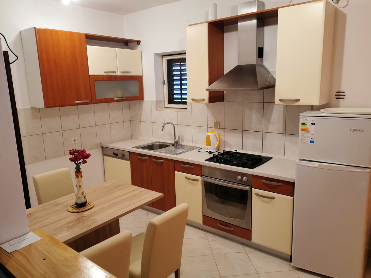 Apartament może przyjąć 4 gości. Łóżka znajdują się w sypialniach, których jest 2, na powierzchni 54m2. Goście mają dostęp do tarasu, by korzystać z ciepłych, letnich wieczorów. Z apartamentu roztacza się widok na morze. Możliwość przygotowywania posiłków poprzez korzystanie ze wspólnego grilla. W kwaterze dozwolony jest pobyt zwierzęcia domowego, za dopłatą. WLICZONE W CENĘ: taksa pobytowa, sprzątanie końcowe, klimatyzacja, parking, internet. NIEOBOWIĄZKOWE KOSZTY DODATKOWE: zwierzęta domowe (6,00 € za nocleg), dostawka (10,00 € za nocleg). Dostępność dodatkowych usług w rezerwowanym terminie oraz ich cenę (jeśli nie jest podana) należy sprawdzić wcześniej. Za dodatowe usługi, które nie zostały uwzględnione w kalkulacji ceny, płaci się bezpośrednio właścicielowi obiektu, pod warunkiem śe gość korzysta z tych usług.