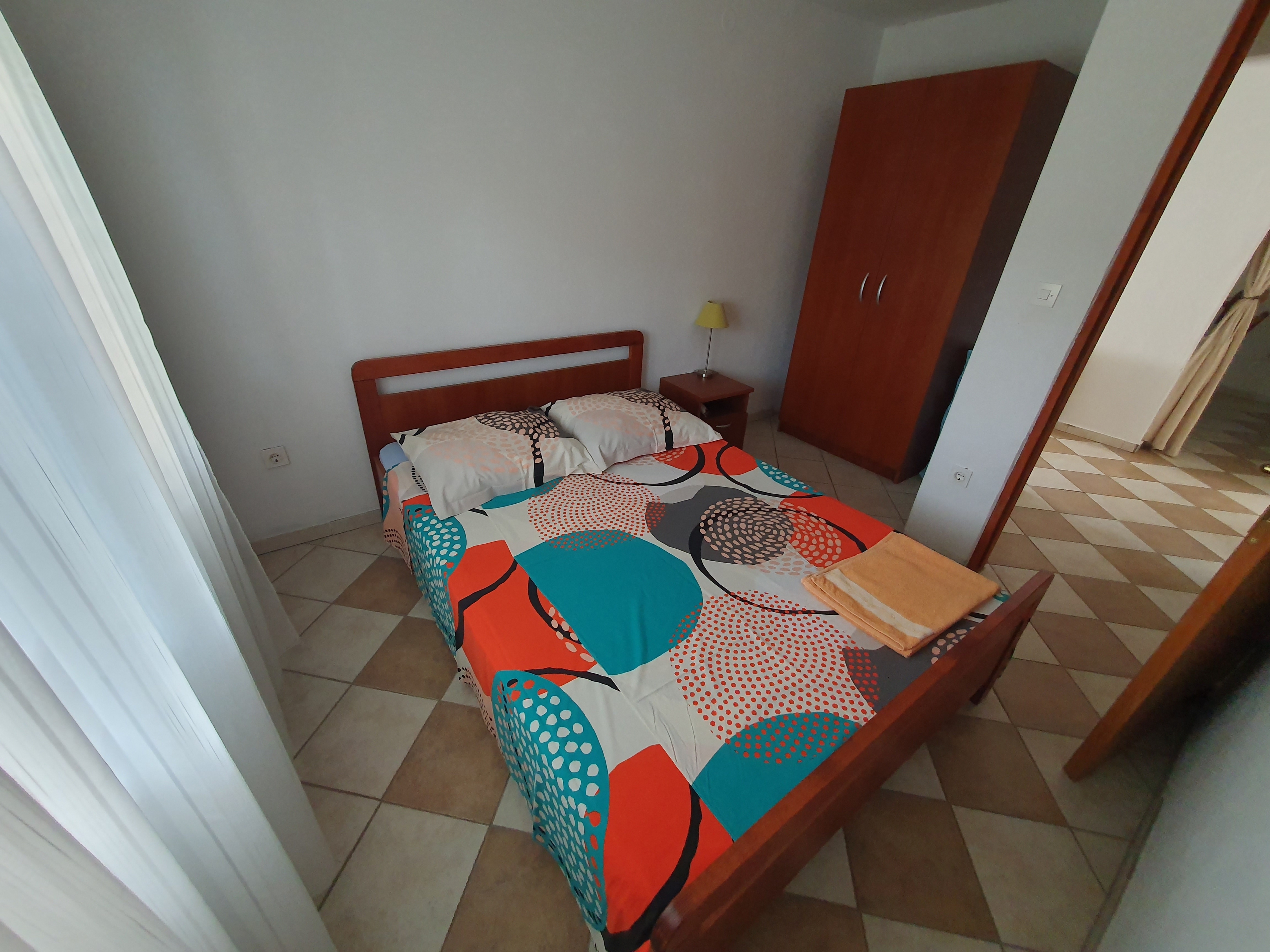 Apartament może przyjąć 6 gości. Łóżka znajdują się w sypialniach, których jest 2, oraz w pokoju dziennym, na powierzchni 60m2. Goście mają dostęp do tarasu, by korzystać z ciepłych, letnich wieczorów. Z apartamentu roztacza się widok na morze. Możliwość przygotowywania posiłków poprzez korzystanie ze wspólnego grilla. W kwaterze dozwolony jest pobyt zwierzęcia domowego, za dopłatą. WLICZONE W CENĘ: taksa pobytowa, sprzątanie końcowe, klimatyzacja, parking, internet, pranie bielizny, łóżeczko dziecięce, suszarka do włosów, leżaki. OBOWIĄZKOWE KOSZTY DODATKOWE: dopłata za krótki termin (procent dopłaty w zalezności od liczby noclegów: 30% - 1, 20% - 2, 10% - 3). NIEOBOWIĄZKOWE KOSZTY DODATKOWE: zwierzęta domowe (10,00 € za nocleg). Dostępność dodatkowych usług w rezerwowanym terminie oraz ich cenę (jeśli nie jest podana) należy sprawdzić wcześniej. Za dodatowe usługi, które nie zostały uwzględnione w kalkulacji ceny, płaci się bezpośrednio właścicielowi obiektu, pod warunkiem śe gość korzysta z tych usług. Zniżki od ceny podstawowej: bezpłatny dzień 14=13 (przy pobycie, trwającym co najmniej 14 dni, otrzymujecie jeden bezpłatny dzień na pobyt do 31.12.2026).