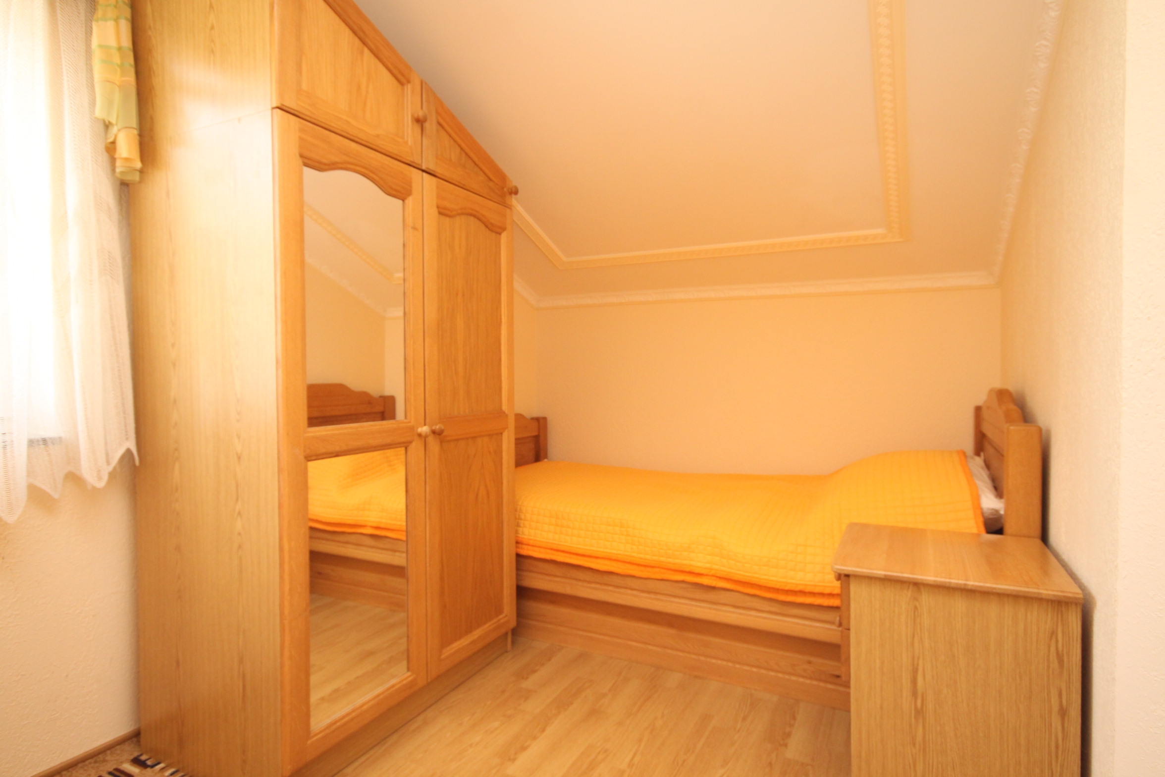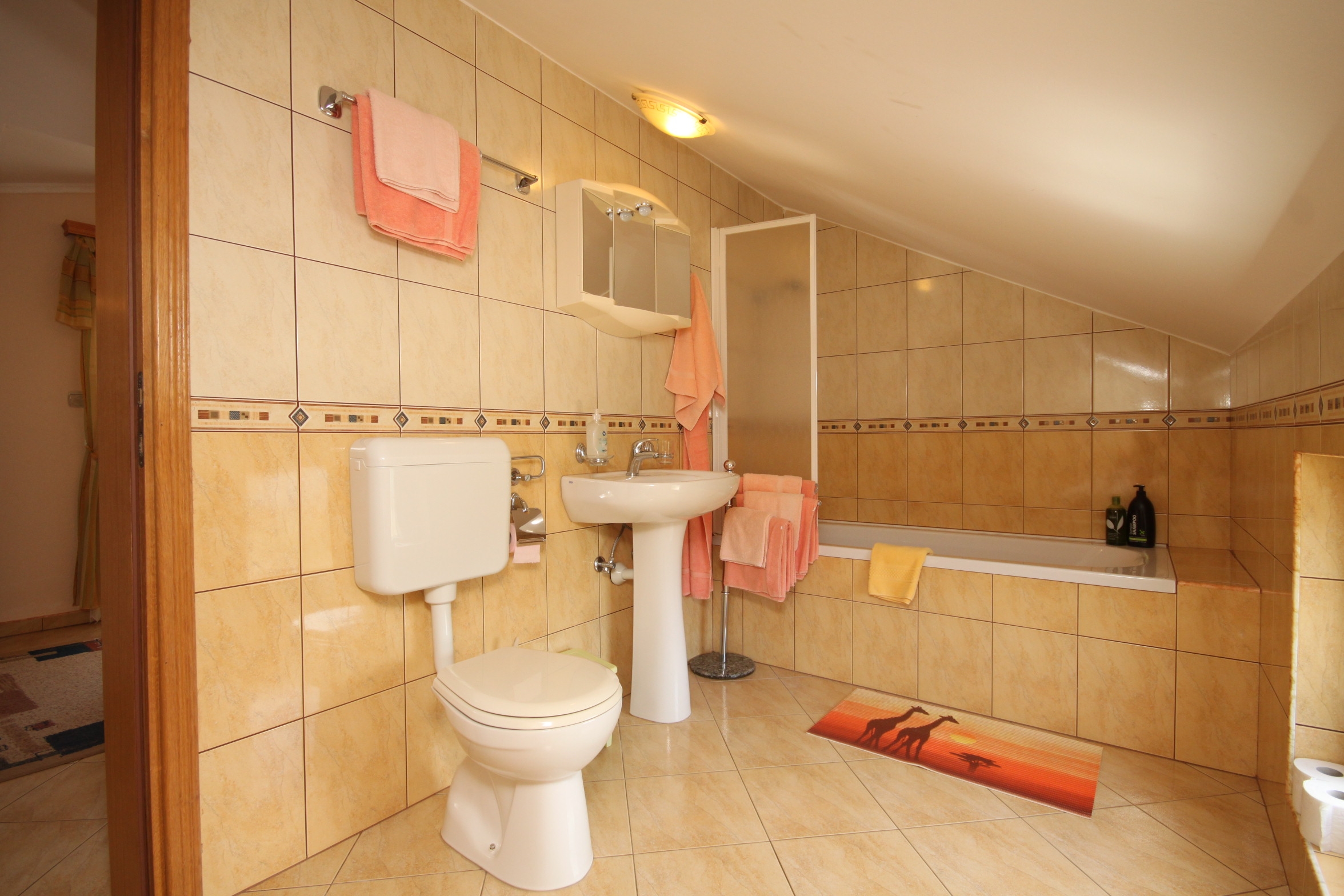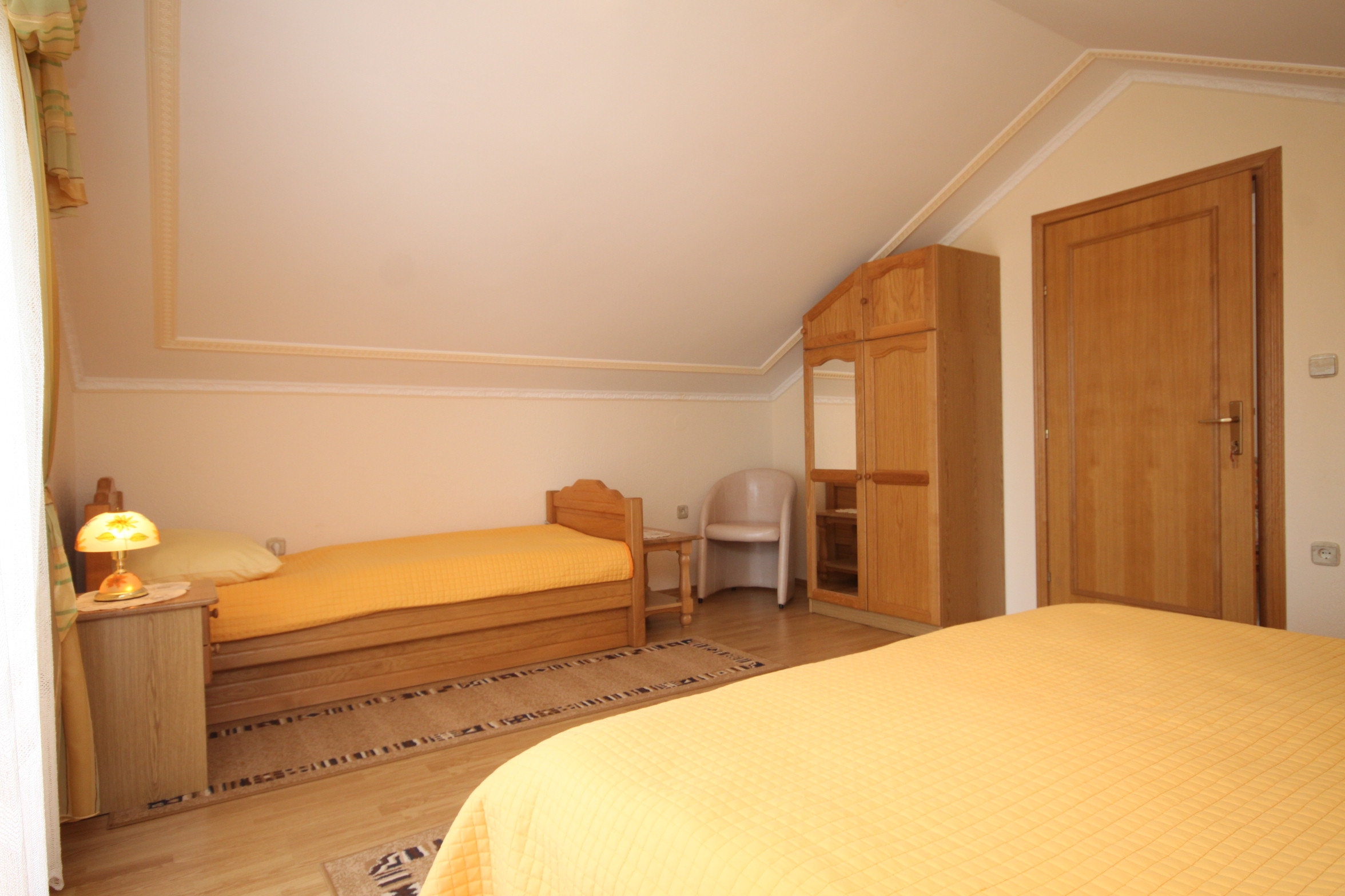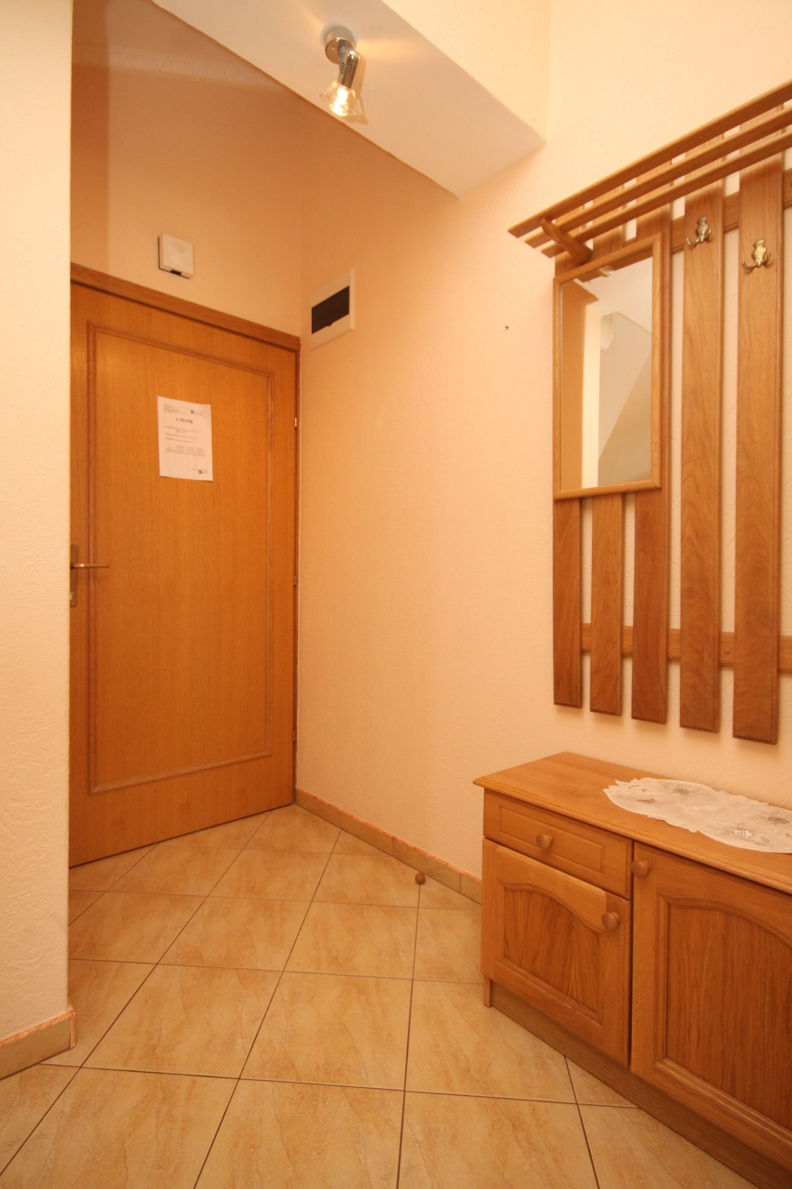 Apartament może przyjąć 6 gości. Łóżka znajdują się w sypialniach, których jest 2, na powierzchni 63m2. Goście mają dostęp do tarasu, by korzystać z ciepłych, letnich wieczorów. Z apartamentu roztacza się widok na morze. Możliwość przygotowywania posiłków poprzez korzystanie ze wspólnego grilla. WLICZONE W CENĘ: sprzątanie końcowe, klimatyzacja, parking, internet, żelazko, deska do prasowania, suszarka do włosów, leżaki. OBOWIĄZKOWE KOSZTY DODATKOWE: taksa pobytowa (dorośli 0,93 € - 1,50 € noclegosoba, zniżka dla dzieci w wieku 12 - 17 lat), dopłata za krótki termin (procent dopłaty w zalezności od liczby noclegów: 30% - 1, 20% - 2, 10% - 3). Dostępność dodatkowych usług w rezerwowanym terminie oraz ich cenę (jeśli nie jest podana) należy sprawdzić wcześniej. Za dodatowe usługi, które nie zostały uwzględnione w kalkulacji ceny, płaci się bezpośrednio właścicielowi obiektu, pod warunkiem śe gość korzysta z tych usług.