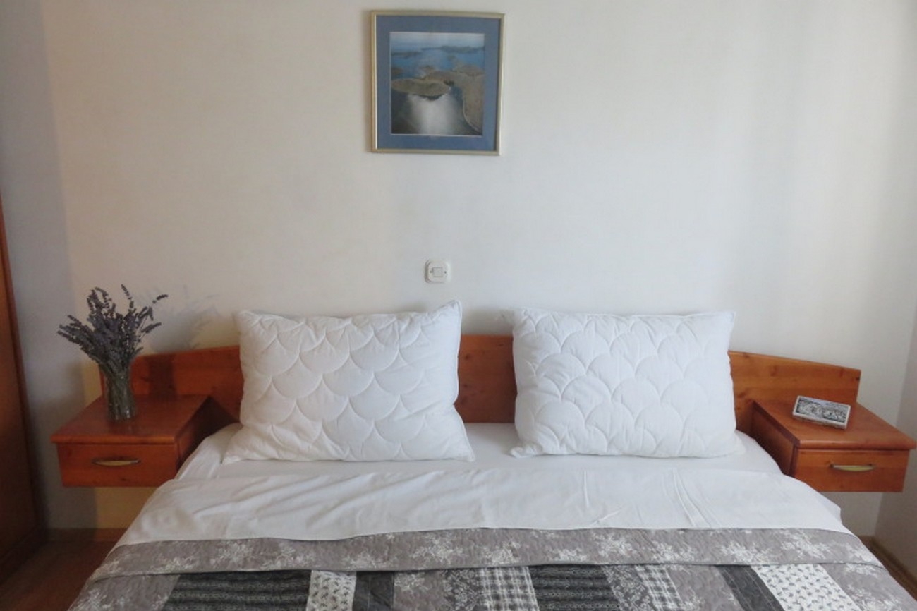 Dom może przyjąć 4 gości. Łóżka znajdują się w sypialniach, których jest 2, na powierzchni 50m2. Goście mają dostęp do tarasu, by korzystać z ciepłych, letnich wieczorów. Z domu wakacyjnego roztacza się widok na morze. Grill jest dostępny tylko do użytku gości z tej kwatery. W kwaterze dozwolony jest pobyt zwierzęcia domowego, za dopłatą. WLICZONE W CENĘ: taksa pobytowa, sprzątanie końcowe, klimatyzacja, parking, internet, miejsce do cumowania łodzi, leżaki. NIEOBOWIĄZKOWE KOSZTY DODATKOWE: zwierzęta domowe (20,00 € za nocleg), dostawka (6,00 € za nocleg). Dostępność dodatkowych usług w rezerwowanym terminie oraz ich cenę (jeśli nie jest podana) należy sprawdzić wcześniej. Za dodatowe usługi, które nie zostały uwzględnione w kalkulacji ceny, płaci się bezpośrednio właścicielowi obiektu, pod warunkiem śe gość korzysta z tych usług.