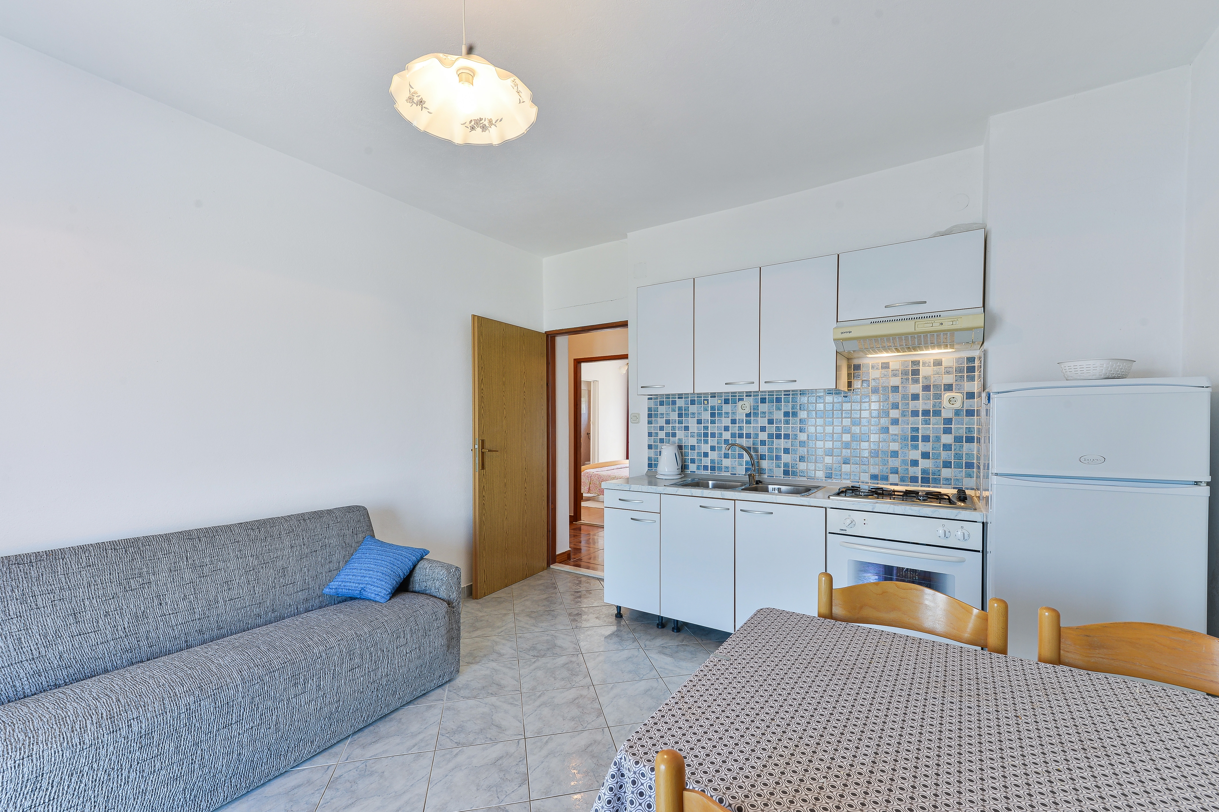 Apartament może przyjąć 4 gości. Łóżka znajdują się w sypialniach, których jest 2, na powierzchni 50m2. Goście mają dostęp do tarasu, by korzystać z ciepłych, letnich wieczorów. Z apartamentu roztacza się widok na morze. Możliwość przygotowywania posiłków poprzez korzystanie ze wspólnego grilla. WLICZONE W CENĘ: taksa pobytowa, sprzątanie końcowe, klimatyzacja, parking, internet, łóżeczko dziecięce, dostawka, żelazko, deska do prasowania, suszarka do włosów. Dostępność dodatkowych usług w rezerwowanym terminie oraz ich cenę (jeśli nie jest podana) należy sprawdzić wcześniej. Za dodatowe usługi, które nie zostały uwzględnione w kalkulacji ceny, płaci się bezpośrednio właścicielowi obiektu, pod warunkiem śe gość korzysta z tych usług.
