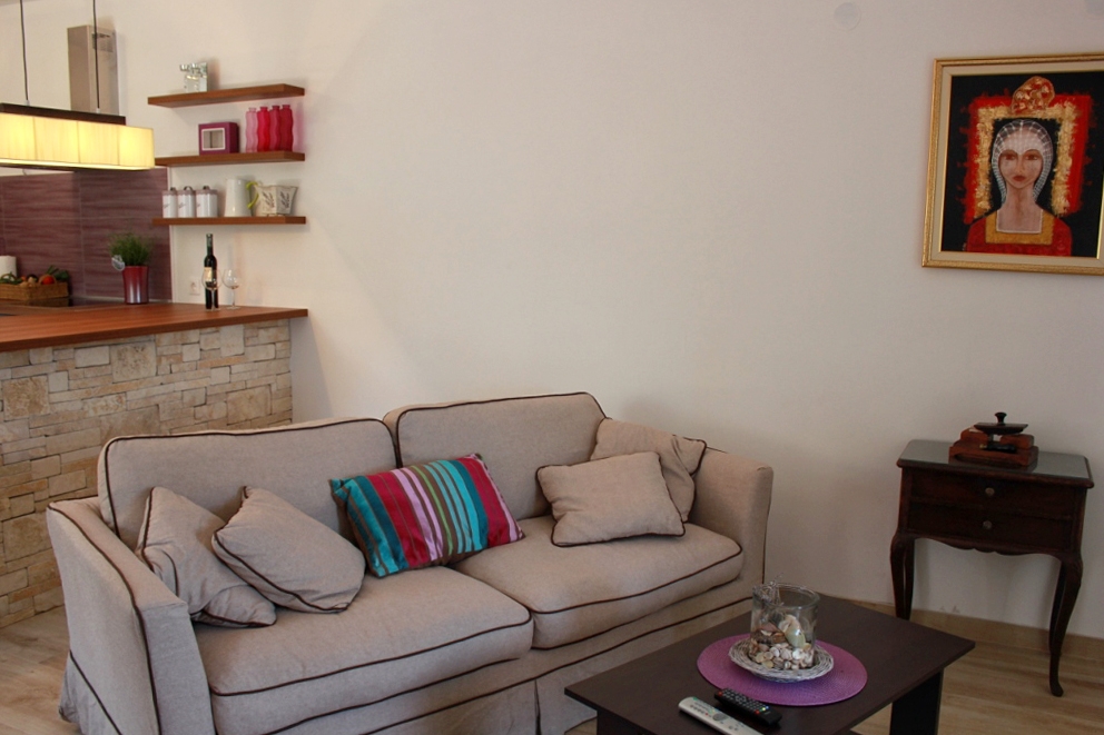 Studio może przyjąć 4 gości. Łóżka znajdują się w sypialniach, których jest 2, na powierzchni 45m2. Goście mają dostęp do tarasu, by korzystać z ciepłych, letnich wieczorów. Z apartamentu typu studio roztacza się widok na morze. Możliwość przygotowywania posiłków poprzez korzystanie ze wspólnego grilla. Przez sypialnię rezerwowanej kwatery przechodzi się do pozostałych pomieszczeń kwatery. WLICZONE W CENĘ: taksa pobytowa, sprzątanie końcowe, klimatyzacja, parking, internet, łóżeczko dziecięce, żelazko, deska do prasowania, suszarka do włosów. OBOWIĄZKOWE KOSZTY DODATKOWE: dopłata za krótki termin (procent dopłaty w zalezności od liczby noclegów: 30% - 1, 20% - 2, 10% - 3). Dostępność dodatkowych usług w rezerwowanym terminie oraz ich cenę (jeśli nie jest podana) należy sprawdzić wcześniej. Za dodatowe usługi, które nie zostały uwzględnione w kalkulacji ceny, płaci się bezpośrednio właścicielowi obiektu, pod warunkiem śe gość korzysta z tych usług. Zniżki od ceny podstawowej: bezpłatny dzień 14=13 (przy pobycie, trwającym co najmniej 14 dni, otrzymujecie jeden bezpłatny dzień na pobyt do 31.12.2026).
