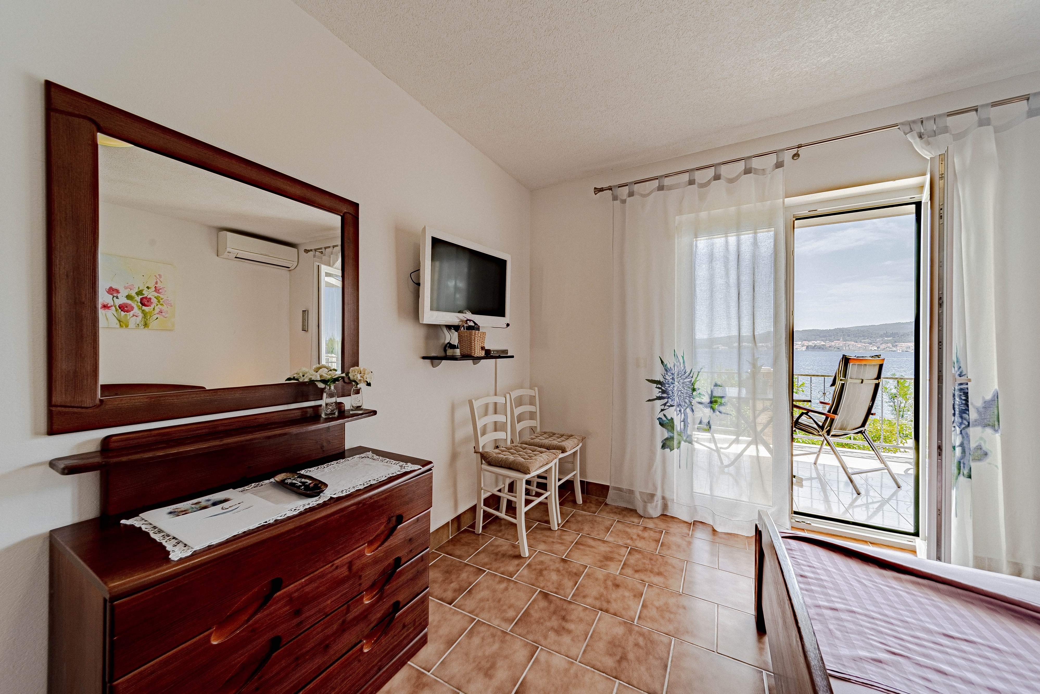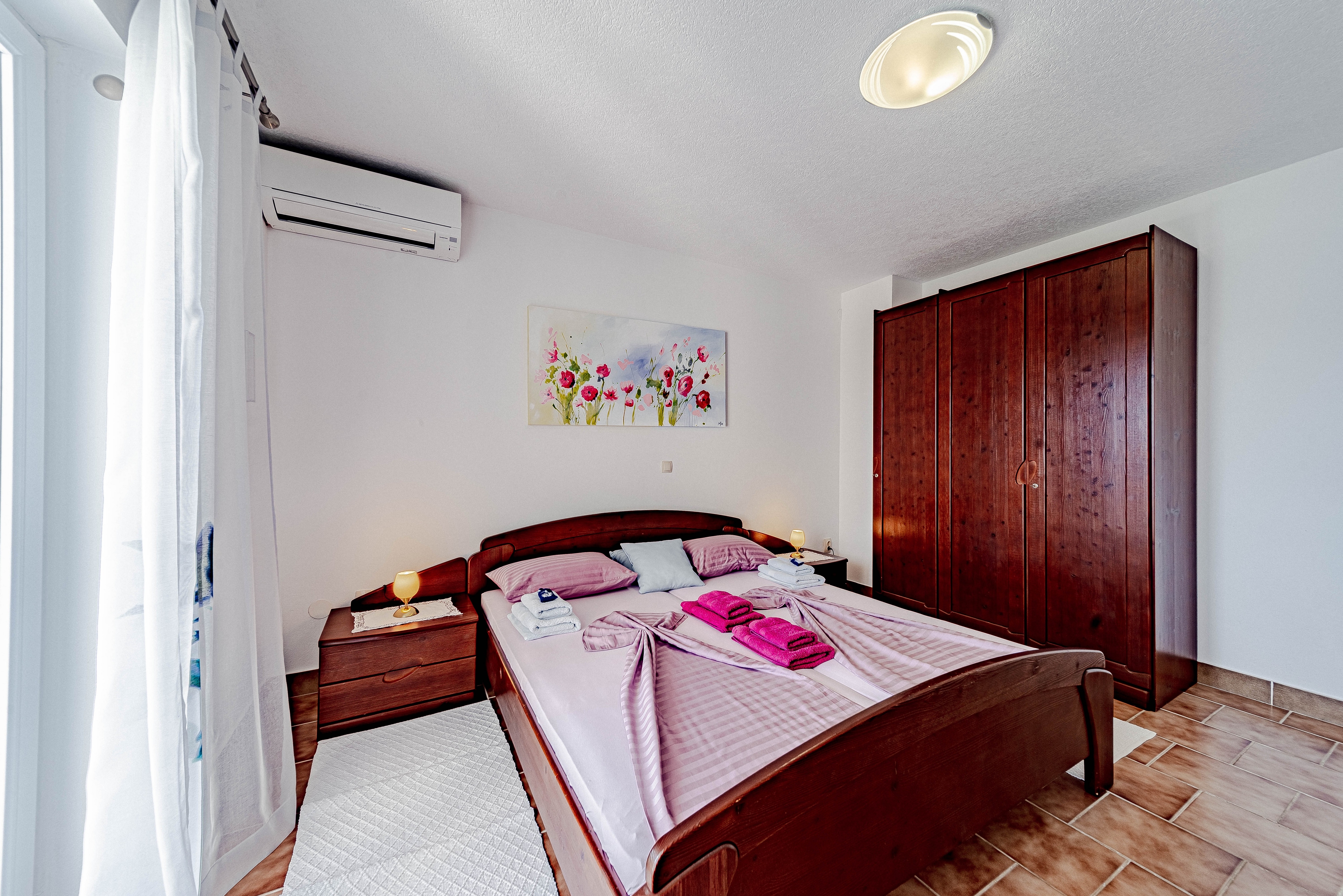 Apartament może przyjąć 2 gości. Łóżka znajdują się w sypialniach, których jest 1, na powierzchni 31m2. Goście mają dostęp do tarasu, by korzystać z ciepłych, letnich wieczorów. Z apartamentu roztacza się widok na morze. Możliwość przygotowywania posiłków poprzez korzystanie ze wspólnego grilla. WLICZONE W CENĘ: taksa pobytowa, sprzątanie końcowe, klimatyzacja, parking, internet, miejsce do cumowania łodzi, łóżeczko dziecięce, żelazko, deska do prasowania, suszarka do włosów, parasol. Dostępność dodatkowych usług w rezerwowanym terminie oraz ich cenę (jeśli nie jest podana) należy sprawdzić wcześniej. Za dodatowe usługi, które nie zostały uwzględnione w kalkulacji ceny, płaci się bezpośrednio właścicielowi obiektu, pod warunkiem śe gość korzysta z tych usług. Zniżki od ceny podstawowej: bezpłatny dzień 14=13 (przy pobycie, trwającym co najmniej 14 dni, otrzymujecie jeden bezpłatny dzień na pobyt do 31.12.2026).