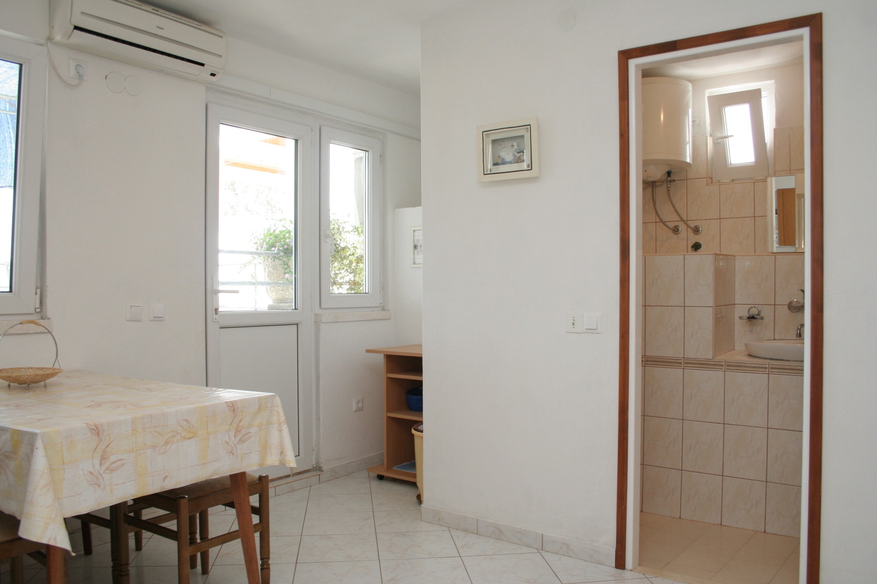 Apartament może przyjąć 4 gości. Łóżka znajdują się w sypialniach, których jest 1, oraz w pokoju dziennym, na powierzchni 27m2. Goście mają dostęp do tarasu, by korzystać z ciepłych, letnich wieczorów. Z apartamentu roztacza się widok na morze. Możliwość przygotowywania posiłków poprzez korzystanie ze wspólnego grilla. WLICZONE W CENĘ: taksa pobytowa, sprzątanie końcowe, klimatyzacja, parking, internet, miejsce do cumowania łodzi, żelazko, deska do prasowania, leżaki. OBOWIĄZKOWE KOSZTY DODATKOWE: dopłata za krótki termin (procent dopłaty w zalezności od liczby noclegów: 30% - 1, 20% - 2, 10% - 3). Dostępność dodatkowych usług w rezerwowanym terminie oraz ich cenę (jeśli nie jest podana) należy sprawdzić wcześniej. Za dodatowe usługi, które nie zostały uwzględnione w kalkulacji ceny, płaci się bezpośrednio właścicielowi obiektu, pod warunkiem śe gość korzysta z tych usług. Zniżki od ceny podstawowej: bezpłatny dzień 14=13 (przy pobycie, trwającym co najmniej 14 dni, otrzymujecie jeden bezpłatny dzień na pobyt do 31.12.2026).