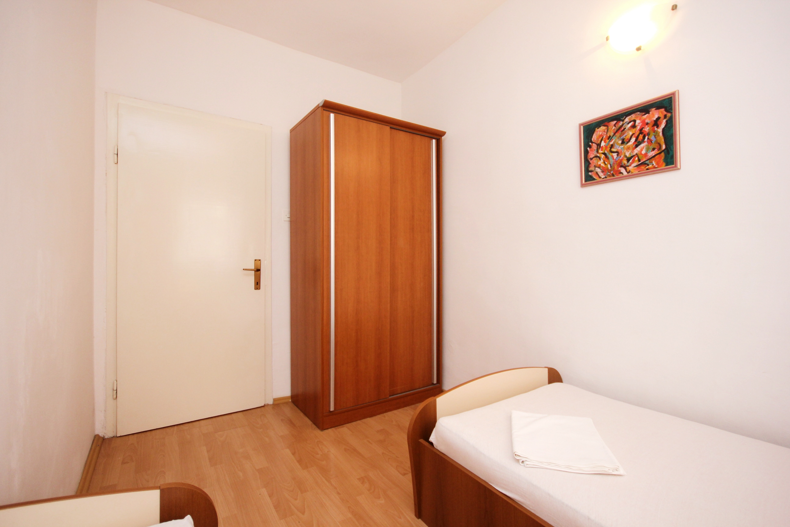 Apartament może przyjąć 5 gości. Łóżka znajdują się w sypialniach, których jest 2, oraz w pokoju dziennym, na powierzchni 40m2. Goście mają dostęp do tarasu, by korzystać z ciepłych, letnich wieczorów. Możliwość przygotowywania posiłków poprzez korzystanie ze wspólnego grilla. W kwaterze dozwolony jest pobyt zwierzęcia domowego, za dopłatą. WLICZONE W CENĘ: taksa pobytowa, sprzątanie końcowe, klimatyzacja, parking, internet, łóżeczko dziecięce, żelazko, deska do prasowania, suszarka do włosów. OBOWIĄZKOWE KOSZTY DODATKOWE: dopłata za krótki termin (procent dopłaty w zalezności od liczby noclegów: 30% - 1, 20% - 2, 10% - 3). NIEOBOWIĄZKOWE KOSZTY DODATKOWE: zwierzęta domowe (5,00 € za nocleg). Dostępność dodatkowych usług w rezerwowanym terminie oraz ich cenę (jeśli nie jest podana) należy sprawdzić wcześniej. Za dodatowe usługi, które nie zostały uwzględnione w kalkulacji ceny, płaci się bezpośrednio właścicielowi obiektu, pod warunkiem śe gość korzysta z tych usług.