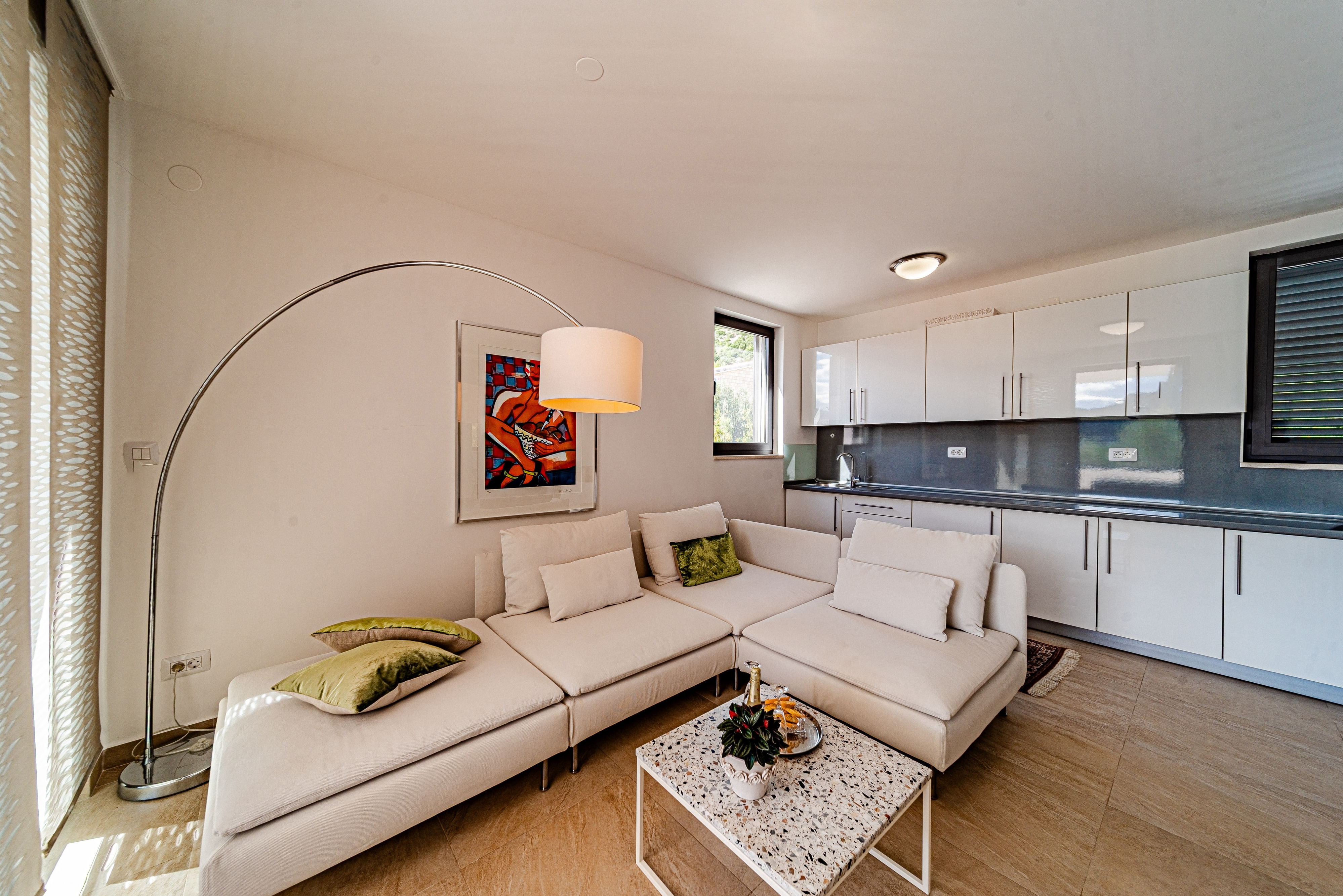 Apartament może przyjąć 2 gości. Łóżka znajdują się w sypialniach, których jest 1, na powierzchni 44m2. Goście mają dostęp do tarasu, by korzystać z ciepłych, letnich wieczorów. Z apartamentu roztacza się widok na morze. Możliwość przygotowywania posiłków poprzez korzystanie ze wspólnego grilla. WLICZONE W CENĘ: taksa pobytowa, sprzątanie końcowe, klimatyzacja, parking, internet, pranie bielizny, rower, żelazko, deska do prasowania, suszarka do włosów, przenośny grill. Dostępność dodatkowych usług w rezerwowanym terminie oraz ich cenę (jeśli nie jest podana) należy sprawdzić wcześniej. Za dodatowe usługi, które nie zostały uwzględnione w kalkulacji ceny, płaci się bezpośrednio właścicielowi obiektu, pod warunkiem śe gość korzysta z tych usług. Zniżki od ceny podstawowej: bezpłatny dzień 14=13 (przy pobycie, trwającym co najmniej 14 dni, otrzymujecie jeden bezpłatny dzień na pobyt do 31.12.2026).