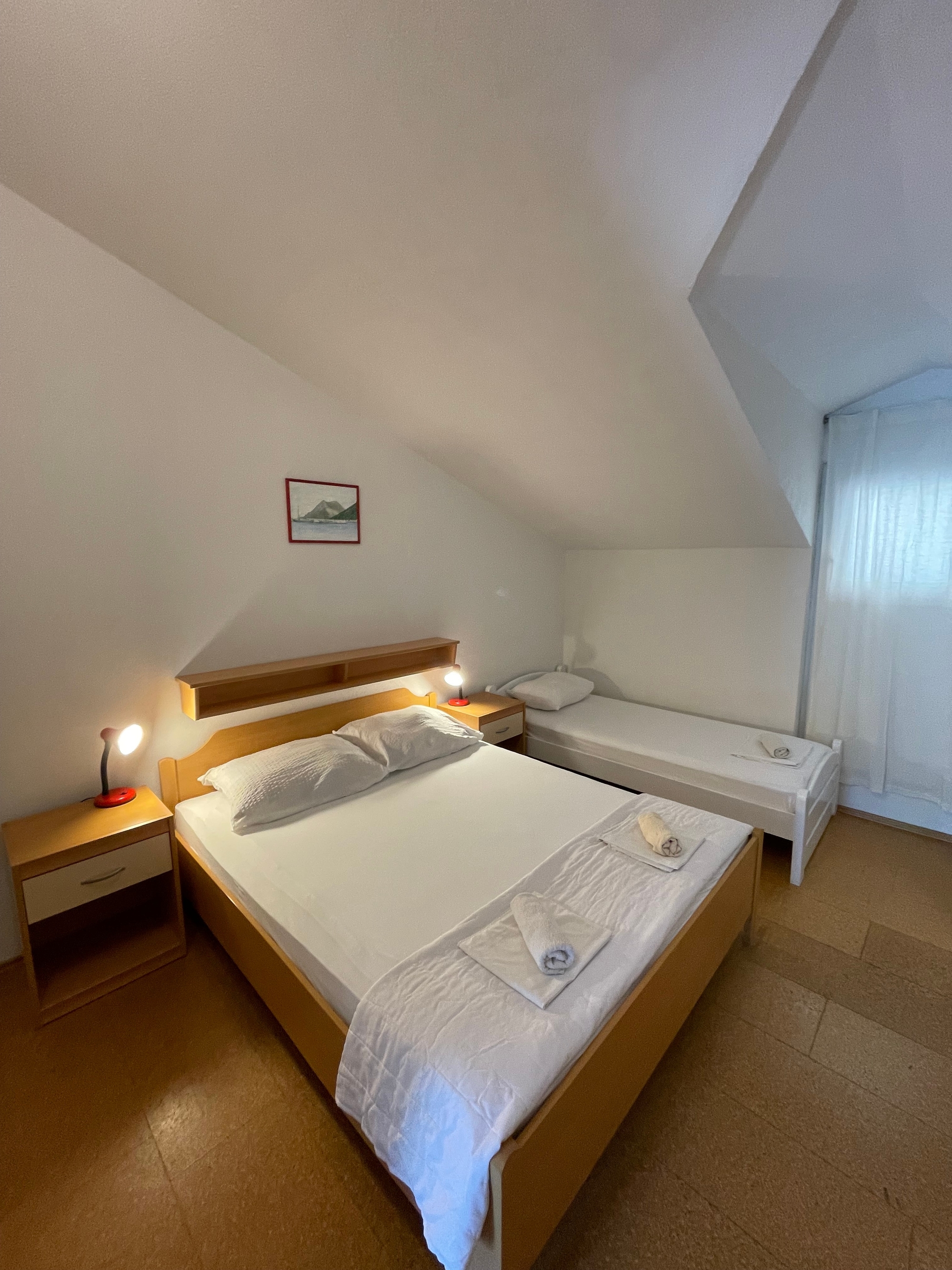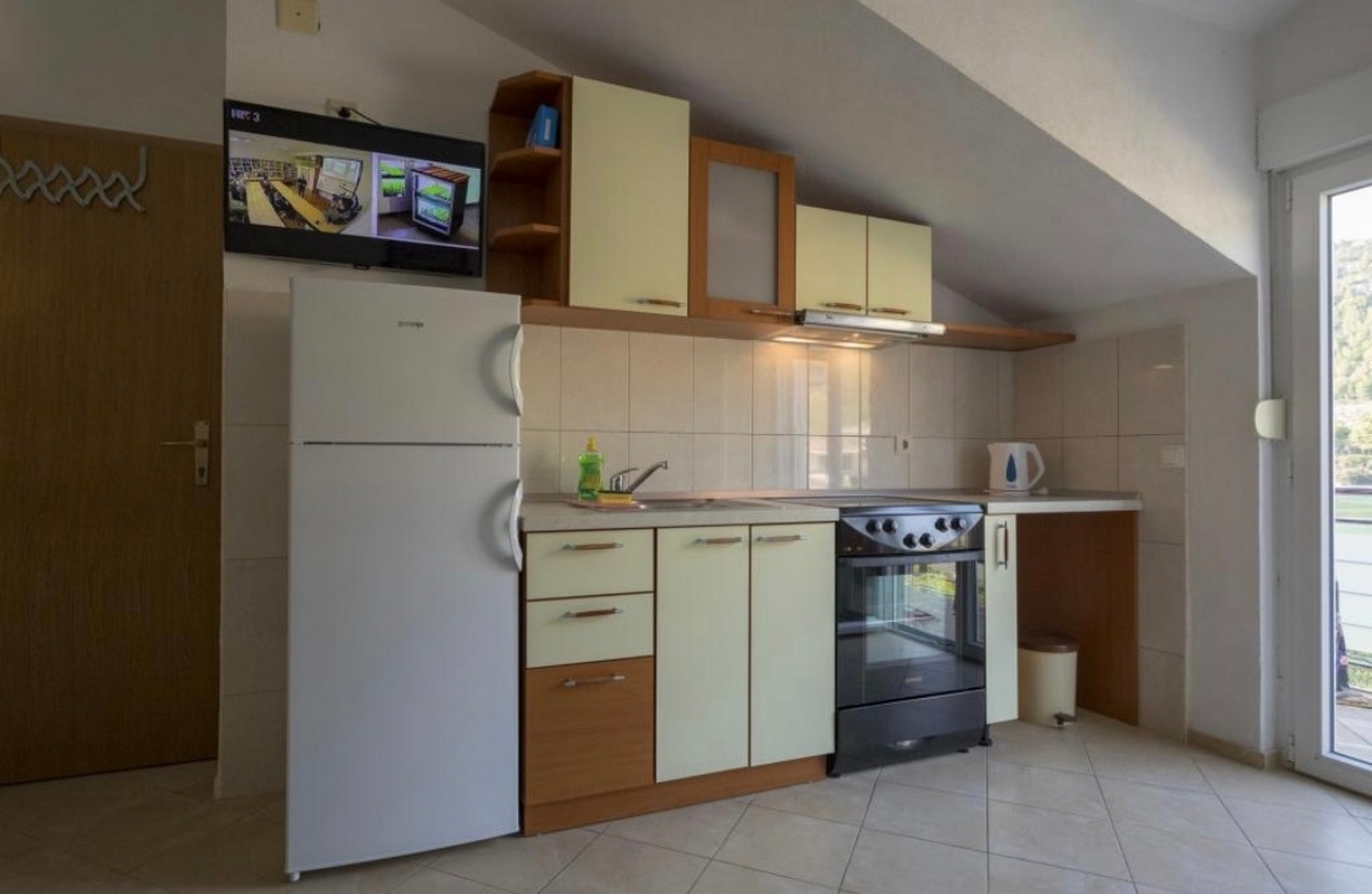 Apartament może przyjąć 4 gości. Łóżka znajdują się w sypialniach, których jest 1, oraz w pokoju dziennym, na powierzchni 32m2. Goście mają dostęp do balkonu, by korzystać z ciepłych, letnich wieczorów. Z apartamentu roztacza się widok na morze. Możliwość przygotowywania posiłków poprzez korzystanie ze wspólnego grilla. WLICZONE W CENĘ: taksa pobytowa, sprzątanie końcowe, klimatyzacja, parking, internet, łóżeczko dziecięce, suszarka do włosów, przenośny grill. OBOWIĄZKOWE KOSZTY DODATKOWE: dopłata za krótki termin (procent dopłaty w zalezności od liczby noclegów: 30% - 1, 20% - 2, 10% - 3). NIEOBOWIĄZKOWE KOSZTY DODATKOWE: pranie bielizny (5,00 € pranie), łódź (50,00 € za nocleg), rower (20,00 € za dzień (za sztukę)). Dostępność dodatkowych usług w rezerwowanym terminie oraz ich cenę (jeśli nie jest podana) należy sprawdzić wcześniej. Za dodatowe usługi, które nie zostały uwzględnione w kalkulacji ceny, płaci się bezpośrednio właścicielowi obiektu, pod warunkiem śe gość korzysta z tych usług.