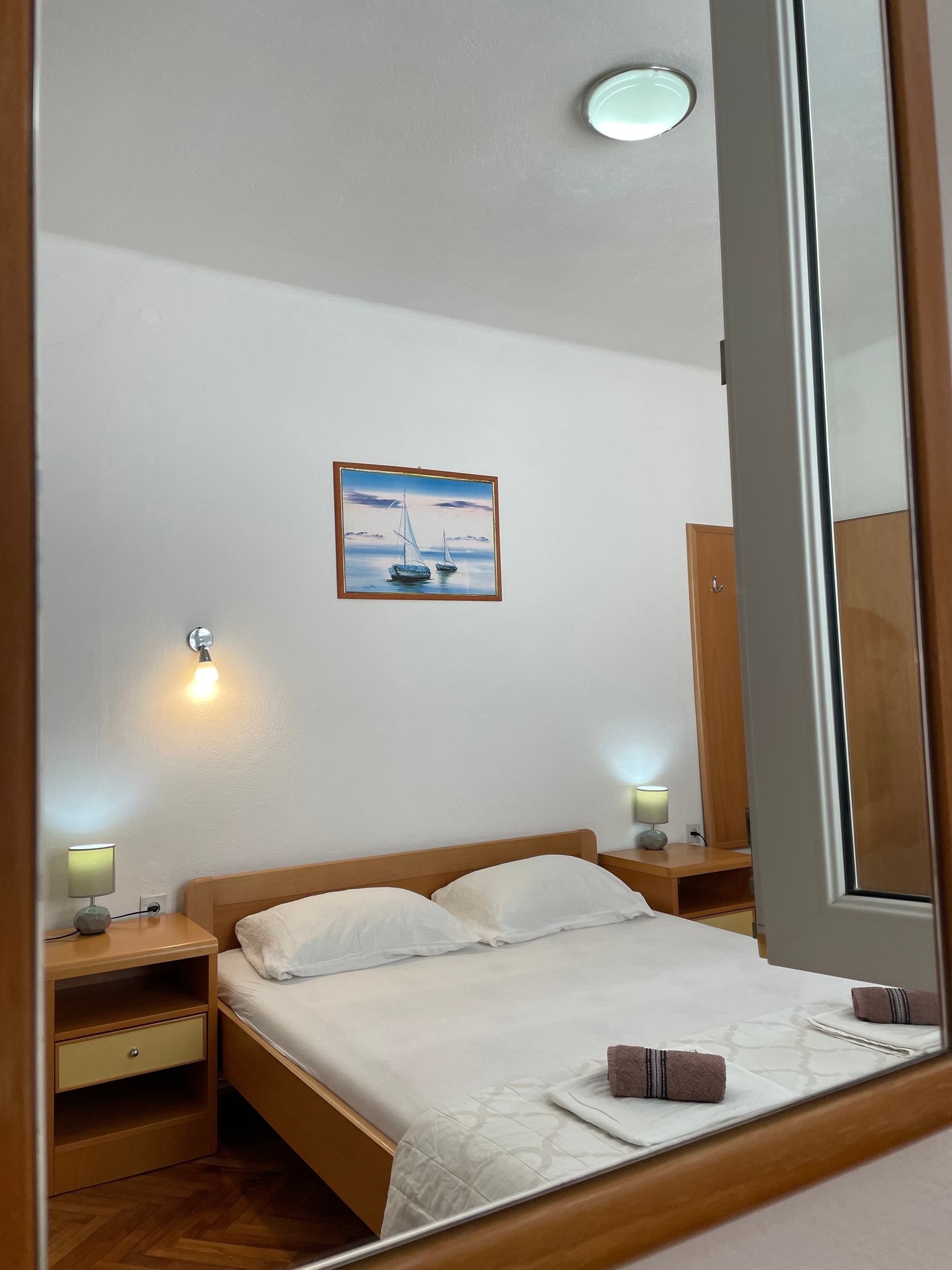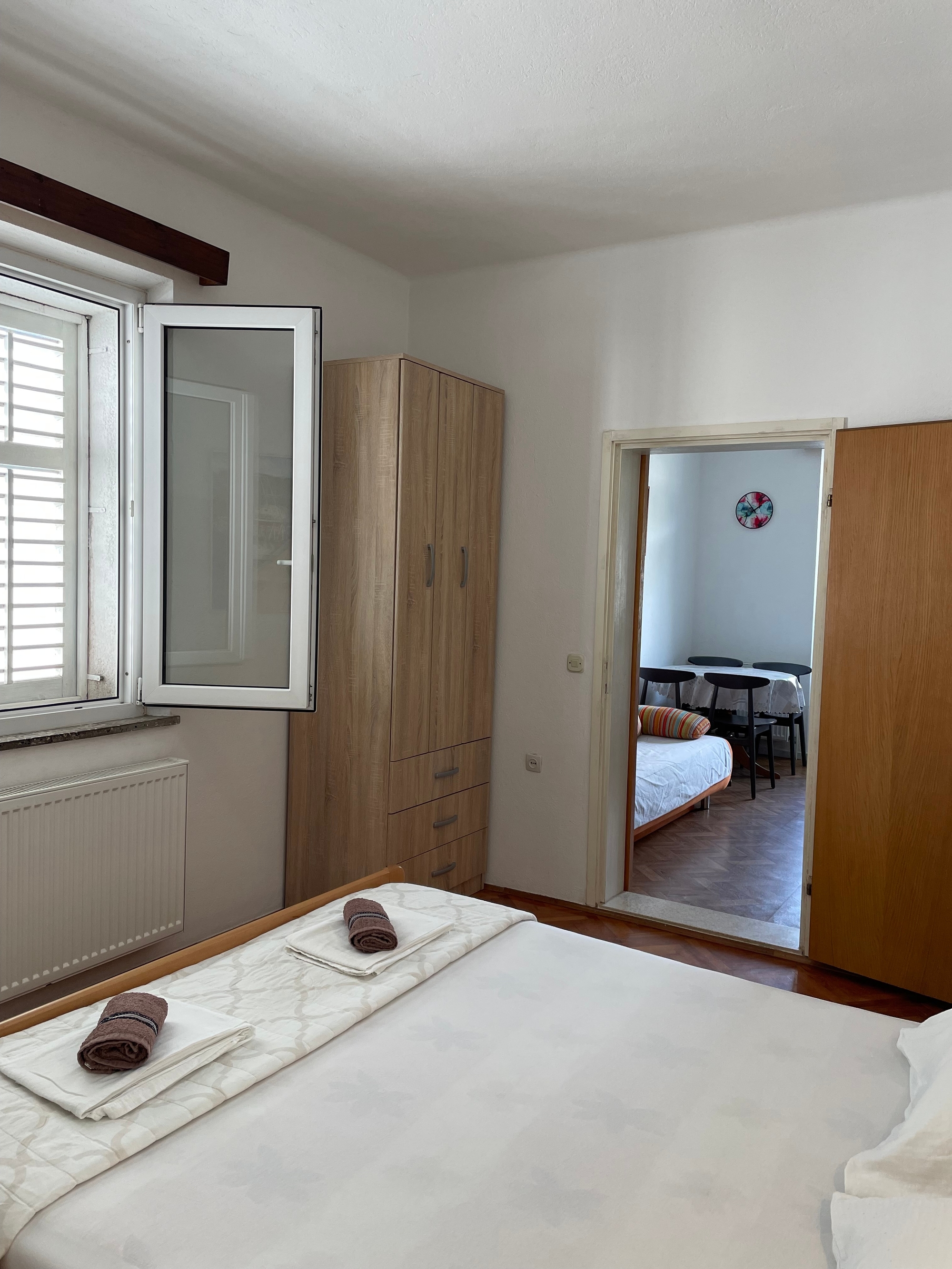 Apartament może przyjąć 4 gości. Łóżka znajdują się w sypialniach, których jest 1, oraz w jadalni, na powierzchni 28m2. Goście mają dostęp do balkonu, by korzystać z ciepłych, letnich wieczorów. Z apartamentu roztacza się widok na morze. Możliwość przygotowywania posiłków poprzez korzystanie ze wspólnego grilla. WLICZONE W CENĘ: taksa pobytowa, sprzątanie końcowe, klimatyzacja, centralne ogrzewanie, parking, internet, łóżeczko dziecięce, suszarka do włosów, przenośny grill. OBOWIĄZKOWE KOSZTY DODATKOWE: dopłata za krótki termin (procent dopłaty w zalezności od liczby noclegów: 30% - 1, 20% - 2, 10% - 3). NIEOBOWIĄZKOWE KOSZTY DODATKOWE: pranie bielizny (5,00 € pranie), łódź (50,00 € za nocleg), rower (20,00 € za dzień (za sztukę)). Dostępność dodatkowych usług w rezerwowanym terminie oraz ich cenę (jeśli nie jest podana) należy sprawdzić wcześniej. Za dodatowe usługi, które nie zostały uwzględnione w kalkulacji ceny, płaci się bezpośrednio właścicielowi obiektu, pod warunkiem śe gość korzysta z tych usług.