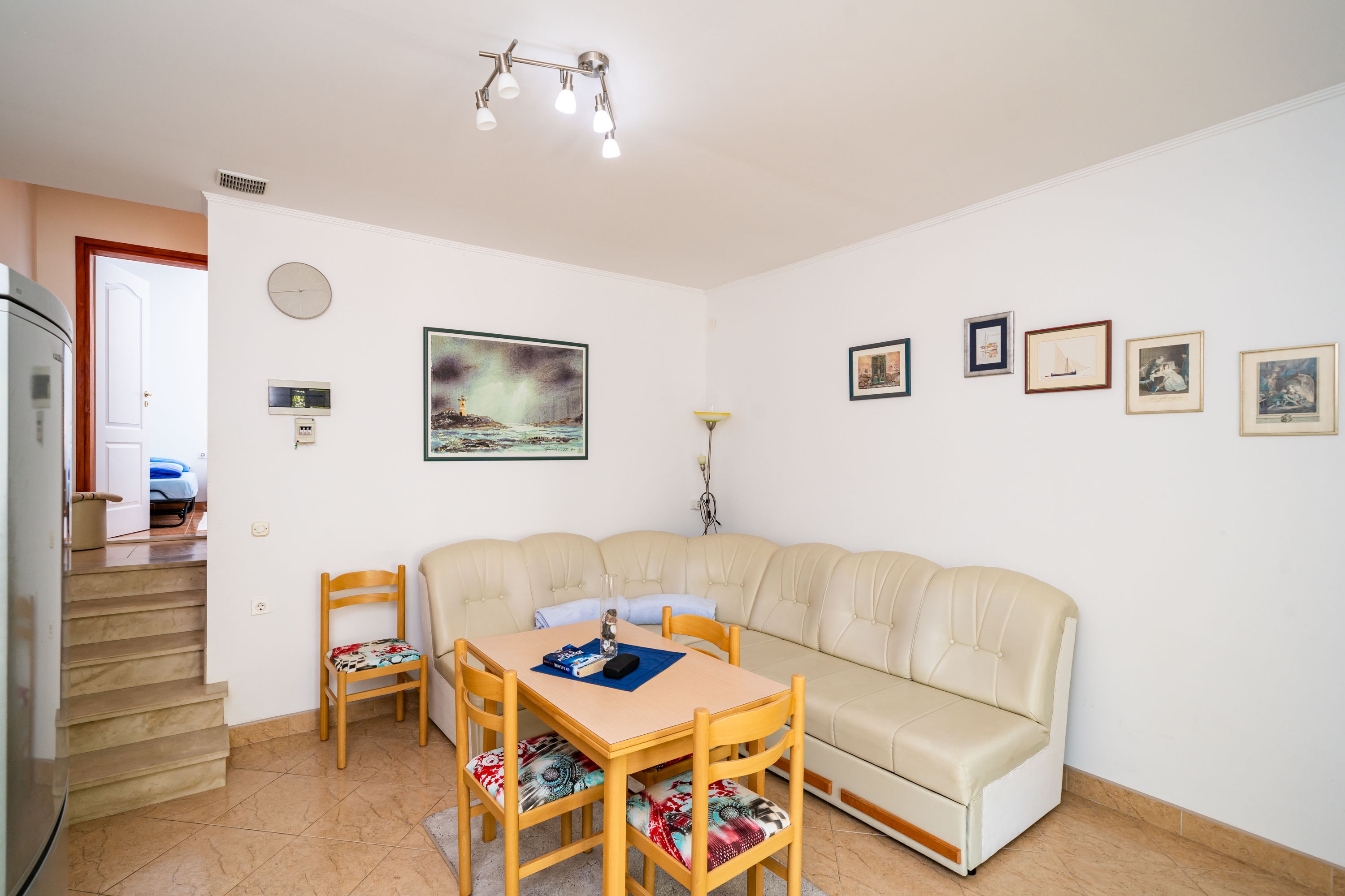 Apartament może przyjąć 4 gości. Łóżka znajdują się w sypialniach, których jest 1, oraz w pokoju dziennym, na powierzchni 35m2. Z apartamentu roztacza się widok na morze. Możliwość przygotowywania posiłków poprzez korzystanie ze wspólnego grilla. Rezerwowana kwatera ma taras wspólny z inną kwaterą. WLICZONE W CENĘ: taksa pobytowa, sprzątanie końcowe, klimatyzacja, parking, internet, miejsce do cumowania łodzi, suszarka do włosów. Dostępność dodatkowych usług w rezerwowanym terminie oraz ich cenę (jeśli nie jest podana) należy sprawdzić wcześniej. Za dodatowe usługi, które nie zostały uwzględnione w kalkulacji ceny, płaci się bezpośrednio właścicielowi obiektu, pod warunkiem śe gość korzysta z tych usług.