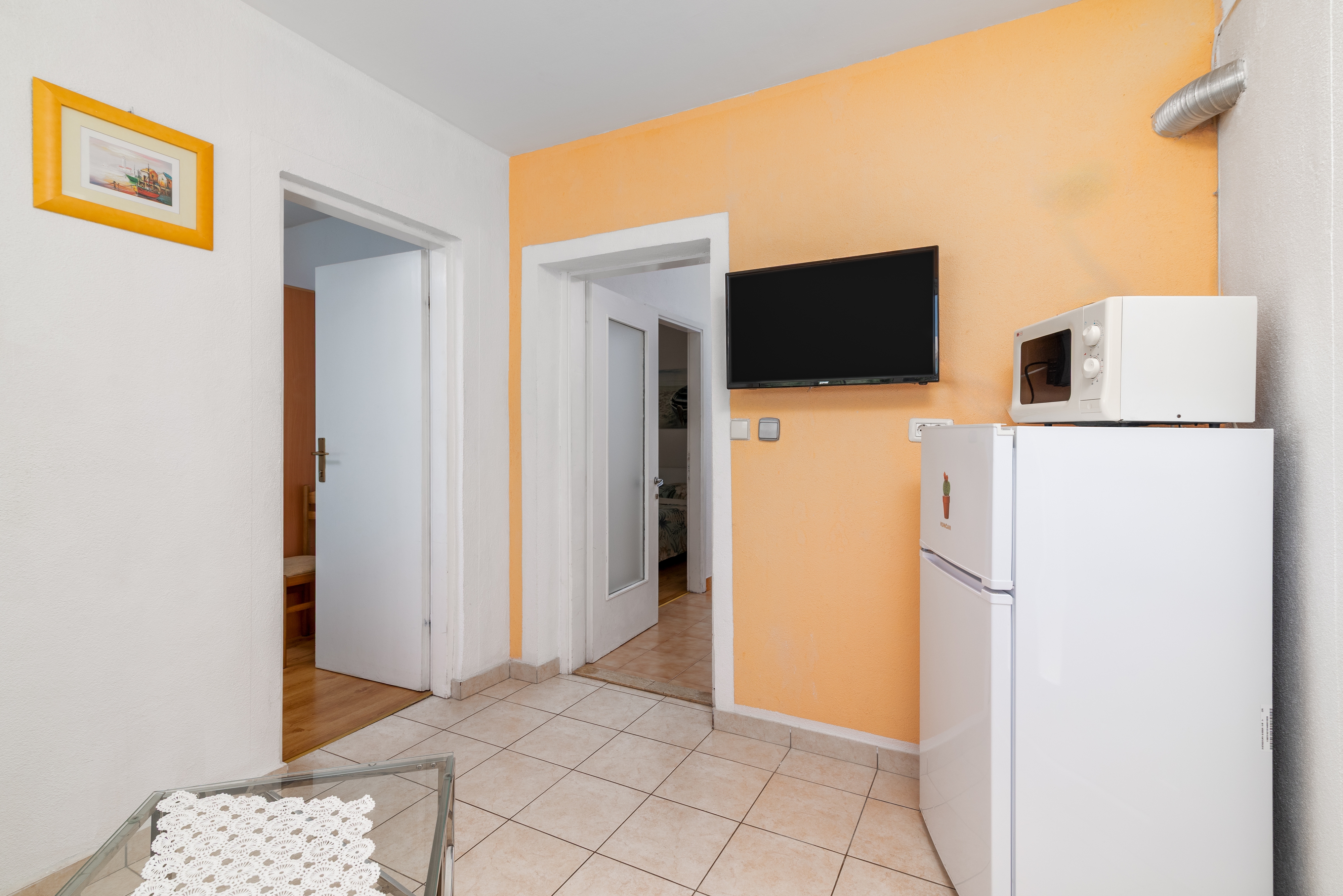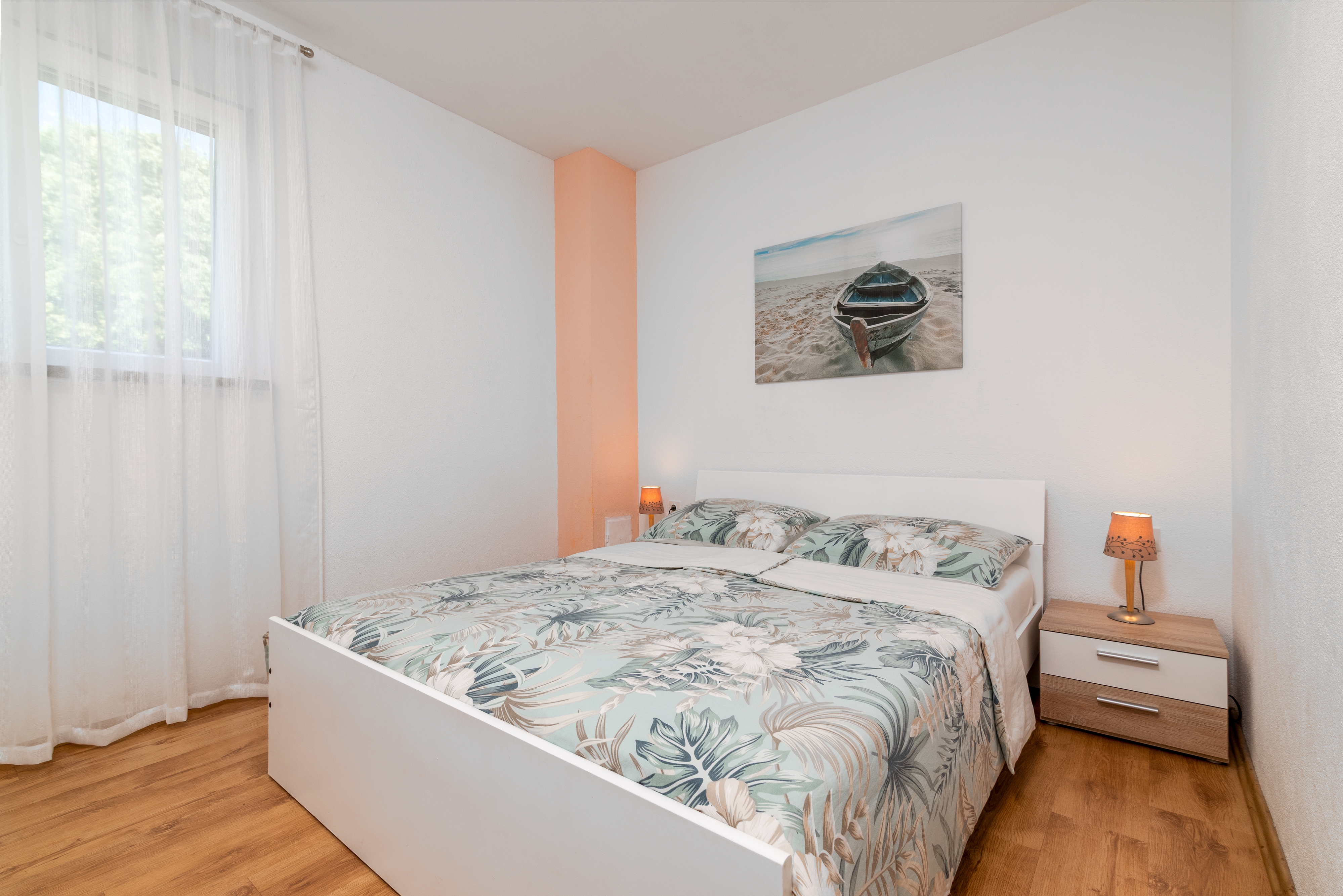 Apartament może przyjąć 5 gości. Łóżka znajdują się w sypialniach, których jest 2, oraz w pokoju dziennym, na powierzchni 46m2. Goście mają dostęp do tarasu, by korzystać z ciepłych, letnich wieczorów. Możliwość przygotowywania posiłków poprzez korzystanie ze wspólnego grilla. W trakcie swojego pobytu goście mogą korzystać ze wspólnego basenu. W kwaterze dozwolony jest pobyt zwierzęcia domowego, za dopłatą. W rezerwowanej kwaterze na miejscu jest pobierana kaucja (jej wysokość jest podana na stronie). WLICZONE W CENĘ: taksa pobytowa, sprzątanie końcowe, klimatyzacja, basen, parking, internet, łóżeczko dziecięce, żelazko, deska do prasowania, suszarka do włosów, przenośny grill, parasol, leżaki. OBOWIĄZKOWE KOSZTY DODATKOWE: depozyt (100,00 € jednorazowo). NIEOBOWIĄZKOWE KOSZTY DODATKOWE: pranie bielizny (5,00 € pranie), zwierzęta domowe (10,00 € za nocleg). Dostępność dodatkowych usług w rezerwowanym terminie oraz ich cenę (jeśli nie jest podana) należy sprawdzić wcześniej. Za dodatowe usługi, które nie zostały uwzględnione w kalkulacji ceny, płaci się bezpośrednio właścicielowi obiektu, pod warunkiem śe gość korzysta z tych usług. Zniżki od ceny podstawowej: bezpłatny dzień 14=13 (przy pobycie, trwającym co najmniej 14 dni, otrzymujecie jeden bezpłatny dzień na pobyt do 31.12.2026).