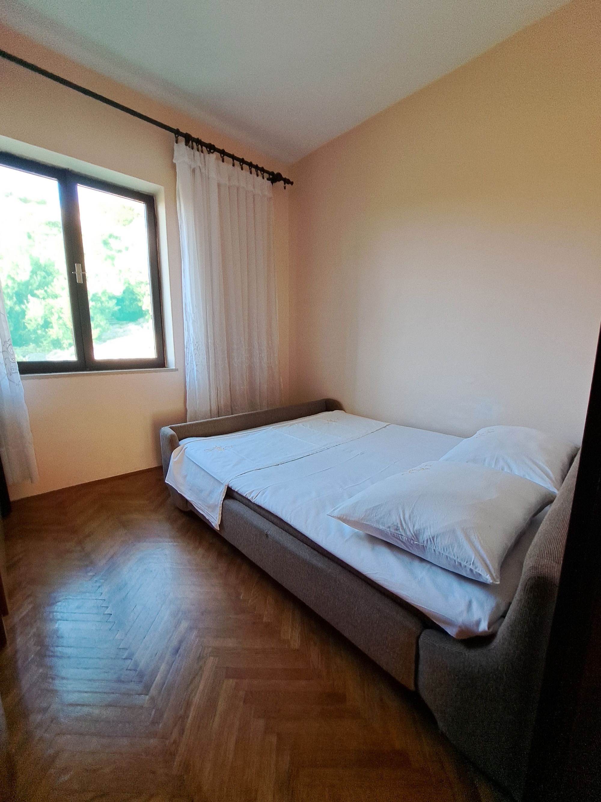 Apartament może przyjąć 5 gości. Łóżka znajdują się w sypialniach, których jest 3, na powierzchni 77m2. Goście mają dostęp do balkonu, by korzystać z ciepłych, letnich wieczorów. Z apartamentu roztacza się widok na morze. Możliwość przygotowywania posiłków poprzez korzystanie ze wspólnego grilla. W kwaterze dozwolony jest pobyt zwierzęcia domowego, za dopłatą. WLICZONE W CENĘ: taksa pobytowa, sprzątanie końcowe, klimatyzacja, parking, internet, miejsce do cumowania łodzi, żelazko, deska do prasowania, suszarka do włosów. OBOWIĄZKOWE KOSZTY DODATKOWE: dopłata za krótki termin (procent dopłaty w zalezności od liczby noclegów: 30% - 1, 20% - 2, 10% - 3). NIEOBOWIĄZKOWE KOSZTY DODATKOWE: zwierzęta domowe (5,00 € za nocleg), dostawka (5,00 € za nocleg). Dostępność dodatkowych usług w rezerwowanym terminie oraz ich cenę (jeśli nie jest podana) należy sprawdzić wcześniej. Za dodatowe usługi, które nie zostały uwzględnione w kalkulacji ceny, płaci się bezpośrednio właścicielowi obiektu, pod warunkiem śe gość korzysta z tych usług.