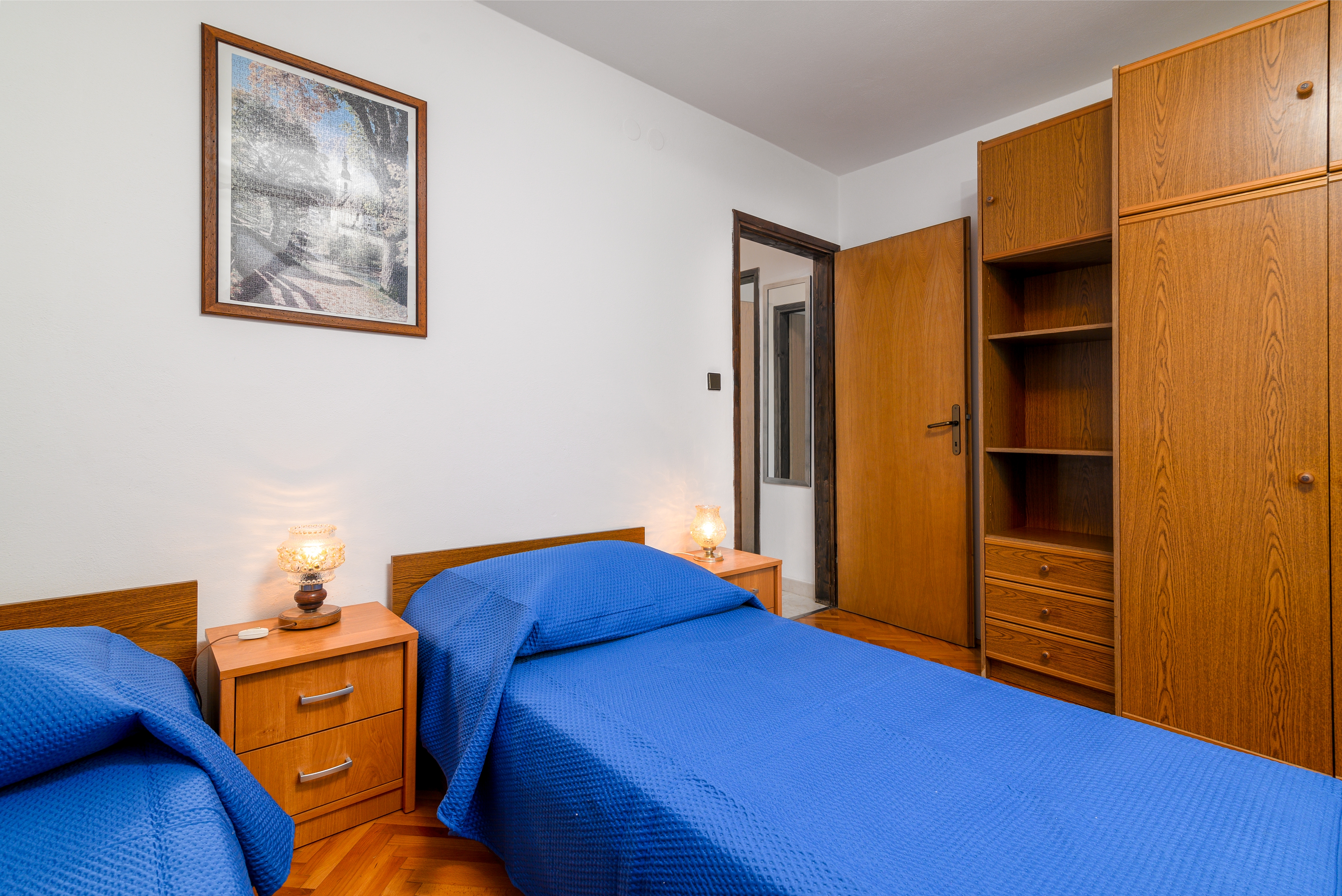 Apartament może przyjąć 4 gości. Łóżka znajdują się w sypialniach, których jest 2, na powierzchni 35m2. Goście mają dostęp do balkonu, by korzystać z ciepłych, letnich wieczorów. Rezerwowana kwatera ma taras wspólny z inną kwaterą. WLICZONE W CENĘ: sprzątanie końcowe, klimatyzacja, parking, internet, suszarka do włosów. OBOWIĄZKOWE KOSZTY DODATKOWE: taksa pobytowa (dorośli 0,93 € - 1,60 € noclegosoba, zniżka dla dzieci w wieku 12 - 17 lat), dopłata za krótki termin (procent dopłaty w zalezności od liczby noclegów: 30% - 1, 20% - 2, 10% - 3). Dostępność dodatkowych usług w rezerwowanym terminie oraz ich cenę (jeśli nie jest podana) należy sprawdzić wcześniej. Za dodatowe usługi, które nie zostały uwzględnione w kalkulacji ceny, płaci się bezpośrednio właścicielowi obiektu, pod warunkiem śe gość korzysta z tych usług. Zniżki od ceny podstawowej: promocyjna (przy rezerwacji zrealizujcie dodatkową zniżkę 10%).
