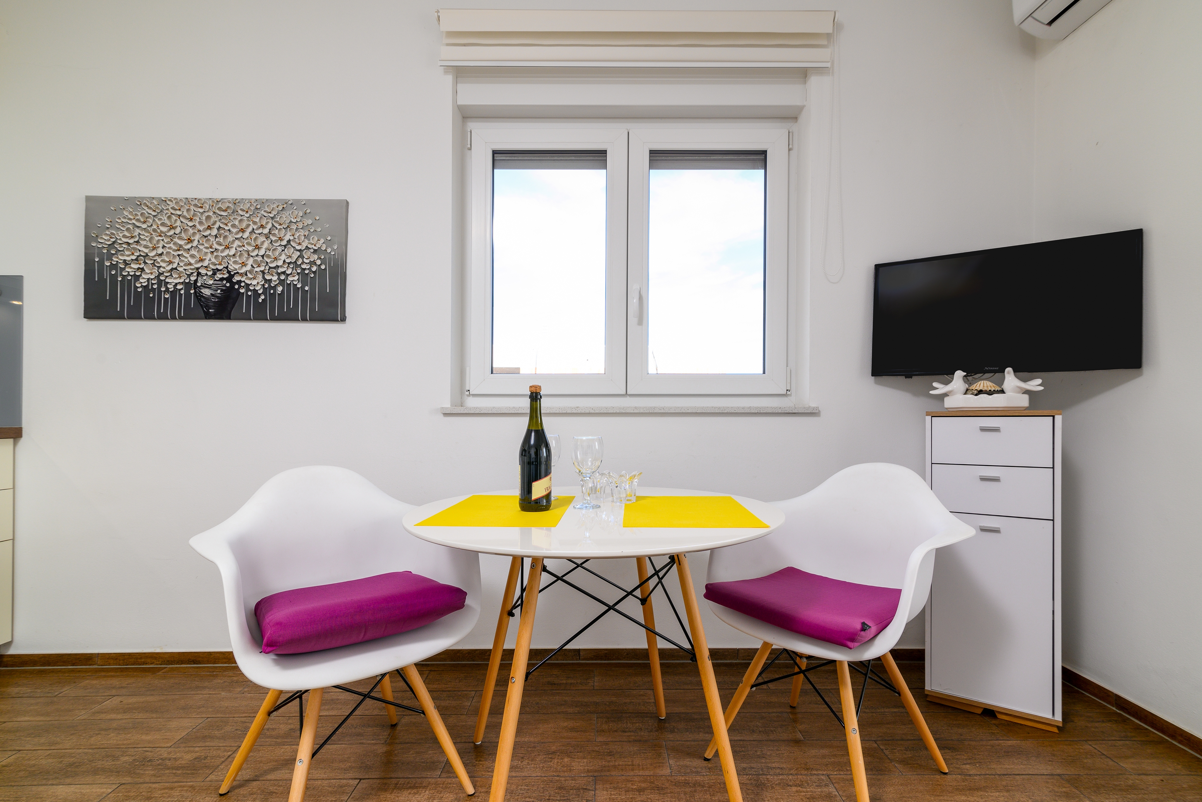 Apartament może przyjąć 2 gości. Łóżka znajdują się w sypialniach, których jest 1, na powierzchni 37m2. Goście mają dostęp do tarasu, by korzystać z ciepłych, letnich wieczorów. Możliwość przygotowywania posiłków poprzez korzystanie ze wspólnego grilla. W trakcie swojego pobytu goście mogą korzystać ze wspólnego basenu. WLICZONE W CENĘ: taksa pobytowa, sprzątanie końcowe, klimatyzacja, basen, parking, internet, żelazko, suszarka do włosów. OBOWIĄZKOWE KOSZTY DODATKOWE: dopłata za krótki termin (procent dopłaty w zalezności od liczby noclegów: 30% - 1, 20% - 2, 10% - 3). Dostępność dodatkowych usług w rezerwowanym terminie oraz ich cenę (jeśli nie jest podana) należy sprawdzić wcześniej. Za dodatowe usługi, które nie zostały uwzględnione w kalkulacji ceny, płaci się bezpośrednio właścicielowi obiektu, pod warunkiem śe gość korzysta z tych usług.