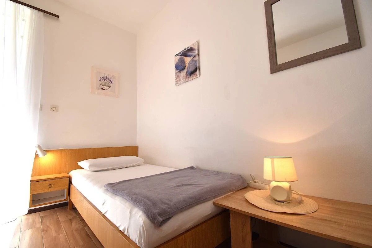 Dom 24672 w miejscowości Banjol, Rab - Kwarner. Najbliższa plaża od tego obiektu jest żwirowa. Możliwe jest, że także inni goście będą przebywać w tym obiekcie w czasie Państwa urlopu, ponieważ w obiekcie znajduje się więcej apartamentów. Gospodarze w czasie Państwa wakacji będą przebywać w obiekcie. Właściciel nie ma obowiązku przyjąć dodatkowych niezgłoszonych osób ani zwierząt domowych, dlatego też trzeba je wcześniej zgłosić.ZAWARTOŚĆ Podwórko (500m2, Miejsce do siedzenia), Parking (Liczba miejsc parkingowych: 3, Odległość od obiektu: Na podwórku), Grill: wspólny, WiFi Internet, Suszarka do włosów, Przenośny grill, Łóżeczko dziecięce LOKALIZACJA I DOSTĘP Obiekt znajduje się przy lokalnej drodze Pomiędzy obiektem i plażą nie ma drogi Możliwość dojazdu samochodem: Tak Obiekt znajduje się w relatywnie cichej okolicy ODLEGŁOŚCI Plaża: 400 m Centrum: 3 km Sklep: 650 m Pierwsza pomoc: 3 km Apteka: 2,2 km Kantor: 2,5 km Bankomat: 1,3 km Informacje turystyczne: 1,7 km Port: 8,5 km Dworzec autobusowy: 2,5 km Stacja benzynowa: 500 m Targ: 2,5 km